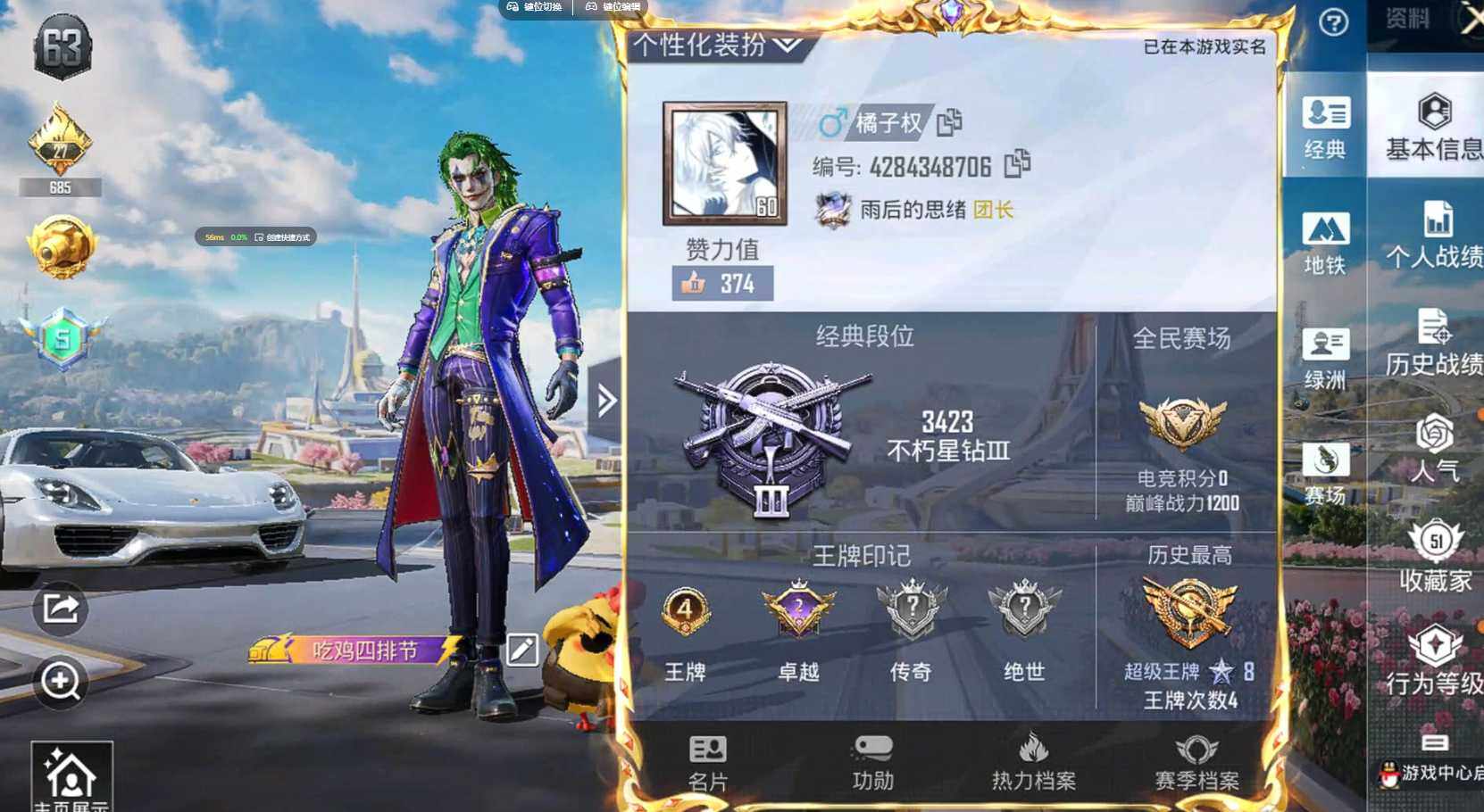 苹果 手q【新小丑寒蝎 保时捷】-3粉装-2特效呛-2载具-2粉色飞行器-42489热力值-4王牌印记-109套装-144呛皮 【热门品类】:套装-寒蝎幽灵,套装-奇异狩猎者,套装-粉红小猪,小恶魔头饰 【粉色载具】:宝马x6 m(曼岛绿),保时捷918 sper(液态银) 【粉色套装】:角色-樱桃泡泡,粉装-幻彩电音,角色-狂魇小丑 【粉色呛皮等级】:aks-74u-星穹咏叹调七级,