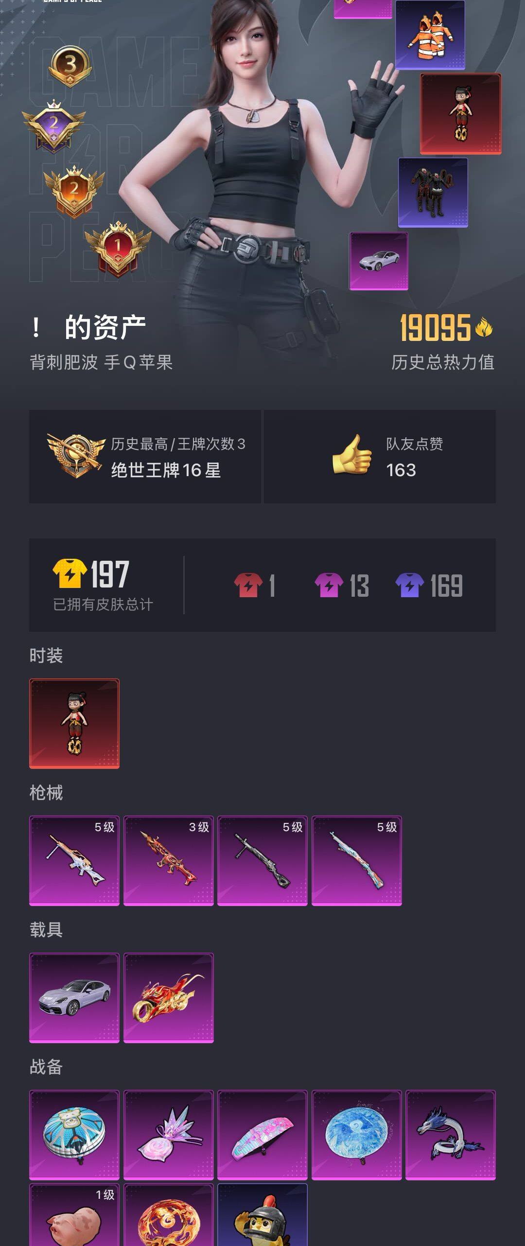 苹果 手q-1神装-0粉装-4特效呛-2载具-3粉色飞行器-19095热力值-3王牌印记-32套装-52呛皮 【红色神装等级】:魔童闹海-哪吒一级 【红色角色神装】:魔童闹海-哪吒 【热门品类】:套装-浪漫天命,套装-小丑鱼,套装-暗影哥特 【粉色载具】:保时捷panamera(星辰紫),踏焰逐风摩托车 【粉色呛皮等级】:scar-l-魔童闹海 哪吒三级,kar98k-巳巳如意五级