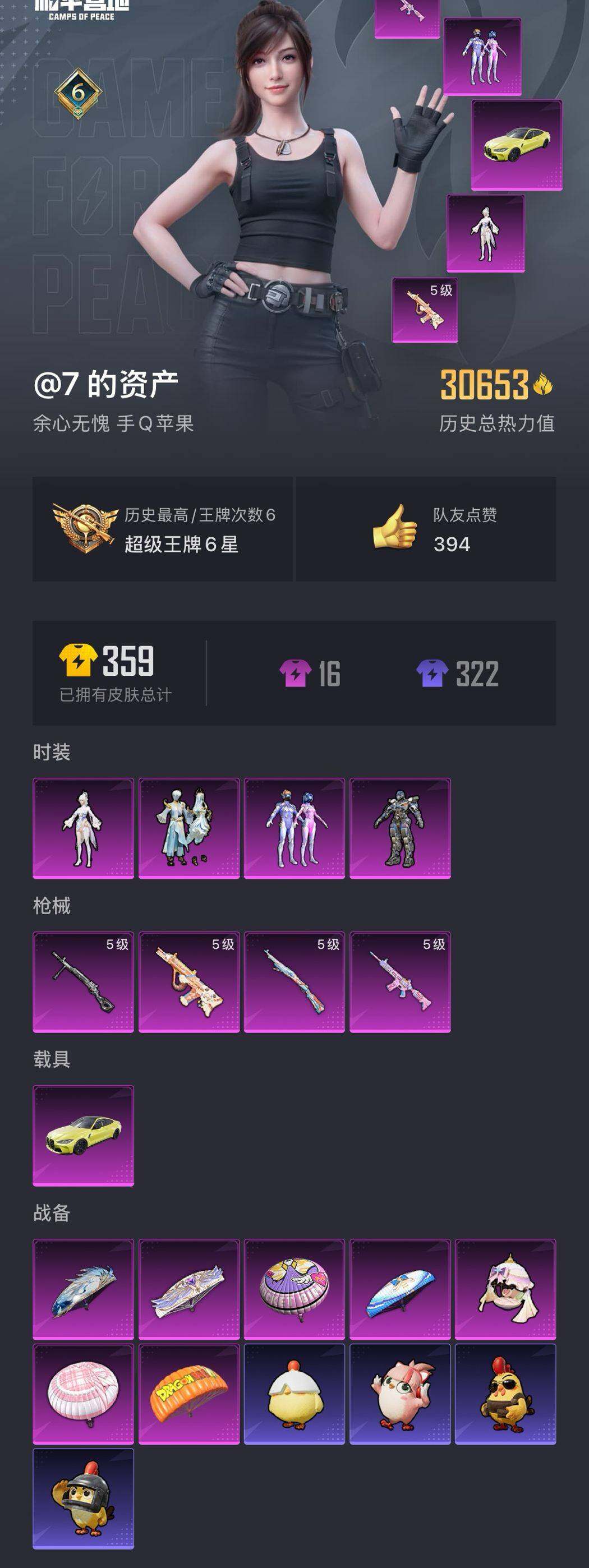 苹果 手q-4粉装-4特效呛-1载具-1粉色飞行器-30653热力值-6王牌印记-69套装-102呛皮 【热门品类】:粉装-梦幻火箭,套装-奇异狩猎者,角色-2p战斗服款,套装-龟仙人 【粉色载具】:宝马m4(圣保罗黄) 【粉色套装】:粉装-梦幻火箭,角色-幻影,粉装-金丰海韵,角色-女娲灵识 【粉色呛皮等级】:m416-电玩时刻五级,aug-暖羊咩咩五级,kar98k-巳巳如意五级