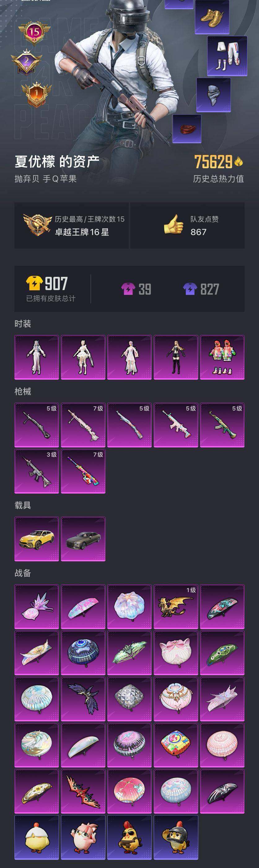 苹果 手q【都市金靴小丑鱼浪漫天命 5粉装7升级呛2车 全套粉熊背包】-5粉装-7特效呛-2载具-4粉色飞行器-75629热力值-15王牌印记-170套装-230呛皮 【热门品类】:套装-浪漫天命,套装-都市猎人,套装-派对舞王,套装-小丑鱼,套装-龟仙人,套装-暗影哥特 【粉色载具】:兰博基尼urus(明艳黄),宾利飞驰(布罗德盖棕双色) 【粉色套装】:粉装-炫光之旅,角色-蔷薇星,角色-烟