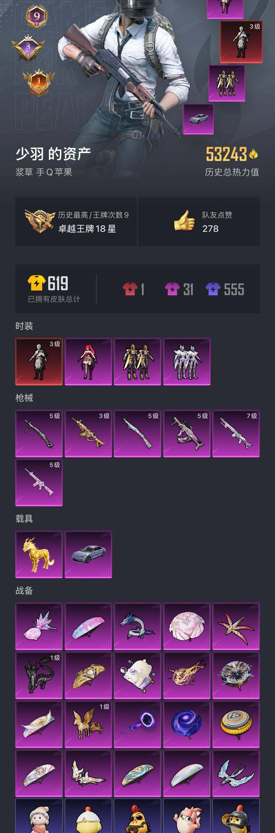 苹果 手q【3级敖渊都市猎人红眼罩 2车6呛3粉】-1神装-3粉装-6特效呛-2载具-10粉色飞行器-53243热力值-9王牌印记-118套装-159呛皮 【红色神装等级】:墨龙九天-敖渊三级 【红色角色神装】:墨龙九天-敖渊 【热门品类】:套装-浪漫天命,套装-都市猎人,套装-金羽特工,角色-2p战斗服款,套装-龟仙人,套装-暗影哥特,角色-8号机,角色-mark.06,大砍刀-青龙偃月