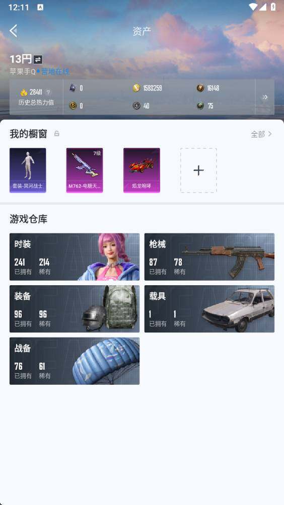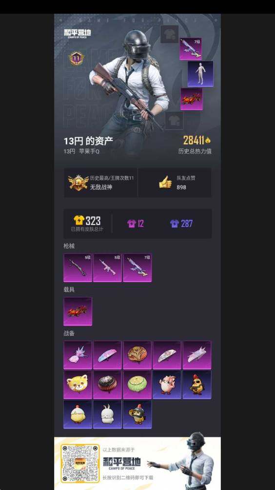 苹果 手q-无敌战神框-0粉装-3特效呛-1载具-1粉色飞行器-28411热力值-11王牌印记-63套装-87呛皮 【热门品类】:套装-冥河战士 【粉色载具】:焰龙咆哮 【粉色呛皮等级】:m416-电玩时刻五级,m762-电糖天使七级,dp-28-豹影疾电五级 【粉色呛皮】:m416-电玩时刻,m762-电糖天使,dp-28-豹影疾电 【粉色降落伞】:齐天大圣降落伞,绿意幻情降落伞
