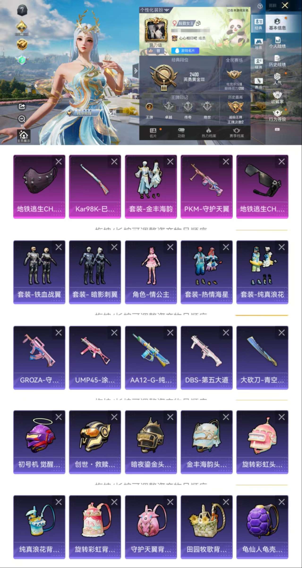 hm6189安卓q区-1太阳-0违规-1粉2特效【地铁已开 1粉装 金丰海韵 情公主 2特效呛】-14421热力值-2王牌印记-46套装-53呛皮-黄金iii-游戏43级 无二次 【优质套装】: 金丰海韵 【特效呛等级】:kar98k-巳巳如意一级kar98k-巳巳如意pkm-守护天翼五级pkm-守护天翼 【优质武器皮肤】: kar98k-巳巳如意 pkm-守护天翼 【稀有武器皮肤