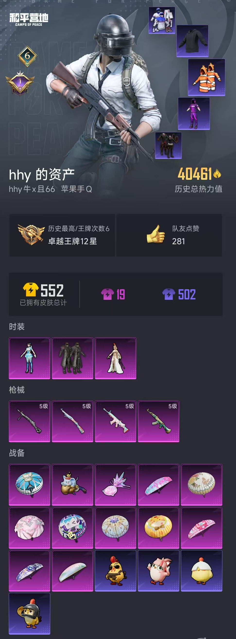 【和平精英】【lyhp17098】4w热力值3粉装4特效呛 未来战士 小丑鱼 暗影哥特 nv战队服 浪漫天命 满级绿萝ak 3粉装,4特效呛,0载具,历史最高段位:卓越王牌12星 王牌印记6次 热力值:40461,127套装,155呛械,166装备,94战备;套装:套装-未来战士,角色-异瞳寒姬,角色-萨利娅,套装-特训学院,套装-猎鹰,套装-青年教官,套装-橘黑制服,套装-红色运动,套装-黄色运动,套装-蓝色运动,套装-黄色伏地魔,套装-白色伏地魔,套装-黑色伏地魔,套装-竞技名士,套装-深蓝色名流,套装-酒红色名流,套装-湖蓝色名流,套装-黄色名流,套装-猛禽,套装-长空猛禽,套装-漫步者,套装-海岛探路者,套装-雨林探路者,套装-旭日情侣,套装-冷焰舞者,套装-浪漫天命,套装-特战装甲,套装-浪漫假日,套装-活力之心,套装-春日漫步,套装-燃烧卡路里,套装-完美偶像,套装-幻影武者,套装-摇滚舞王,套装-暗金炫舞,套装-魅力单车,套装-竞技达人朋克,套装-破晓战魂,套装-森林游猎者,套装-烈火街头,套装-暗影哥特,套装-呆萌铁蟹,套装-缤纷果语,套装-滨海厨神,套装-alan walker,套装-龙魂突击队,套装-元素星魂,套装-极速红龙,套装-小丑鱼,套装-万圣娃娃,套装-粉红小猪,套装-破蛋小黄鸡,套装-霓虹街区,套装-智慧之神,套装-nv战队服,套装-白糯汤圆,套装-机械兔法师,套装-战术大师,套装-热情海星,套装-纯真浪花,套装-吉莉礼服,套装-绯格组合,套装-香榭午后,套装-柠萌假日,套装-恋恋初桃,套装-龟仙人,套装-ss25特训,套装-惊鸿侠骨,套装-锦衣飞扬,套装-云霞荷露,套装-香桃花海,套装-果汁能量,套装-龙的传人,套装-ss26特训,套装-快闪甜心,套装-春光漫游,套装-漫游都市,套装-空岛之星,套装-云魄琉璃,套装-贝斯之夜,套装-ss27特训,套装-恋语绒绒,套装-老实芭蕉,套装-ss28特训,套装-铁血战翼,套装-海盐绵绵冰,套装-创世·幻影,套装-湖畔霞光,套装-ss29特训,套装-雏菊兔兔,套装-萝兰蝴蝶,角色-绯色魅影,套装-异域银装,套装-星途旅人,套装-ss30特训,套装-小鸟芋圆,套装-ss31特训,套装-鱼渊荷华,套装-燕燕于飞,套装-智谋强哥,套装-紫幽梦,套装-粉恋花,套装-ss33特训,角色-猎影月神,套装-云朵鹅,套装-巳巳如意,套装-ss32特训,套装-彩虹兔,套装-蓝冰羽,套装-顶瓜瓜,套装-雪绒豹,套装-大橘大利,套装-极速光影,套装-炫彩糖果,套装-元气之梦,套装-ss34特训,套装-擎苍青焰,套装-朱霞炽焰,角色-申公豹,套装-凌霄紫焰,套装-薄荷星砂,套装-ss35特训,套装-午间小调,套装-风迹短诗,套装-琴音绮想,套装-ss36特训,套装-萌鸡速递;呛皮:蜜獾-天降萌叽,蜜獾-风迹短诗,蜜獾-绿洲时空,蜜獾-乌木金纹,5级akm-绿萝繁花,akm-春暖花开,akm-霓虹街区,akm-涂鸦街区,akm-彩虹符号,akm-龙的传人,akm-玄冥寒域,akm-霓彩脉冲,akm-绿洲时空,m762-天降萌叽,m762-雏菊兔兔,m762-云朵鹅,aug-耀粉歌者,aug-2p战斗服款,aug-异域银装,aug-紫晶流影,5级scar-l-锦绣绵绵,scar-l-夜灯,scar-l-彩虹符号,scar-l-星途旅人,scar-l-海盐豹豹,groza-海盐豹豹,q-彩虹符号,q-纯真浪花,m416-蓝色火焰,m416-糯团青竹,m16a4-幻世战舞者,m16a4-冰河战士,mk47-风迹短诗,ace32-画境星梦,arx-凌霄紫焰,famas-霓彩脉冲,famas-乌木金纹,ac-val-天降萌叽,ac-val-快闪甜心,win94-乌木金纹,m200-惊鸿侠骨,m200-乌木金纹,5级kar98k-巳巳如意,kar98k-顶峰精英,kar98k-星穹咏叹调,amr-鸡智如我,amr-喜羊羊与灰太狼,amr-乌木金纹,svd-云朵鹅,awm-纯真浪花,m24-幻彩电音,莫辛纳甘-风迹短诗,mk14-冰河战士,mk14-紫幽梦,mk14-薄荷星砂,slr-霓彩脉冲,m417-惊鸿侠骨,m417-玩趣呆呆,mk20-h-快闪甜心,mk20-h-星途旅人,mk20-h-狂鲨锋刃,mk20-h-乌木金纹,vss-未来战士,vss-星之彼岸,vss-香桃花海,sks-迅猛狂鲨,sks-心之恋语,mini14-穿刺龙虾,mini14-耀粉歌者,mini14-香桃花海,mini14-雏菊兔兔,mini14-鸡智如我,mk12-风迹短诗,mk12-乌木金纹,m1加兰德-画境星梦,p90-快闪甜心,p90-玩趣呆呆,p90-巳巳如意,p90-乌木金纹,野牛-雏菊兔兔,野牛-燕燕于飞,ump45-夜灯,ump45-海盐豹豹,ump45-绒宝小鹅,vect-创世·救赎,vect-燕燕于飞,mp5k-画境星梦,mp5k-乌木金纹,uzi-红色方程式,uzi-天降萌叽,uzi-啾咪啾咪,uzi-炫彩糖果,汤姆逊-耀粉歌者,汤姆逊-天降萌叽,汤姆逊-纯真浪花,汤姆逊-樱桃泡泡,aks-74u-乌木金纹,js9-凌霄紫焰,s12k-破晓战魂,s12k-夜灯,s12k-玩趣呆呆,s12k-霓彩脉冲,aa12-g-纯真浪花,s686-奇异狩猎者,s686-巳巳如意,s1897-紫幽梦,s1897-糯团青竹,dbs-圣堂之誓,dbs-风迹短诗,dbs-乌木金纹,spas-12-燕燕于飞,spas-12-狂鲨锋刃,spas-12-云朵鹅,spas-12-乌木金纹,pkm-啾咪啾咪,pkm-紫幽梦,5级dp-28-豹影疾电,m249-彩虹符号,mg3-幻世战舞者,mg3-惊鸿侠骨,mg3-霓彩脉冲,mg-36-凌霄紫焰,p92-紫幽梦,p92-凌霄紫焰,信号呛-异瞳寒姬,r1895-雏菊兔兔,tmp-9-江南烟雨,沙墨之鹦-快闪甜心,沙墨之鹦-云朵鹅,蝎式手呛-闲梦青缨,蝎式手呛-燕燕于飞,短管霰弹-星穹咏叹调,p18c-镜光幻境,r45-幻彩电音,平底锅-惊鸿侠骨,平底锅-快闪甜心,平底锅-空岛之星,平底锅-纯真浪花,平底锅-涂鸦旋风,平底锅-雏菊兔兔,平底锅-紫幽梦,平底锅-属我最6,平底锅-凌霄紫焰,大砍刀-云朵鹅,铝热弹-炫彩糖果,破片手留单-呆爆全场,破片手留单-海盐豹豹,破片手留单-拽到爆炸,破片手留单-巳巳如意,十子怒-异瞳寒姬,十子怒-燕燕于飞,十子怒-异域银装,爆炸猎弓-惊鸿侠骨,爆炸猎弓-雪月幻音,盐雾蛋-冰氧夏日;降落伞:炫彩糖果飞行器,极意拳锋飞行器,空岛之星尾迹,异域银装飞行器,顶峰精英尾迹,狂鲨锋刃飞行器,破刃行动尾迹,鸡智