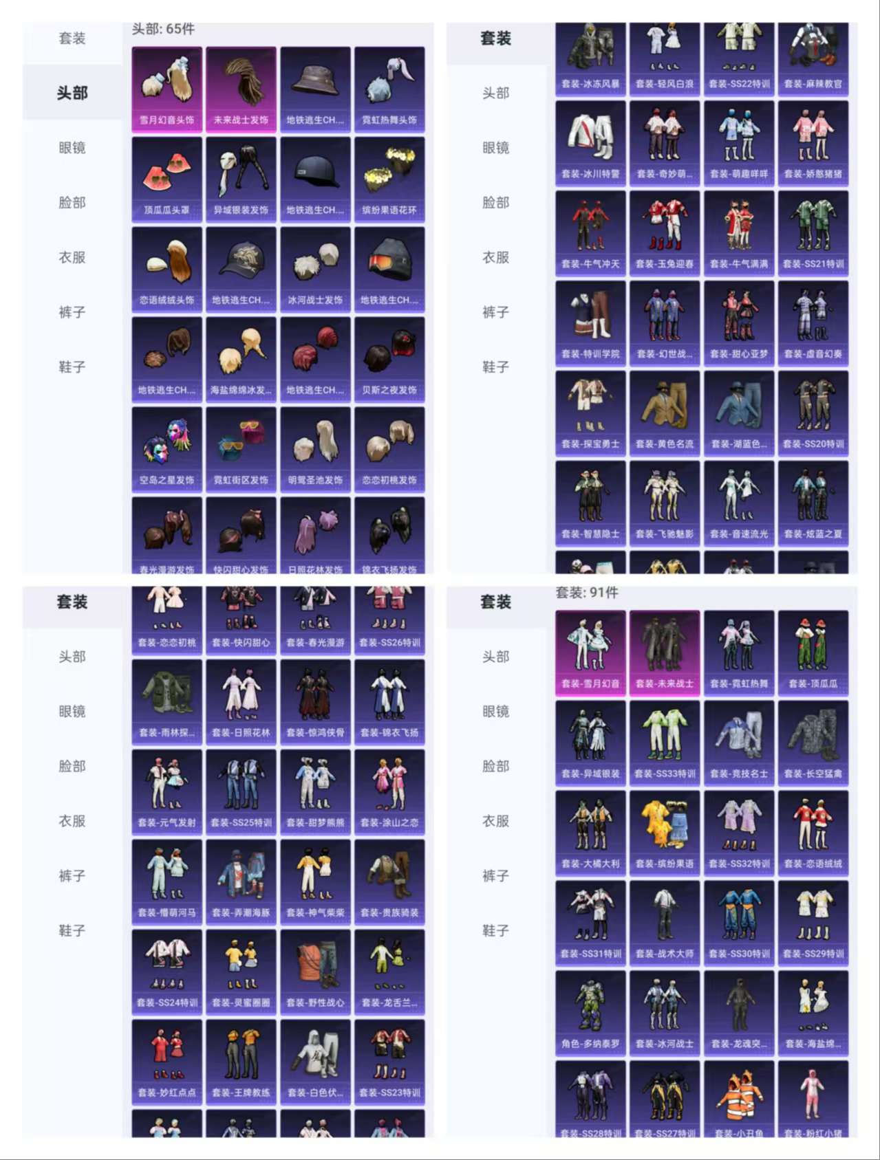 dj395⭐地铁素材号⭐2粉状5升级呛/未来战士/雪月幻音/小丑鱼/多纳泰罗/甜梦熊熊/恋恋出桃/鹰眼刺客⭐五爪金龙7级/绿萝繁华5级/锦绣绵绵5级/量子极限5级/巳巳如意5级⭐精灵梦叶罗丽头盔/幻彩电音的头盔/深海小丑鱼头盔/创世救赎的背包/守护天翼的背包/暗夜鎏金的背/包前面幻境的背包⭐7粉色降落伞/3飞行器/热力值42572/王牌次数10