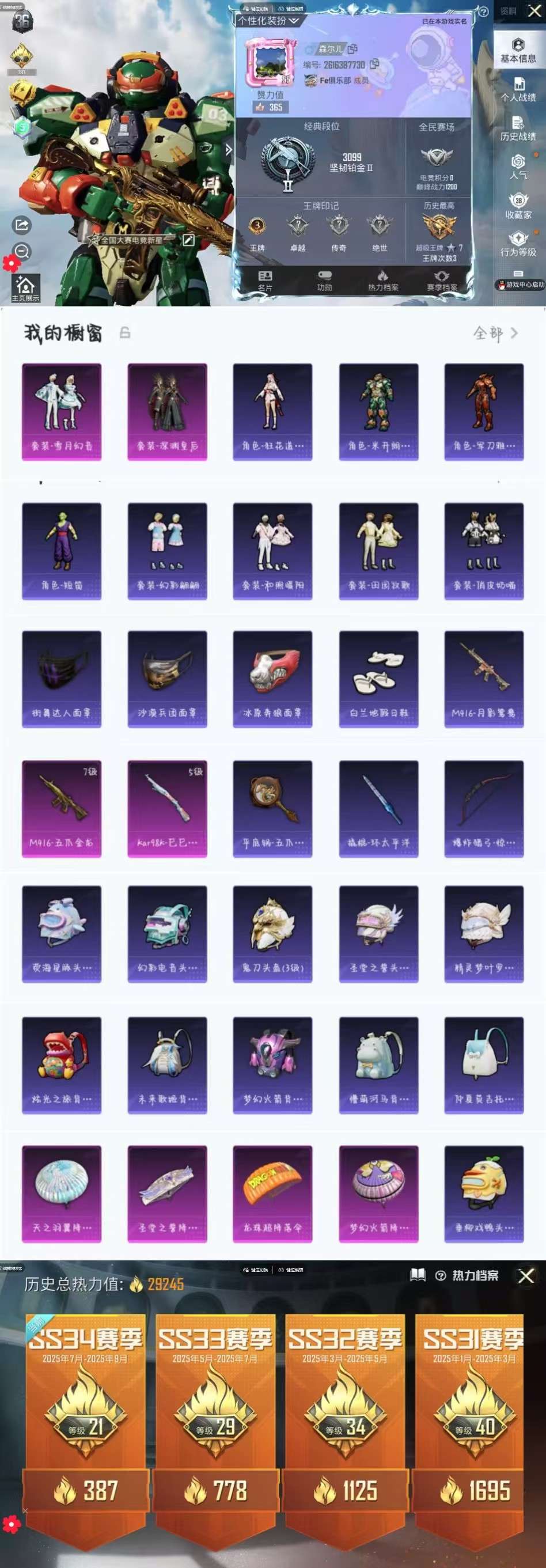 dj432⭐五爪金龙7级素材号⭐2粉/深渊皇后/雪月幻音/紫装/狂花道娜可露露/ 短笛/军刀雅典娜/米开朗基罗/冰原奔狼面罩⭐2升级强/五爪金龙7级/巳巳如意5级/圣堂之誓的头盔/鬼刀头盔/垂柳戏鸭头盔/梦幻火箭背包/炫光之旅的背包/4粉色降落伞/热力值29245