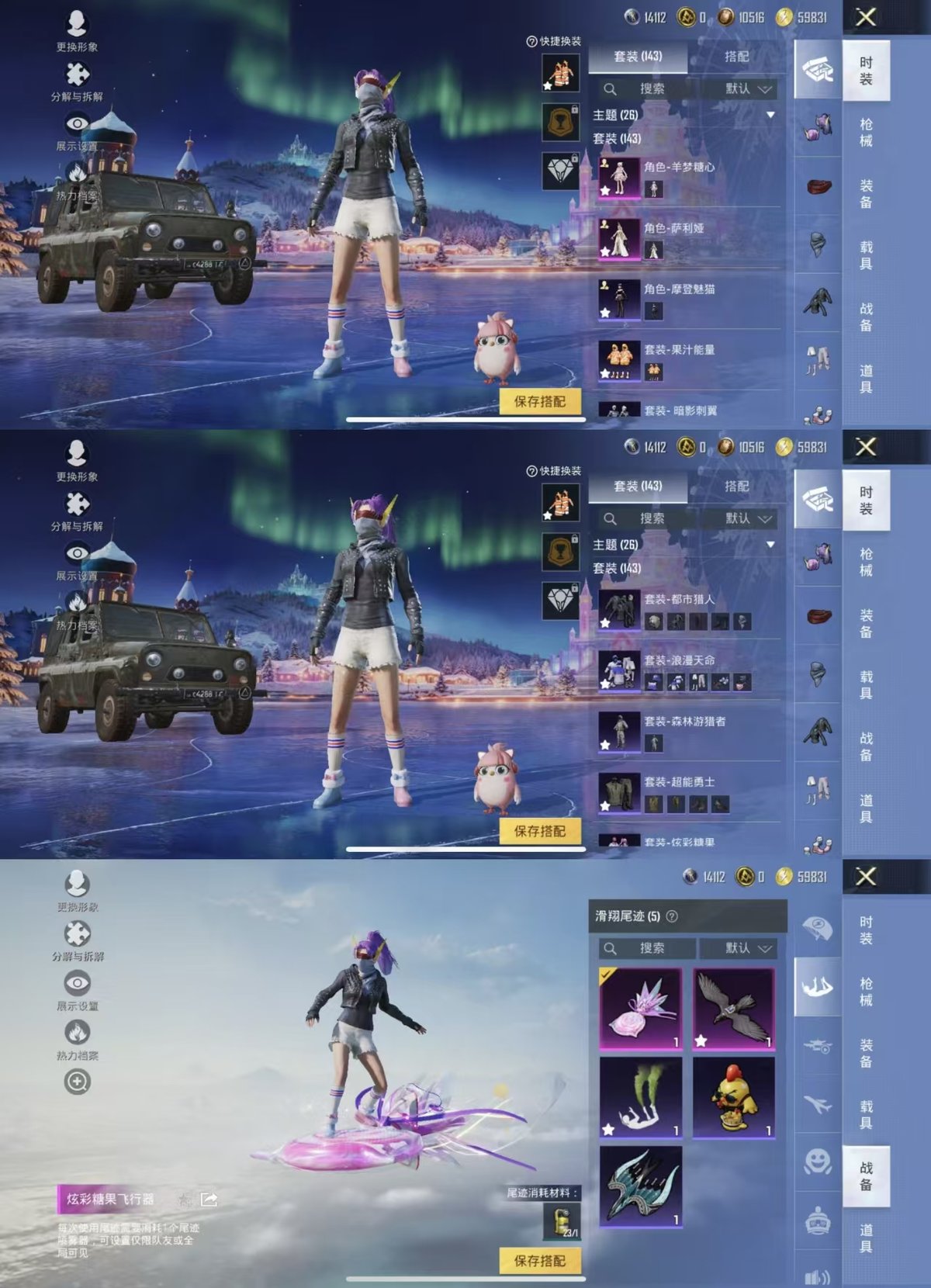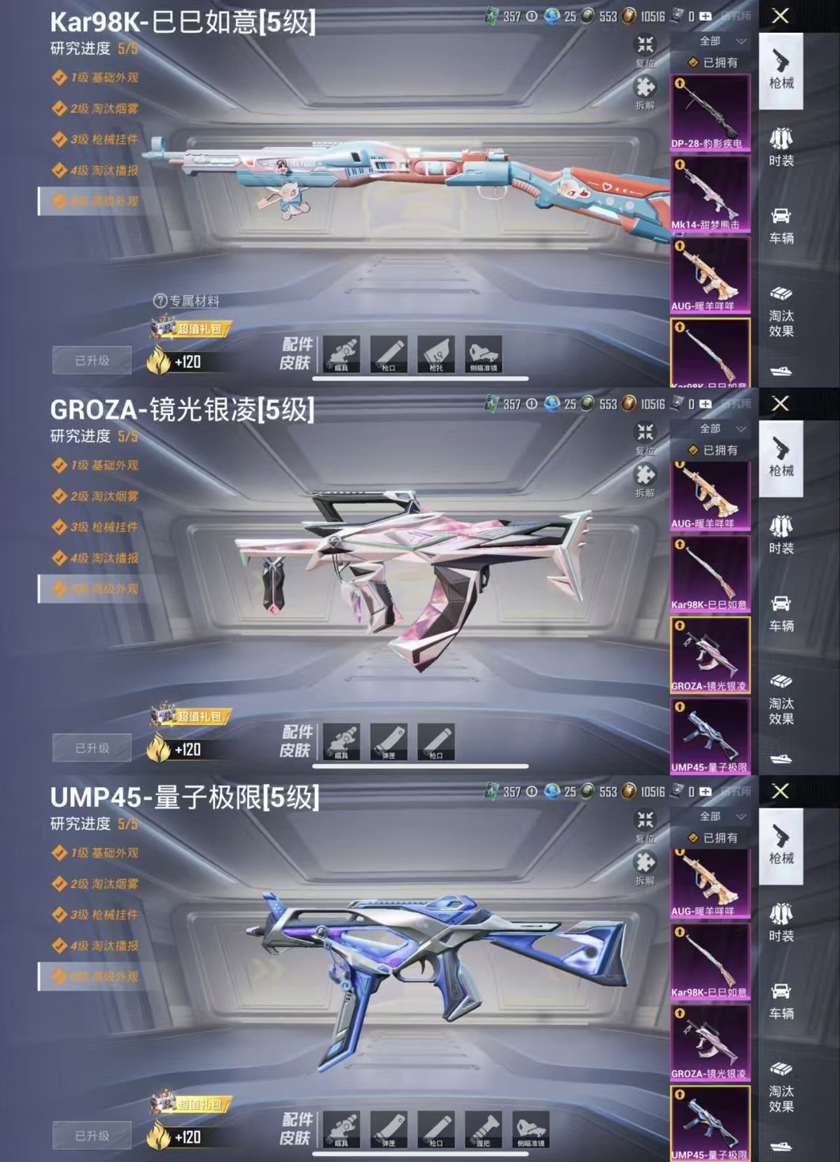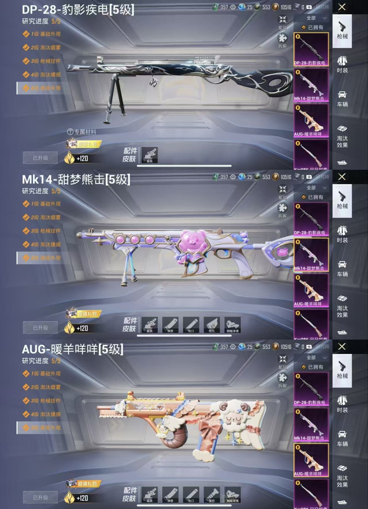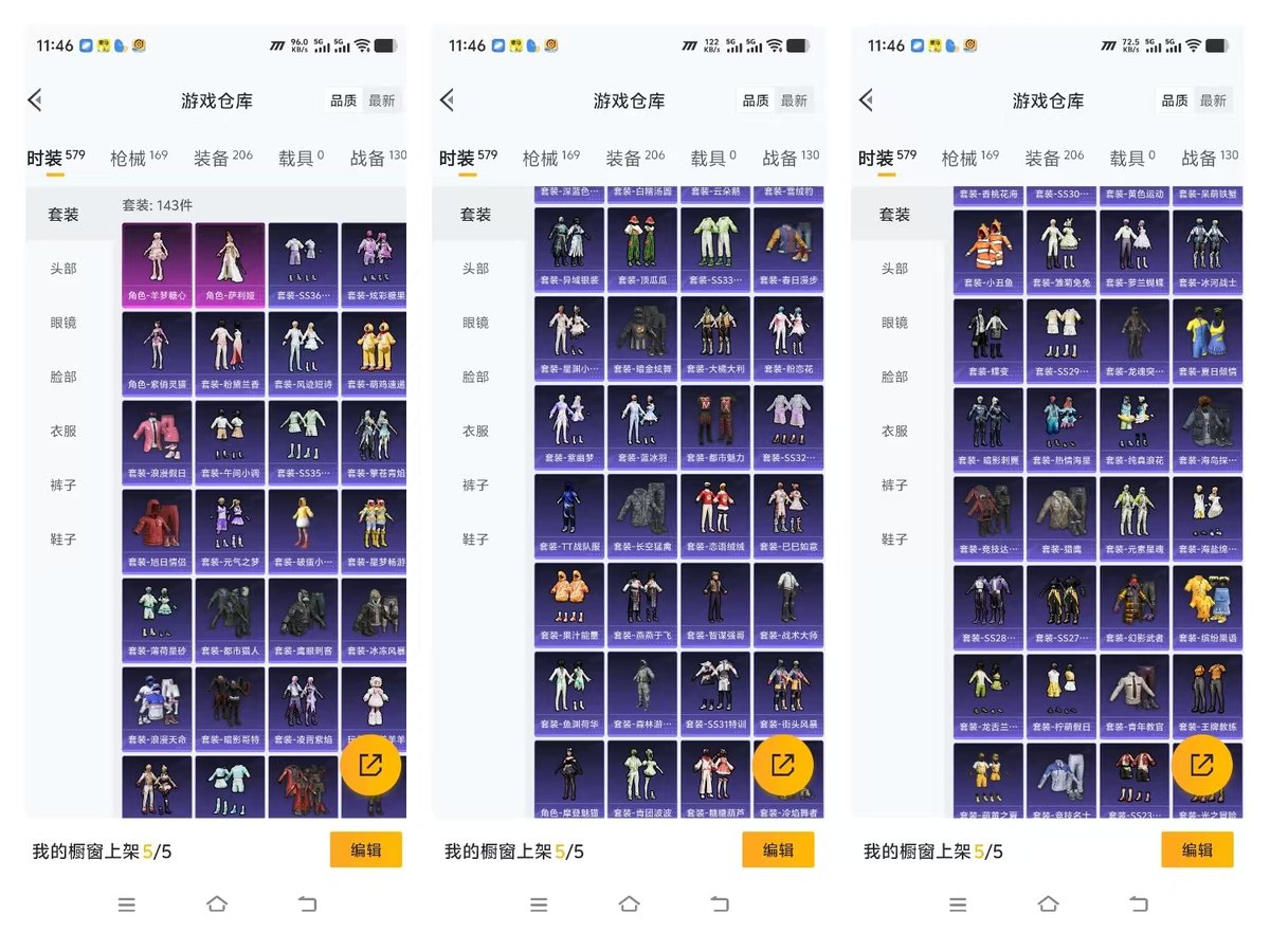 2285132-实名: 可修改 时装数: 579 呛械数: 169 战备数: 130 热门装扮: 呆萌铁蟹鹰眼刺客都市猎人萨利娅羊梦糖心 稀有呛皮: ump45量子极限groza-镜光银凌kar98k-巳巳如意aug-暖羊咩咩14-甜梦熊击dp-28-豹影疾电