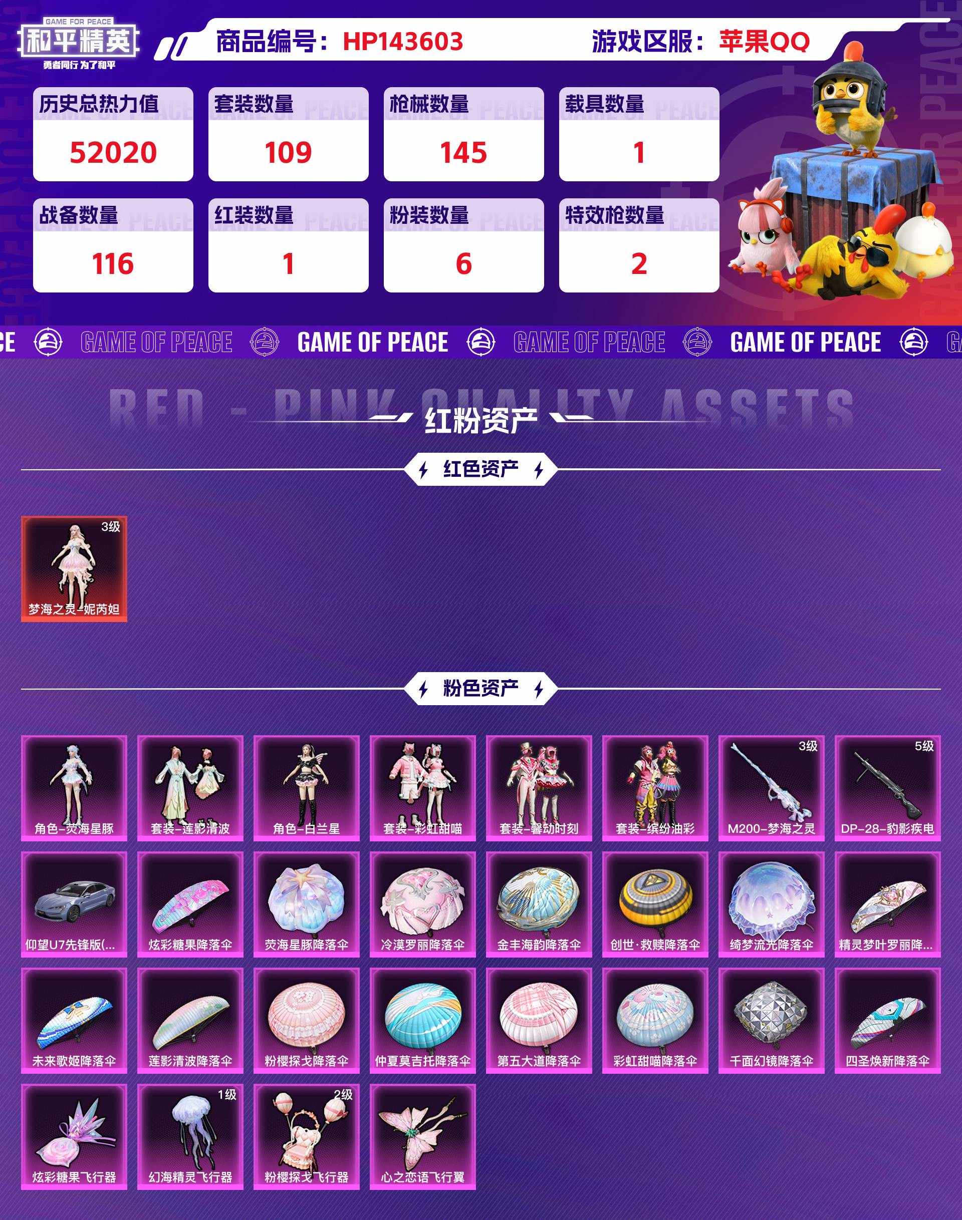 hp143603|精品妹妹号 低价出 可二次苹果qq 3级红装(精灵之光妮芮妲) 猪妹胖达圆圆6粉装(馨动时刻荧海星豚 连影清波白兰星 彩虹甜喵) 2粉呛 1载具