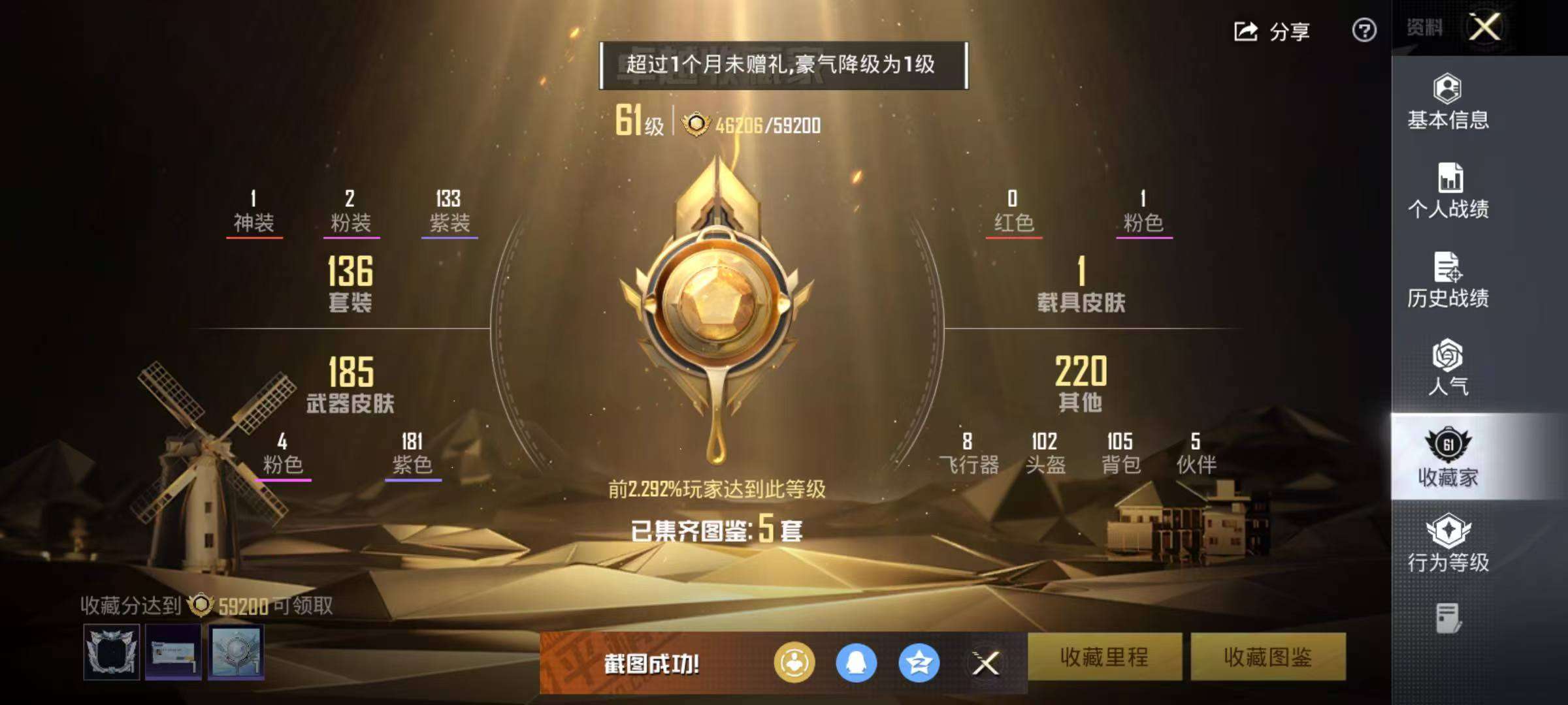 【2级维塔1红装1稀有1载具2粉装4特效呛】安卓q-1红装1稀有1载具2粉装4特效呛12热门135套装200呛皮 61699热力值 12印记 历史超级王牌10星 【1红装】 幽焰骑士-维塔 2级 【1稀有】 awm-黄金龙骨 【1载具】 幽焰风驰摩托车 【2粉装】 狂花道·不知火舞 幻彩电音 【4特效呛】 akm-幽焰骑士 3级 kar98k-巳巳如意 5级 slr-暗夜玫瑰 7级