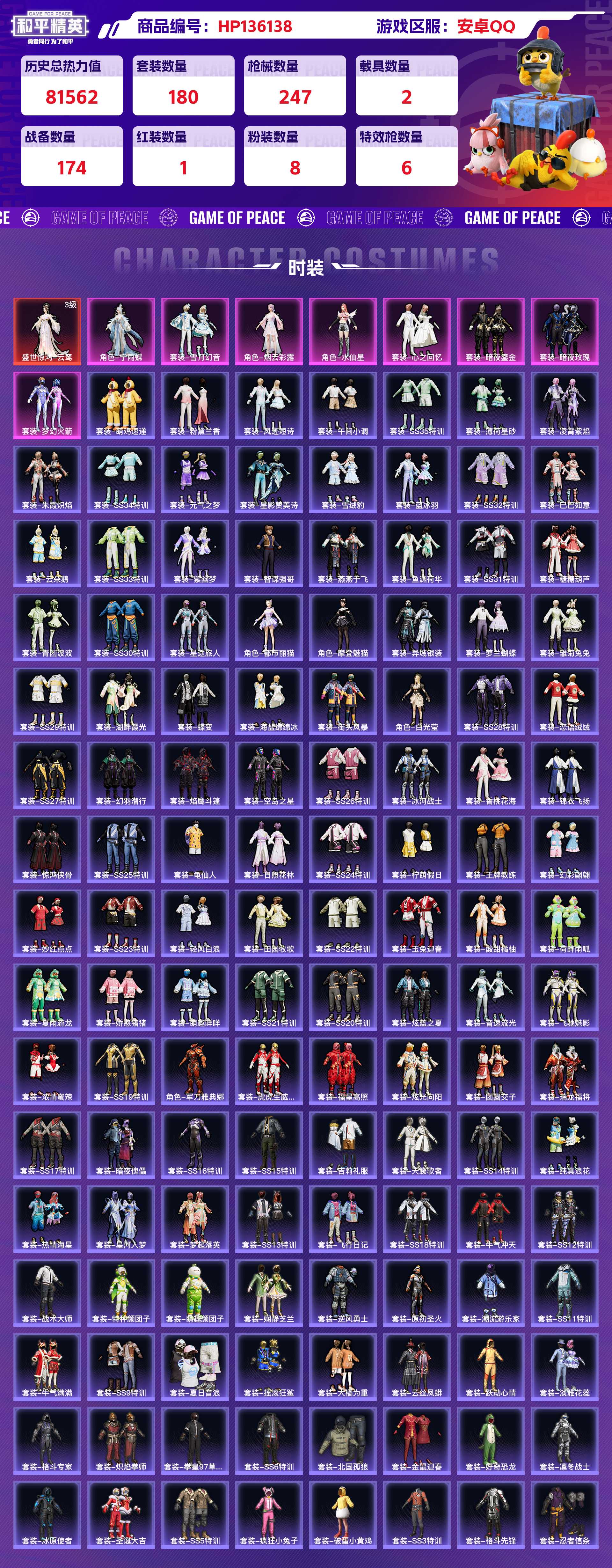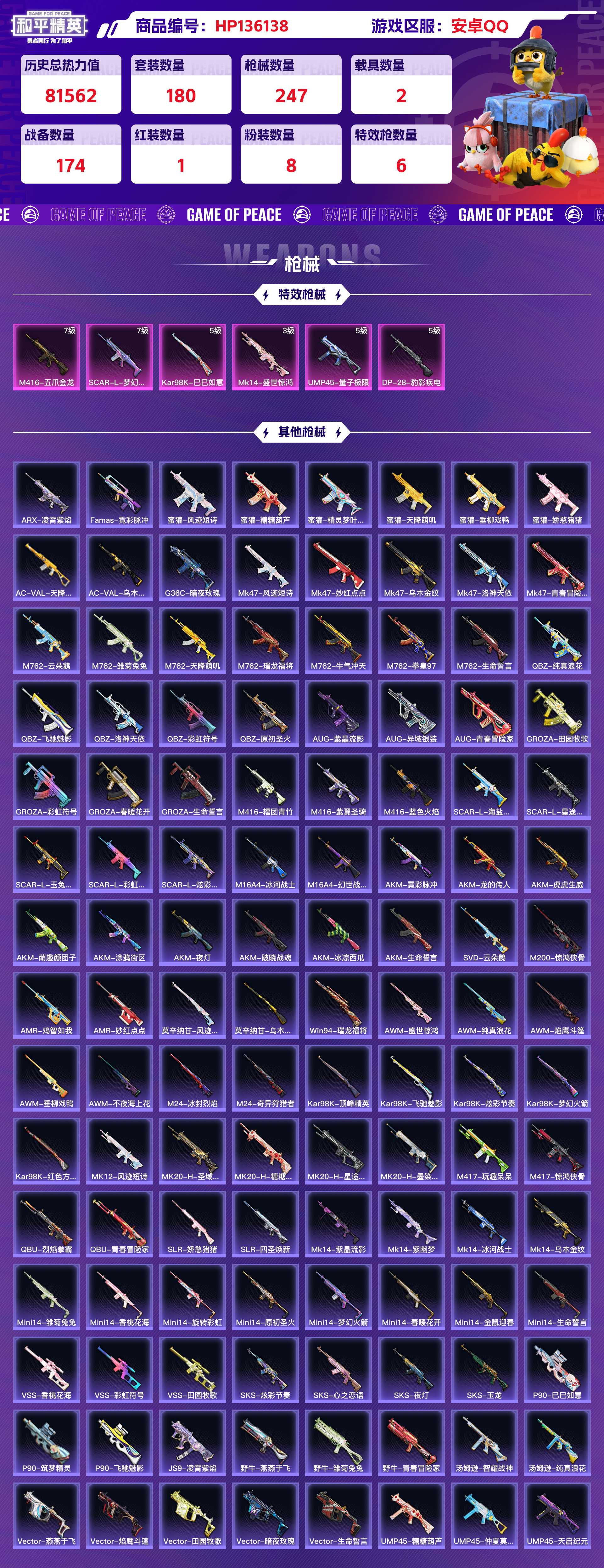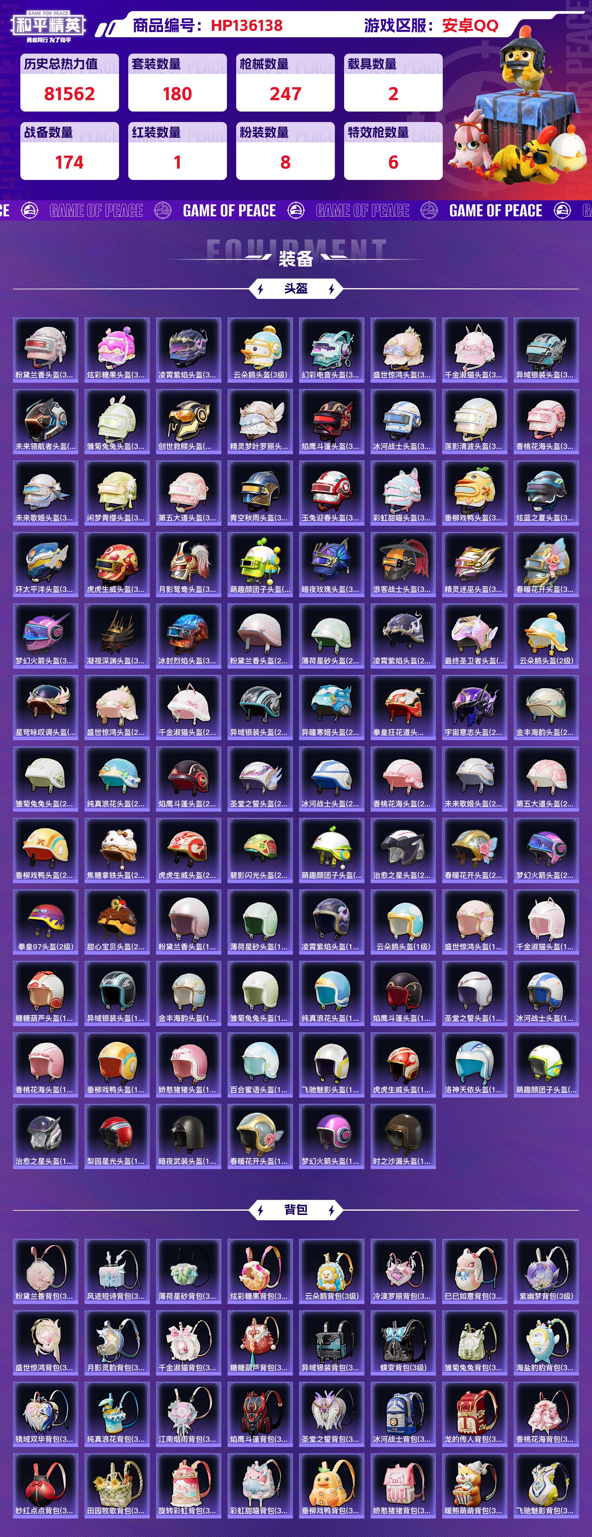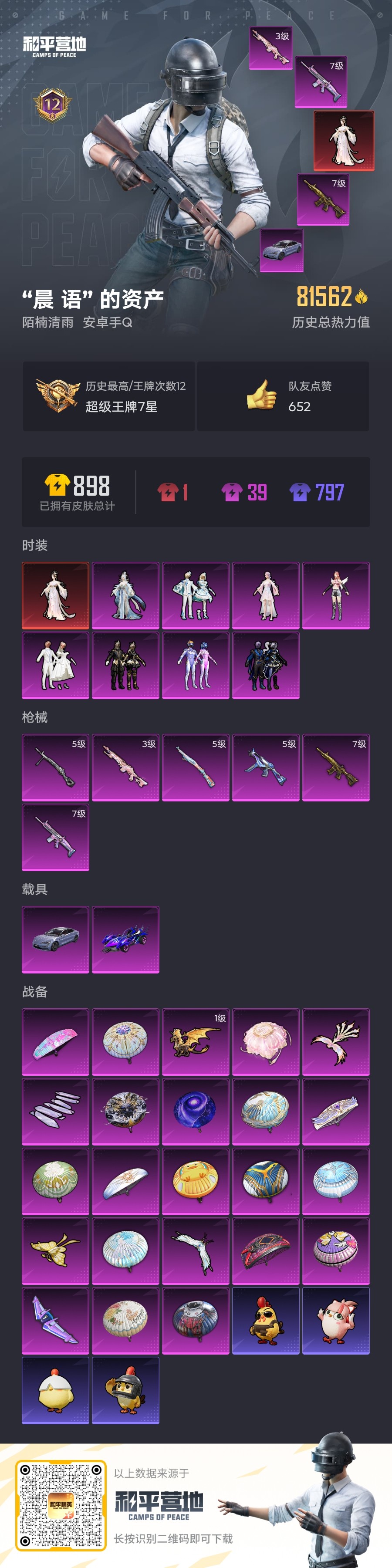 _2246390-安卓qq历史总热力值:81562红装数量:1粉装数量:8特效呛数量:6载具数量:2王牌印记:12历史最高段位:超级王牌7星套装数量:180时装数量:696呛械数量:247战备数量:174装备数量:294载具:海龙奔腾仰望u7阿盖尔紫时装:盛世惊鸿-云鸾3级套装-心之回忆套装-暗夜玫瑰套装-暗夜鎏金套装-梦幻火箭套装-雪月幻音角色-宁雨蝶角色-水仙星角色-烟云彩露套装-ss11特训套装-ss12特训套装-ss13特训套装-ss14特训套装-ss15特训套装-ss16特训套装-ss17特训套装-ss18特训套装-ss19特训套装-ss20特训套装-ss21特训套装-ss22特训套装-ss23特训套装-ss24特训套装-ss25特训套装-ss26特训套装-ss27特训套装-ss28特训套装-ss29特训套装-ss2特训套装-ss30特训套装-ss31特训套装-ss32特训套装-ss33特训套装-ss34特训套装-ss35特训套装-ss3特训套装-ss5特训套装-ss6特训套装-ss9特训套装-云丝凤蟒套装-云朵鹅套装-传奇侦探套装-元气之梦套装-冰原使者套装-冰川特警套装-冰河战士套装-凌霄紫焰套装-凛冬战士套装-北国孤狼套装-午夜朋克套装-午间小调套装-半糖蓝莓套装-原初圣火套装-吉莉礼服套装-团圆交子套装-圣诞大吉套装-坚韧舞者套装-夏日音浪套装-夏雨游龙套装-夜莺强袭者套装-大橘为重套装-天籁歌者套装-好奇恐龙套装-妙红点点套装-娇憨猪猪套装-娴静芝兰套装-完美偶像套装-巳巳如意套装-幻彩翩翩套装-幻影公爵套装-幻羽潜行套装-异域银装套装-忍者信条套装-怒火燎原套装-恋语绒绒套装-恒星战甲套装-惊鸿侠骨套装-战地督导套装-战地菁英套装-战术大师套装-拳皇97草薙京套装-摇滚狂鲨套装-摩艾涂鸦套装-日照花林套装-时尚圣诞套装-星影赞美诗套装-星河入梦套装-星途旅人套装-智谋强哥套装-暗夜傀儡套装-朱霞炽焰套装-极地朋克套装-柠萌假日套装-格斗专家套装-格斗先锋套装-梦起落英套装-沙漠兵团套装-派对绅士套装-浓情蜜辣套装-海滨突袭者套装-海盐绵绵冰套装-淡雅花蕊套装-湖畔霞光套装-湖蓝色名流套装-滨海厨神套装-潮流游乐家套装-灰色格斗者套装-炫光向阳套装-炫蓝之夏套装-炽焰拳师套装-热情海星套装-焰鹰斗篷套装-燕燕于飞套装-牛气冲天套装-牛气满满套装-特种空勤套装-特种颜团子套装-玉兔迎春套装-王牌教练套装-瑞龙福将套装-甜蜜告白套装-甜蜜菠萝套装-田园牧歌套装-疯狂小兔子套装-登山爱好者套装-白色伏地魔套装-破蛋小黄鸡套装-福星高照套装-空岛之星套装-突袭者套装-竞技勇士朋克套装-竞技名士套装-粉黛兰香套装-糖糖葫芦套装-紫幽梦套装-纯真浪花套装-缤纷果语套装-耀眼新星套装-荷畔雨呱套装-萌趣咩咩套装-萌趣颜团子套装-萌鸡速递套装-萝兰蝴蝶套装-蓝冰羽套装-蓝色守护者套装-蓝色运动套装-薄荷星砂套装-虎虎生威吉莉套装-蝶变套装-街头风暴套装-跃动心情套装-轻风白浪套装-逆风勇士套装-酸甜橘柚套装-金耀舞者套装-金鼠迎春套装-锦衣飞扬套装-长空猛禽套装-雏菊兔兔套装-雪山征服者套装-雪山精英套装-雪绒豹套装-青团波波套装-青春校园套装-青涩时光套装-音速流光套装-风迹短诗套装-飞行日记套装-飞驰魅影套装-香桃花海套装-骑行爱好者套装-魅力单车套装-鱼渊荷华套装-黑色伏地魔套装-龙魂突击队套装-龟仙人角色-军刀雅典娜角色-摩登魅猫角色-白光莹角色-都市丽猫呛械:m416-五爪金龙7级scar-l-梦幻火箭7级ac-val-乌木金纹ac-val-天降萌叽akm-冰凉西瓜akm-夜灯akm-涂鸦街区akm-生命誓言akm-破晓战魂akm-萌趣颜团子akm-虎虎生威akm-霓彩脉冲akm-龙的传人arx-凌霄紫焰aug-异域银装aug-紫晶流影aug-青春冒险家famas-霓彩脉冲g36c-暗夜玫瑰groza-彩虹符号groza-春暖花开groza-生命誓言groza-田园牧歌m16a4-冰河战士m16a4-幻世战舞者m416-糯团青竹m416-紫翼圣骑m416-蓝色火焰m762-云朵鹅m762-天降萌叽m762-拳皇97m762-牛气冲天m762-瑞龙福将m762-生命誓言m762-雏菊兔兔mk47-乌木金纹mk47-妙红点点mk47-洛神天依mk47-青春冒险家mk47-风迹短诗q-原初圣火q-彩虹符号q-洛神天依q-纯真浪花q-飞驰魅影scar-l-彩虹符号scar-l-星途旅人scar-l-海盐豹豹scar-l-炫彩节奏scar-l-玉兔迎春蜜獾-垂柳戏鸭蜜獾-天降萌叽蜜獾-娇憨猪猪蜜獾-精灵梦叶罗丽蜜獾-糖糖葫芦蜜獾-风迹短诗kar98k-巳巳如意5级amr-妙红点点amr-鸡智如我awm-不夜海上花awm-垂柳戏鸭awm-焰鹰斗篷awm-盛世惊鸿awm-纯真浪花kar98k-梦幻火箭kar98k-炫彩节奏kar98k-红色方程式kar98k-顶峰精英kar98k-飞驰魅影m200-惊鸿侠骨m24-冰封烈焰m24-奇异狩猎者svd-云朵鹅win94-瑞龙福将莫辛纳甘-乌木金纹莫辛纳甘-风迹短诗mk14-盛世惊鸿3级m417-惊鸿侠骨m417-玩趣呆呆mk12-风迹短诗mk20-h-圣域龙灵mk20-h-墨染幽兰mk20-h-星途旅人mk20-h-糖糖葫芦mini14-原初圣火mini14-旋转彩虹mini14-春暖花开mini14-梦幻火箭mini14-生命誓言mini14-金鼠迎春mini14-雏菊兔兔mini14-香桃花海mk14-乌木金纹mk14-冰河战士mk14-紫幽梦mk14-紫晶流影qbu-烈焰拳霸qbu-青春冒险家sks-夜灯sks-心之恋语sks-炫彩节奏sks-玉龙slr-四圣焕新slr-娇憨猪猪vss-彩虹符号vss-田园牧歌vss-香桃花海ump45-量子极限5级js9-凌霄紫焰p90-巳巳如意p90-筑梦精灵p90-飞驰魅影ump45-仲夏莫吉托ump45-夜灯ump45-天启纪元ump45-春暖花开ump45-狮舞迎春ump45-生命誓言ump45-糖糖葫芦uzi-冰河战士uzi-啾咪啾咪uzi-天降萌叽uzi-娇憨猪猪uzi-炫彩糖果uzi-炫彩节奏uzi-盛世惊鸿vect-暗夜玫瑰vect-焰鹰斗篷vect-燕燕于飞vect-生命誓言vect-田园牧歌汤