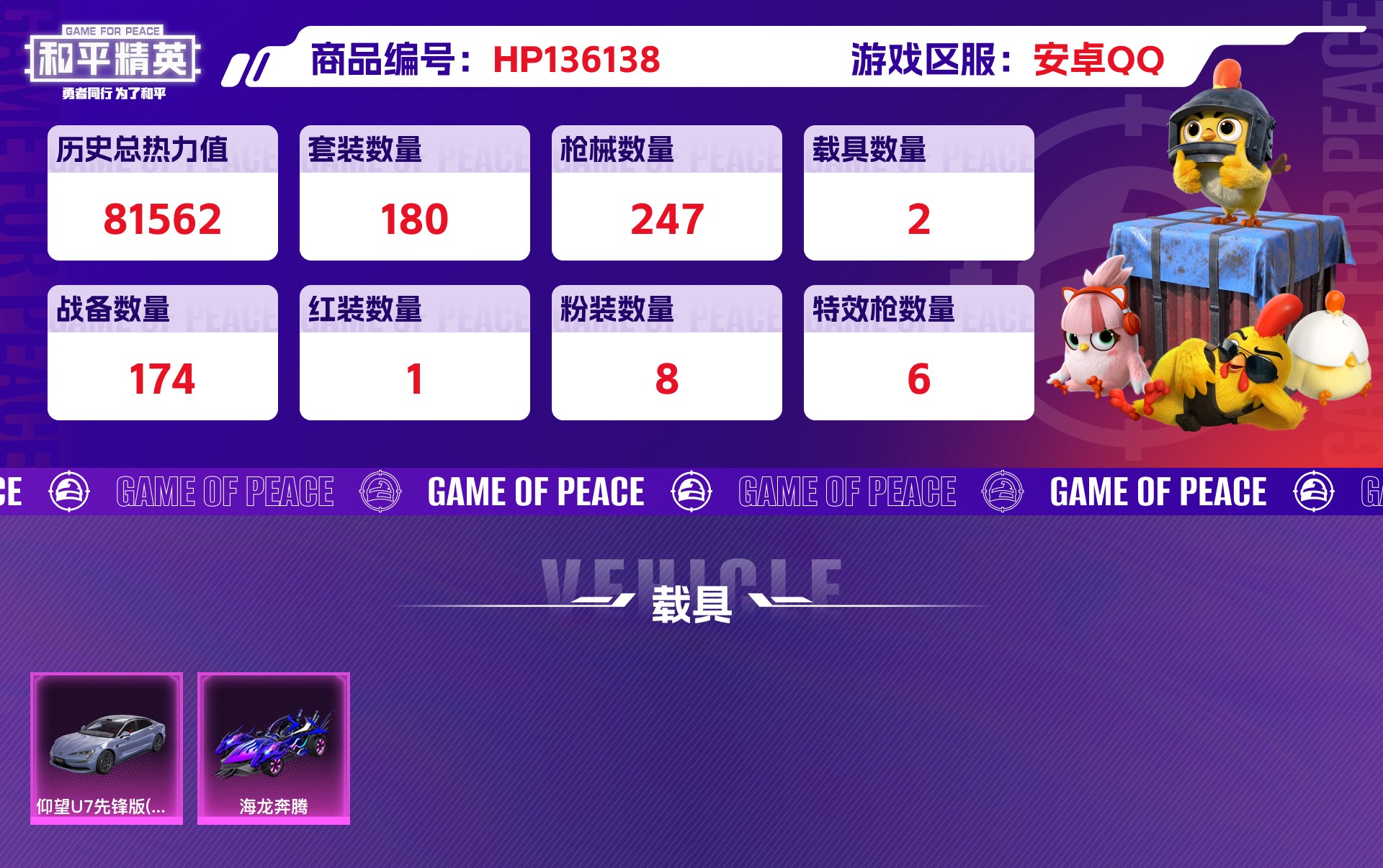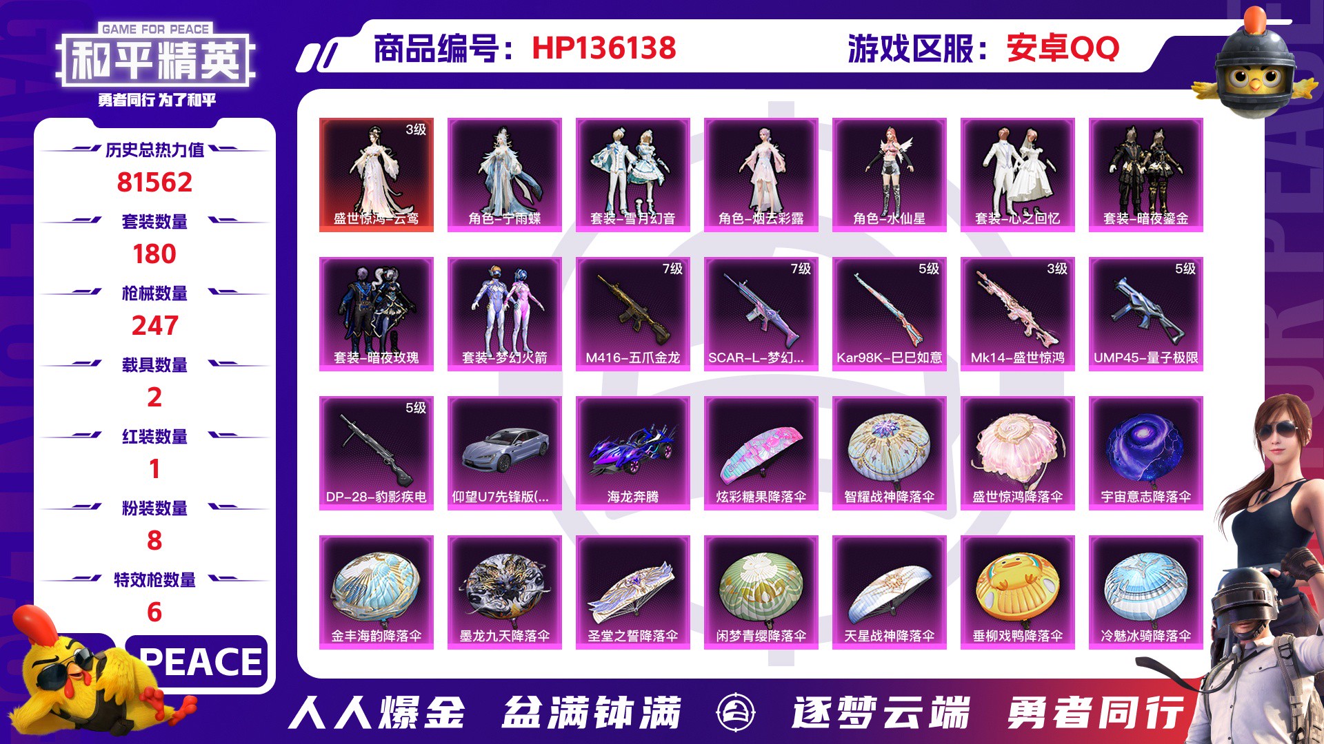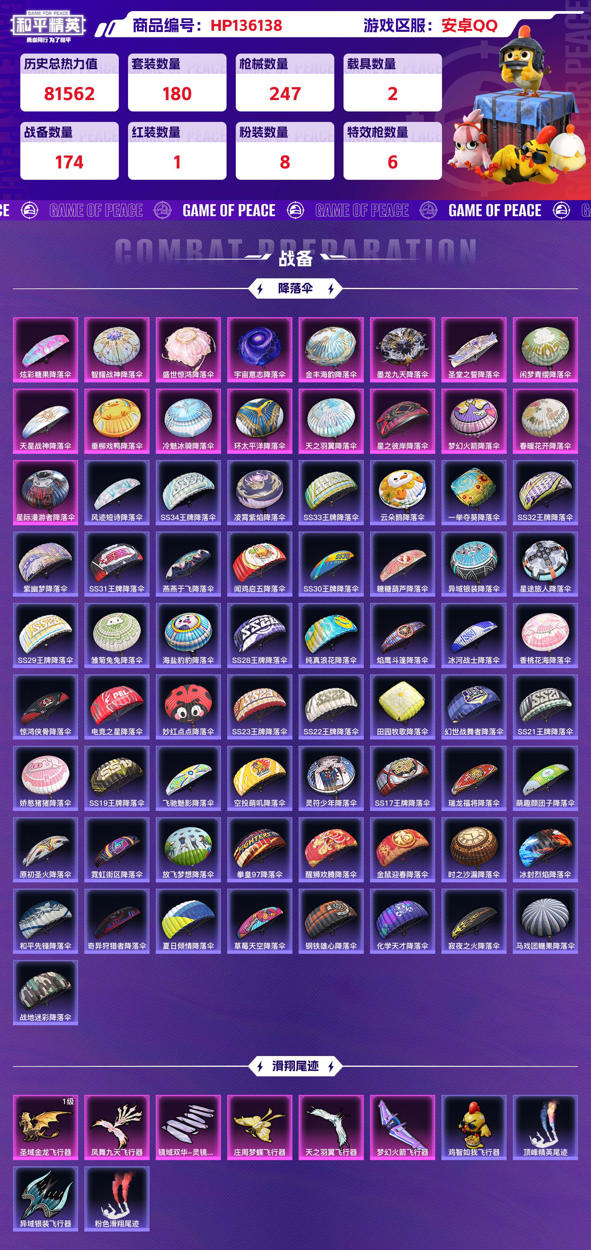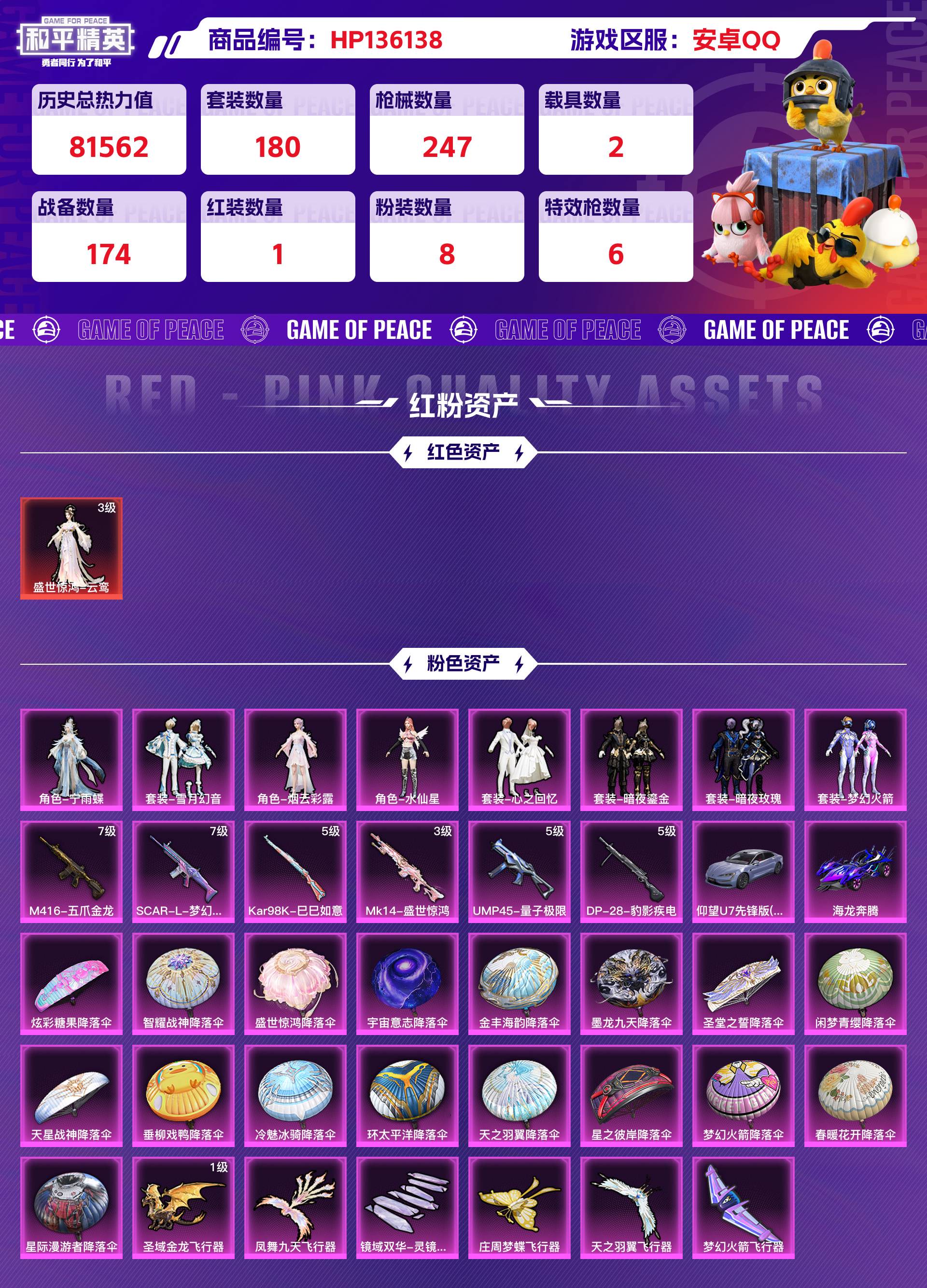 _2246390-安卓qq历史总热力值:81562红装数量:1粉装数量:8特效呛数量:6载具数量:2王牌印记:12历史最高段位:超级王牌7星套装数量:180时装数量:696呛械数量:247战备数量:174装备数量:294载具:海龙奔腾仰望u7阿盖尔紫时装:盛世惊鸿-云鸾3级套装-心之回忆套装-暗夜玫瑰套装-暗夜鎏金套装-梦幻火箭套装-雪月幻音角色-宁雨蝶角色-水仙星角色-烟云彩露套装-ss11特训套装-ss12特训套装-ss13特训套装-ss14特训套装-ss15特训套装-ss16特训套装-ss17特训套装-ss18特训套装-ss19特训套装-ss20特训套装-ss21特训套装-ss22特训套装-ss23特训套装-ss24特训套装-ss25特训套装-ss26特训套装-ss27特训套装-ss28特训套装-ss29特训套装-ss2特训套装-ss30特训套装-ss31特训套装-ss32特训套装-ss33特训套装-ss34特训套装-ss35特训套装-ss3特训套装-ss5特训套装-ss6特训套装-ss9特训套装-云丝凤蟒套装-云朵鹅套装-传奇侦探套装-元气之梦套装-冰原使者套装-冰川特警套装-冰河战士套装-凌霄紫焰套装-凛冬战士套装-北国孤狼套装-午夜朋克套装-午间小调套装-半糖蓝莓套装-原初圣火套装-吉莉礼服套装-团圆交子套装-圣诞大吉套装-坚韧舞者套装-夏日音浪套装-夏雨游龙套装-夜莺强袭者套装-大橘为重套装-天籁歌者套装-好奇恐龙套装-妙红点点套装-娇憨猪猪套装-娴静芝兰套装-完美偶像套装-巳巳如意套装-幻彩翩翩套装-幻影公爵套装-幻羽潜行套装-异域银装套装-忍者信条套装-怒火燎原套装-恋语绒绒套装-恒星战甲套装-惊鸿侠骨套装-战地督导套装-战地菁英套装-战术大师套装-拳皇97草薙京套装-摇滚狂鲨套装-摩艾涂鸦套装-日照花林套装-时尚圣诞套装-星影赞美诗套装-星河入梦套装-星途旅人套装-智谋强哥套装-暗夜傀儡套装-朱霞炽焰套装-极地朋克套装-柠萌假日套装-格斗专家套装-格斗先锋套装-梦起落英套装-沙漠兵团套装-派对绅士套装-浓情蜜辣套装-海滨突袭者套装-海盐绵绵冰套装-淡雅花蕊套装-湖畔霞光套装-湖蓝色名流套装-滨海厨神套装-潮流游乐家套装-灰色格斗者套装-炫光向阳套装-炫蓝之夏套装-炽焰拳师套装-热情海星套装-焰鹰斗篷套装-燕燕于飞套装-牛气冲天套装-牛气满满套装-特种空勤套装-特种颜团子套装-玉兔迎春套装-王牌教练套装-瑞龙福将套装-甜蜜告白套装-甜蜜菠萝套装-田园牧歌套装-疯狂小兔子套装-登山爱好者套装-白色伏地魔套装-破蛋小黄鸡套装-福星高照套装-空岛之星套装-突袭者套装-竞技勇士朋克套装-竞技名士套装-粉黛兰香套装-糖糖葫芦套装-紫幽梦套装-纯真浪花套装-缤纷果语套装-耀眼新星套装-荷畔雨呱套装-萌趣咩咩套装-萌趣颜团子套装-萌鸡速递套装-萝兰蝴蝶套装-蓝冰羽套装-蓝色守护者套装-蓝色运动套装-薄荷星砂套装-虎虎生威吉莉套装-蝶变套装-街头风暴套装-跃动心情套装-轻风白浪套装-逆风勇士套装-酸甜橘柚套装-金耀舞者套装-金鼠迎春套装-锦衣飞扬套装-长空猛禽套装-雏菊兔兔套装-雪山征服者套装-雪山精英套装-雪绒豹套装-青团波波套装-青春校园套装-青涩时光套装-音速流光套装-风迹短诗套装-飞行日记套装-飞驰魅影套装-香桃花海套装-骑行爱好者套装-魅力单车套装-鱼渊荷华套装-黑色伏地魔套装-龙魂突击队套装-龟仙人角色-军刀雅典娜角色-摩登魅猫角色-白光莹角色-都市丽猫呛械:m416-五爪金龙7级scar-l-梦幻火箭7级ac-val-乌木金纹ac-val-天降萌叽akm-冰凉西瓜akm-夜灯akm-涂鸦街区akm-生命誓言akm-破晓战魂akm-萌趣颜团子akm-虎虎生威akm-霓彩脉冲akm-龙的传人arx-凌霄紫焰aug-异域银装aug-紫晶流影aug-青春冒险家famas-霓彩脉冲g36c-暗夜玫瑰groza-彩虹符号groza-春暖花开groza-生命誓言groza-田园牧歌m16a4-冰河战士m16a4-幻世战舞者m416-糯团青竹m416-紫翼圣骑m416-蓝色火焰m762-云朵鹅m762-天降萌叽m762-拳皇97m762-牛气冲天m762-瑞龙福将m762-生命誓言m762-雏菊兔兔mk47-乌木金纹mk47-妙红点点mk47-洛神天依mk47-青春冒险家mk47-风迹短诗q-原初圣火q-彩虹符号q-洛神天依q-纯真浪花q-飞驰魅影scar-l-彩虹符号scar-l-星途旅人scar-l-海盐豹豹scar-l-炫彩节奏scar-l-玉兔迎春蜜獾-垂柳戏鸭蜜獾-天降萌叽蜜獾-娇憨猪猪蜜獾-精灵梦叶罗丽蜜獾-糖糖葫芦蜜獾-风迹短诗kar98k-巳巳如意5级amr-妙红点点amr-鸡智如我awm-不夜海上花awm-垂柳戏鸭awm-焰鹰斗篷awm-盛世惊鸿awm-纯真浪花kar98k-梦幻火箭kar98k-炫彩节奏kar98k-红色方程式kar98k-顶峰精英kar98k-飞驰魅影m200-惊鸿侠骨m24-冰封烈焰m24-奇异狩猎者svd-云朵鹅win94-瑞龙福将莫辛纳甘-乌木金纹莫辛纳甘-风迹短诗mk14-盛世惊鸿3级m417-惊鸿侠骨m417-玩趣呆呆mk12-风迹短诗mk20-h-圣域龙灵mk20-h-墨染幽兰mk20-h-星途旅人mk20-h-糖糖葫芦mini14-原初圣火mini14-旋转彩虹mini14-春暖花开mini14-梦幻火箭mini14-生命誓言mini14-金鼠迎春mini14-雏菊兔兔mini14-香桃花海mk14-乌木金纹mk14-冰河战士mk14-紫幽梦mk14-紫晶流影qbu-烈焰拳霸qbu-青春冒险家sks-夜灯sks-心之恋语sks-炫彩节奏sks-玉龙slr-四圣焕新slr-娇憨猪猪vss-彩虹符号vss-田园牧歌vss-香桃花海ump45-量子极限5级js9-凌霄紫焰p90-巳巳如意p90-筑梦精灵p90-飞驰魅影ump45-仲夏莫吉托ump45-夜灯ump45-天启纪元ump45-春暖花开ump45-狮舞迎春ump45-生命誓言ump45-糖糖葫芦uzi-冰河战士uzi-啾咪啾咪uzi-天降萌叽uzi-娇憨猪猪uzi-炫彩糖果uzi-炫彩节奏uzi-盛世惊鸿vect-暗夜玫瑰vect-焰鹰斗篷vect-燕燕于飞vect-生命誓言vect-田园牧歌汤
