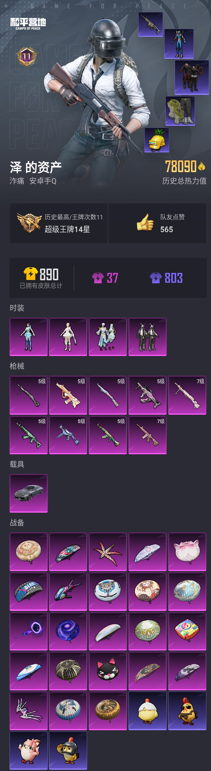 【和平精英】【lyhp16390】4粉装9特效呛1载具 千金淑猫 暗影哥特 蓝螳螂 满级恋语m4 兰博基尼 菠萝头 4粉装,9特效呛,1载具,历史最高段位:超级王牌14星 王牌印记11次 热力值:78090,171套装,240呛械,295装备,157战备;套装:套装-数码大师,套装-金丰海韵,角色-异瞳寒姬,角色-千金淑猫,套装-特训学院,套装-青年教官,套装-红色运动,套装-黄色运动,套装-蓝色运动,套装-骑行爱好者,套装-竞技名士,套装-长空猛禽,套装-竞技勇士朋克,套装-海岛探路者,套装-沙漠探路者,套装-旭日情侣,套装-冷焰舞者,套装-特战装甲,套装-贵族骑装,套装-战地督导,套装-特殊使命,套装-甜蜜告白,套装-春日漫步,套装-滨海假日,套装-人气偶像,套装-千禧之恋,套装-魅力单车,套装-绮丽涂鸦,套装-耀眼新星,套装-雪山征服者,套装-坚韧舞者,套装-竞技达人朋克,套装-都市漫游者,套装-超能勇士,套装-狂沙舞者,套装-森林游猎者,套装-都市魅力,套装-荣耀,套装-沙漠兵团,套装-雪山精英,套装-传奇侦探,套装-极地朋克,套装-蓝调潮人,套装-暗影哥特,套装-弄潮海豚,套装-迅捷狂鲨,套装-青涩时光,套装-缤纷果语,套装-滨海厨神,套装-alan walker,套装-龙魂突击队,套装-冰川特警,套装-海上生明月,套装-疯狂小兔子,套装-ss5特训,套装-圣诞大吉,套装-熔岩使者,套装-凛冬战士,套装-北国孤狼,套装-ss6特训,套装-拳皇97草薙京,套装-炽焰拳师,套装-格斗专家,套装-跃动心情,套装-ss7特训,套装-鹤鸣,套装-霓虹街区,套装-激萌罗小黑,套装-白熊同盟,套装-萌黄之夏,套装-牛气满满,套装-青春冒险家,套装-潮流游乐家,套装-原初圣火,套装-逆风勇士,套装-静谧青瓷,套装-萌趣颜团子,套装-特种颜团子,套装-战术大师,套装-ss12特训,套装-牛气冲天,套装-ss18特训,套装-镭射皇者,套装-银白舞王,套装-耀粉歌者,套装-治愈之星,套装-科技之星,套装-飞行日记,套装-ss13特训,套装-热情海星,套装-纯真浪花,套装-ss14特训,套装-蝎王蛇后,套装-ss15特训,套装-ss16特训,套装-暴风机械师,套装-时空追击者,套装-ss17特训,套装-瑞龙福将,套装-团圆交子,套装-福星高照,套装-异彩先驱,套装-霓虹极客,套装-空投萌叽,套装-ss19特训,套装-ss21特训,套装-萌趣咩咩,套装-娇憨猪猪,套装-玉兔迎春,套装-ss22特训,套装-田园牧歌,套装-轻风白浪,套装-光之冒险,套装-绯格组合,套装-神气柴柴,套装-懵萌河马,套装-青玉碎影,套装-ss24特训,套装-华灯初上,套装-日照花林,套装-ss25特训,套装-金戈铁马,套装-惊鸿侠骨,套装-锦衣飞扬,套装-元气发射,套装-香桃花海,套装-深海梦境,套装-果汁能量,套装-龙的传人,套装-冰河战士,套装-ss26特训,套装-空岛之星,套装-ss27特训,套装-恋语绒绒,套装-老实芭蕉,套装-ss28特训,角色-mark.06,套装-街头风暴,套装-海盐绵绵冰,套装-蝶变,套装-创世·追猎,套装-湖畔霞光,套装-粉日山川,套装-小熊娃娃,套装-ss29特训,套装-雏菊兔兔,套装-萝兰蝴蝶,套装-先驱飞行员,角色-蜜桃派对,套装-星途旅人,套装-ss30特训,套装-青团波波,套装-棉花软糖,角色-光矢逐梦,套装-糖糖葫芦,套装-镭金极速,套装-ss31特训,套装-鱼渊荷华,套装-燕燕于飞,套装-智谋强哥,套装-ss33特训,套装-云朵鹅,套装-巳巳如意,套装-ss32特训,套装-顶瓜瓜,套装-雪绒豹,套装-大橘大利,套装-星影赞美诗,套装-ss34特训,套装-ss35特训,套装-萌鸡速递;呛皮:5级groza-镜光银凌,groza-治愈之星,groza-彩虹符号,groza-异彩先驱,groza-田园牧歌,groza-懵萌河马,groza-海盐豹豹,groza-荧海星豚,5级aug-暖羊咩咩,aug-甜蜜菠萝,aug-耀粉歌者,aug-青春冒险家,aug-闲梦青缨,aug-2p战斗服款,aug-异域银装,aug-乌木金纹,mk47-青春冒险家,mk47-乌木金纹,mk47-炫光之旅,5级akm-绿萝繁花,akm-影袭,akm-霓虹街区,akm-夜灯,akm-彩虹符号,akm-萌趣颜团子,akm-虎虎生威,akm-2p战斗服款,akm-龙的传人,akm-霓彩脉冲,akm-乌木金纹,m16a4-红色方程式,m16a4-冰河战士,m16a4-千金淑猫,蜜獾-娇憨猪猪,蜜獾-天降萌叽,蜜獾-糖糖葫芦,蜜獾-乌木金纹,g36c-时空追击者,g36c-暗夜玫瑰,g36c-懵萌河马,g36c-星穹咏叹调,g36c-乌木金纹,q-潮汐统领,q-原初圣火,q-彩虹符号,q-未来歌姬,q-纯真浪花,scar-l-黄金龙骨,scar-l-炫彩节奏,scar-l-玉兔迎春,scar-l-甜蜜旋律,scar-l-星途旅人,scar-l-海盐豹豹,scar-l-乌木金纹,famas-霓彩脉冲,famas-乌木金纹,7级m416-心之恋语,m416-蓝色火焰,m416-绯红前夜,m416-潮汐统领,m416-糯团青竹,5级m762-青锋波束,m762-拳皇97,m762-牛气冲天,m762-镭射皇者,m762-瑞龙福将,m762-彩虹甜喵,m762-雏菊兔兔,m762-云朵鹅,ac-val-乌木金纹,ac-val-宇宙意志,5级kar98k-巳巳如意,kar98k-红色方程式,kar98k-彩虹符号,kar98k-顶峰精英,kar98k-星穹咏叹调,kar98k-乌木金纹,m200-惊鸿侠骨,m200-宇宙意志,m200-乌木金纹,m24-冰封烈焰,m24-治愈之星,m24-蓝晶绮麟,m24-幻彩电音,m24-乌木金纹,awm-纯真浪花,awm-乌木金纹,莫辛纳甘-懵萌河马,win94-瑞龙福将,win94-乌木金纹,svd-云朵鹅,amr-乌木金纹,mk14-治愈之星,mk14-冰河战士,mk14-紫晶流影,mini14-原初圣火,mini14-炫彩节奏,mini14-异彩先驱,mini14-旋转彩虹,mini14-香桃花海,mini14-雏菊兔兔,mk20-h-星途旅人,mk20-h-糖糖葫芦,mk20-h-乌木金纹,slr-娇憨猪猪,slr-金丰海韵,slr-霓彩脉冲,sks-炫彩节奏,sks-时空追击者,sks-未来歌姬,vss-镭射皇者,vss-田园牧歌,vss-彩虹符号,vss-香桃花海,qbu-青春冒险家,m417-惊鸿侠骨,m417-玩趣呆呆,vect-生命誓言,vect-银河战甲,vect-彩虹符号,vect-治愈之星,vect-田园牧歌,vect-创世·救赎,vect-燕燕于飞,vect-动力