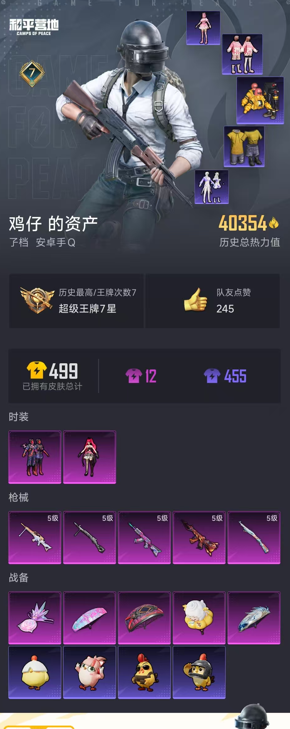【和平精英】【lyhp17141】4w热力值 2粉装 5特效呛 心之彼岸 绯红魔姬 5级炫紫旋律akm 5级风花雪月m416 2粉装,5特效呛,0载具,历史最高段位:超级王牌7星 王牌印记7次 热力值:40354,78套装,157呛械,169装备,81战备;套装:套装-星之彼岸,角色-绯穹魔姬,套装-黄色运动,套装-蓝色运动,套装-黄色伏地魔,套装-登山爱好者,套装-竞技名士,套装-黄色名流,套装-长空猛禽,套装-海岛探路者,套装-灼焰舞者,套装-特战装甲,套装-甜蜜告白,套装-魅力单车,套装-森林游猎者,套装-热血青春,套装-幻世战舞者,套装-金耀舞者,套装-缤纷果语,套装-麻辣教官,套装-破蛋小黄鸡,套装-牛气满满,套装-战术大师,套装-竞技角斗士,套装-ss20特训,套装-甜心亚梦,套装-虚音幻奏,套装-ss21特训,套装-萌趣咩咩,套装-娇憨猪猪,套装-玉兔迎春,套装-ss22特训,套装-田园牧歌,套装-轻风白浪,套装-光之冒险,套装-ss23特训,套装-ss25特训,套装-龙的传人,套装-冰河战士,套装-ss26特训,套装-空岛之星,套装-ss27特训,套装-恋语绒绒,套装-ss28特训,角色-情公主,套装-海盐绵绵冰,套装-蝶变,角色-绯色魅影,套装-异域银装,套装-ss30特训,套装-ss31特训,套装-鱼渊荷华,套装-燕燕于飞,套装-紫幽梦,套装-粉恋花,套装-ss33特训,套装-云朵鹅,套装-巳巳如意,套装-ss32特训,套装-风舞幻音,套装-蓝冰羽,套装-雪绒豹,套装-大橘大利,角色-灵公主,套装-炫彩糖果,玩偶服-美羊羊,套装-元气之梦,套装-ss34特训,套装-朱霞炽焰,套装-游乐,套装-凌霄紫焰,套装-薄荷星砂,套装-ss35特训,套装-午间小调,套装-秘语星愿,套装-风迹短诗,套装-ss36特训,套装-萌鸡速递;呛皮:5级akm-炫紫旋律,akm-冰凉西瓜,akm-破晓战魂,akm-涂鸦街区,akm-龙的传人,akm-砺玉逐花,akm-霓彩脉冲,m16a4-蓝色火焰,m16a4-甜心亚梦,m16a4-幻世战舞者,m16a4-冰河战士,scar-l-红色方程式,scar-l-炫彩节奏,scar-l-彩虹符号,scar-l-玉兔迎春,scar-l-星途旅人,scar-l-海盐豹豹,scar-l-冷漠罗丽,mk47-乌木金纹,mk47-风迹短诗,5级m416-风花雪月,m416-蓝色火焰,m416-绯红前夜,m416-红色方程式,m416-糯团青竹,aug-耀粉歌者,aug-青春冒险家,aug-异域银装,aug-冰晶雪宝,aug-紫晶流影,蜜獾-娇憨猪猪,蜜獾-天降萌叽,蜜獾-绯穹魔姬,蜜獾-风迹短诗,蜜獾-乌木金纹,famas-霓彩脉冲,famas-乌木金纹,arx-凌霄紫焰,groza-治愈之星,groza-彩虹符号,groza-田园牧歌,m762-风花雪月,m762-彩虹符号,m762-云朵鹅,ac-val-甜心亚梦,ac-val-天降萌叽,5级kar98k-巳巳如意,kar98k-红色方程式,kar98k-彩虹符号,莫辛纳甘-炙焰牛王,莫辛纳甘-风迹短诗,svd-云朵鹅,svd-霓彩脉冲,win94-乌木金纹,amr-乌木金纹,awm-天降萌叽,m200-乌木金纹,slr-娇憨猪猪,slr-彩虹符号,slr-霓彩脉冲,mk14-乌木金纹,mk14-冰河战士,mk14-紫幽梦,mk14-薄荷星砂,sks-炫彩节奏,vss-田园牧歌,vss-彩虹符号,vss-香桃花海,mk20-h-狂鲨锋刃,mk20-h-乌木金纹,mini14-耀粉歌者,mini14-香桃花海,mk12-风迹短诗,js9-凌霄紫焰,vect-生命誓言,vect-田园牧歌,vect-燕燕于飞,p90-飞驰魅影,p90-玩趣呆呆,p90-巳巳如意,p90-乌木金纹,ump45-夜灯,ump45-蓝色火焰,ump45-生命誓言,ump45-海盐豹豹,ump45-极意拳锋,uzi-红色方程式,uzi-娇憨猪猪,uzi-天降萌叽,uzi-啾咪啾咪,uzi-炫彩糖果,mp5k-乌木金纹,aks-74u-鬼刀,aks-74u-鸡智如我,aks-74u-乌木金纹,汤姆逊-耀粉歌者,汤姆逊-炫彩节奏,汤姆逊-暗夜鎏金,汤姆逊-天降萌叽,野牛-燕燕于飞,s1897-炫彩节奏,s1897-紫幽梦,s1897-糯团青竹,s686-红色方程式,s686-生命誓言,s686-彩虹符号,s686-巳巳如意,s12k-破晓战魂,s12k-夜灯,s12k-娇憨猪猪,s12k-幻世战舞者,s12k-玩趣呆呆,s12k-霓彩脉冲,dbs-甜心亚梦,dbs-彩虹符号,dbs-圣堂之誓,dbs-风迹短诗,dbs-乌木金纹,spas-12-田园牧歌,spas-12-燕燕于飞,spas-12-狂鲨锋刃,spas-12-云朵鹅,spas-12-乌木金纹,5级dp-28-豹影疾电,dp-28-甜心亚梦,mg3-瑞龙福将,mg3-青春物语,mg3-乌木金纹,m249-破晓战魂,m249-糯团青竹,5级mg-36-沧焰双生,mg-36-凌霄紫焰,pkm-啾咪啾咪,pkm-紫幽梦,沙墨之鹦-旋转彩虹,沙墨之鹦-云朵鹅,p92-紫幽梦,p92-凌霄紫焰,tmp-9-江南烟雨,蝎式手呛-燕燕于飞,平底锅-甜心亚梦,平底锅-娇憨猪猪,平底锅-田园牧歌,平底锅-光之冒险,平底锅-空岛之星,平底锅-紫幽梦,平底锅-宁雨蝶,平底锅-凌霄紫焰,大砍刀-云朵鹅,撬棍-快乐主宰,十子怒-燕燕于飞,十子怒-异域银装,盐雾蛋-冰氧夏日,破片手留单-呆爆全场,破片手留单-拽到爆炸,破片手留单-巳巳如意,铝热弹-炫彩糖果;降落伞:炫彩糖果飞行器,粉色滑翔尾迹,异域银装飞行器,鸡智如我飞行器; 详情看图