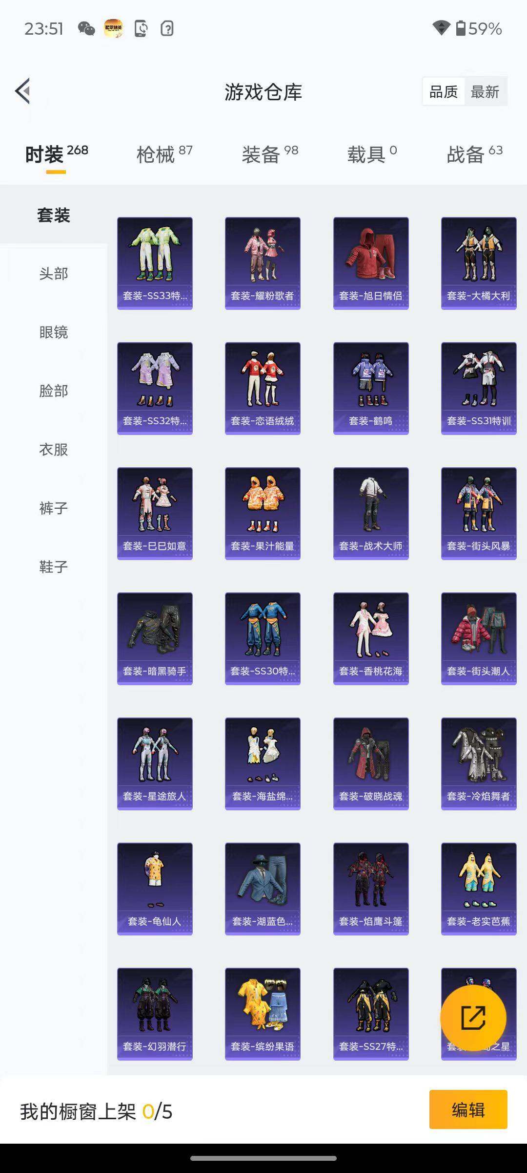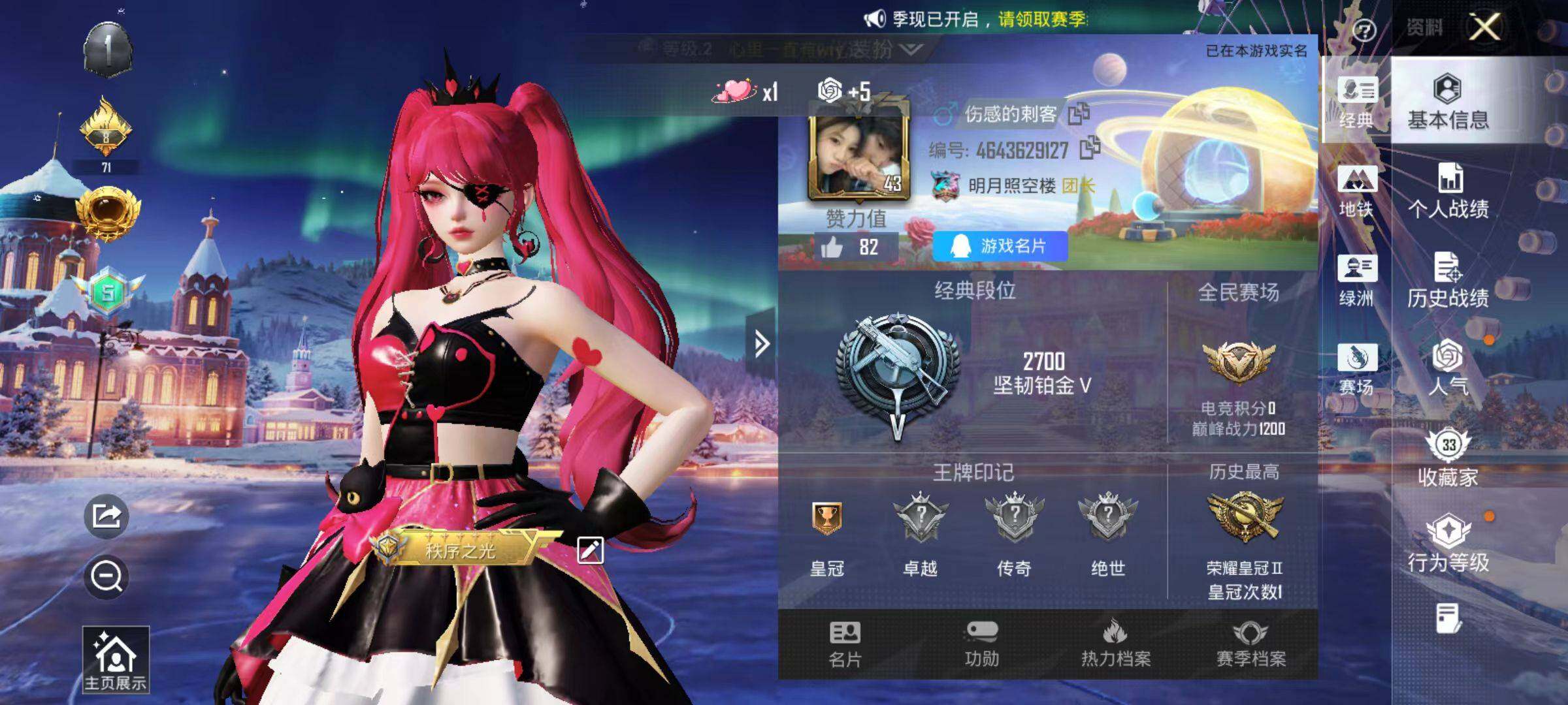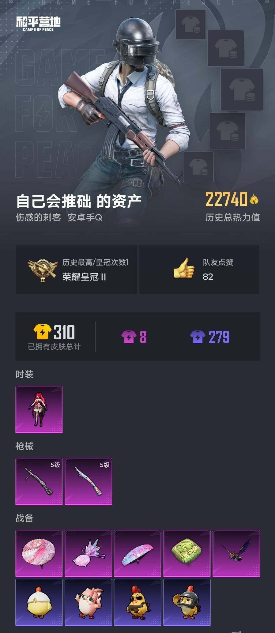 6017-1粉装-2特效呛-0载具-2粉色飞行器-22740热力值-1王牌印记-62套装-87呛皮 【热门品类】:套装-龟仙人 【粉色套装】:角色-绯穹魔姬 【粉色呛皮等级】:kar98k-巳巳如意五级,dp-28-豹影疾电五级 【粉色呛皮】:kar98k-巳巳如意,dp-28-豹影疾电 【粉色飞行器】:繁龙极客飞行器 【粉色降落伞】:绝对恒星降落伞,恐龙拽拽降落伞 【稀有套装】: