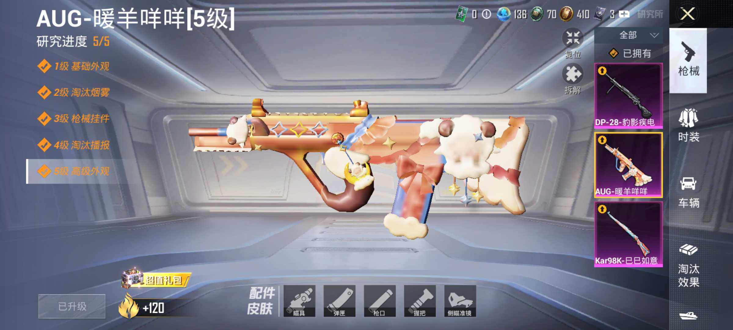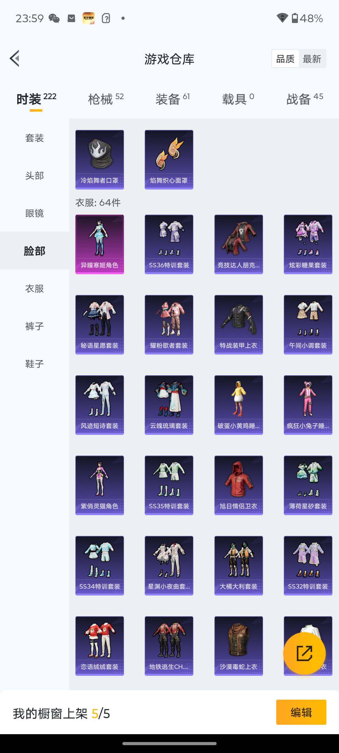 6018-1粉装-3特效呛-0载具-1粉色飞行器-15648热力值-2王牌印记-53套装-52呛皮 【粉色套装】:角色-异瞳寒姬 【粉色呛皮等级】:aug-暖羊咩咩五级,kar98k-巳巳如意五级,dp-28-豹影疾电四级 【粉色呛皮】:aug-暖羊咩咩,kar98k-巳巳如意,dp-28-豹影疾电 【粉色降落伞】:千金淑猫降落伞,樱桃泡泡降落伞,桃粉嫣然降落伞,异瞳寒姬降落伞