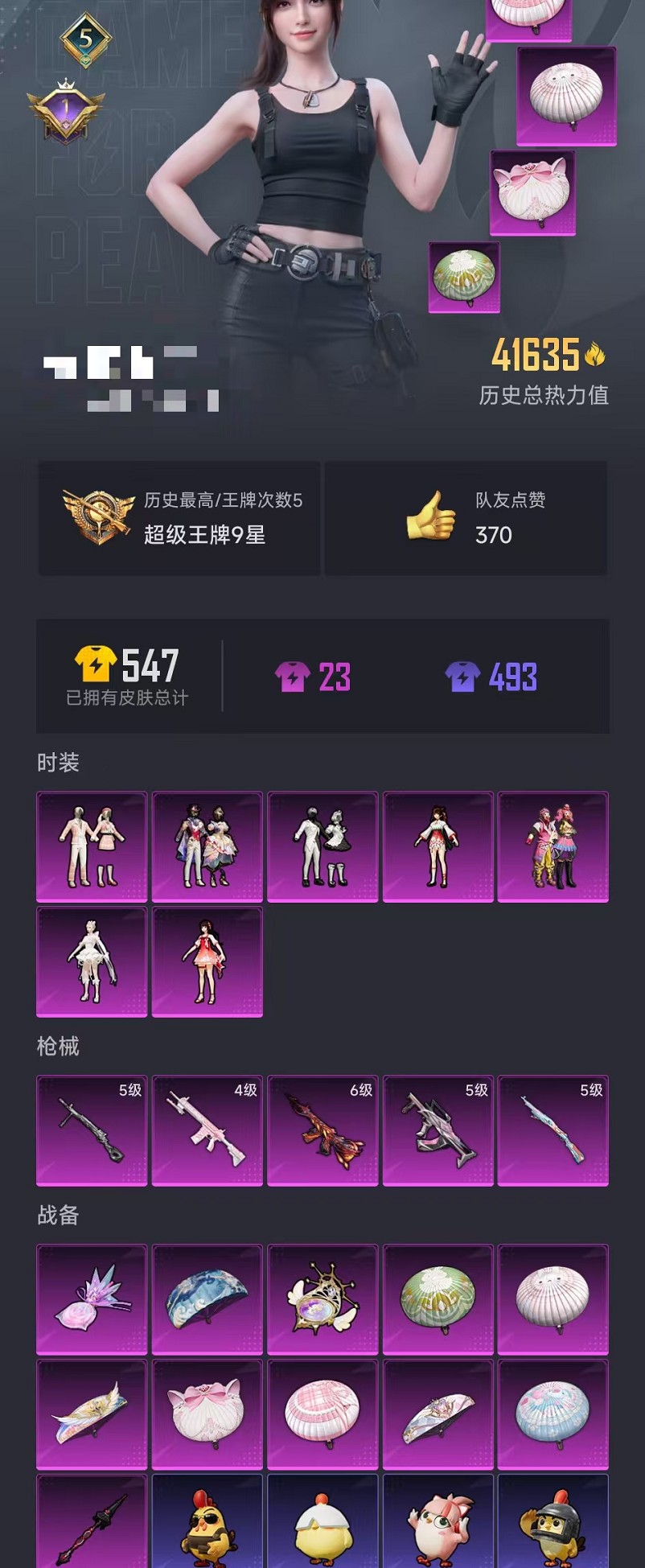 可二次【女号 7粉装5特效呛 可秒换绑】 安卓q区-41650热力值-5印记-114套装-124呛皮 【7粉装】 缤纷油彩(猪脸妹) 第五大道 小可学妹 歌者泠鸢 冰川幽秘 星穹咏叹调 角色-千金淑猫【5特效呛】 m417-第五大道4级 m416-风花雪月6级 groza-镜光银凌5级 kar98k-巳巳如意5级 dp-28-豹影疾电5级【8热门】 长空猛禽