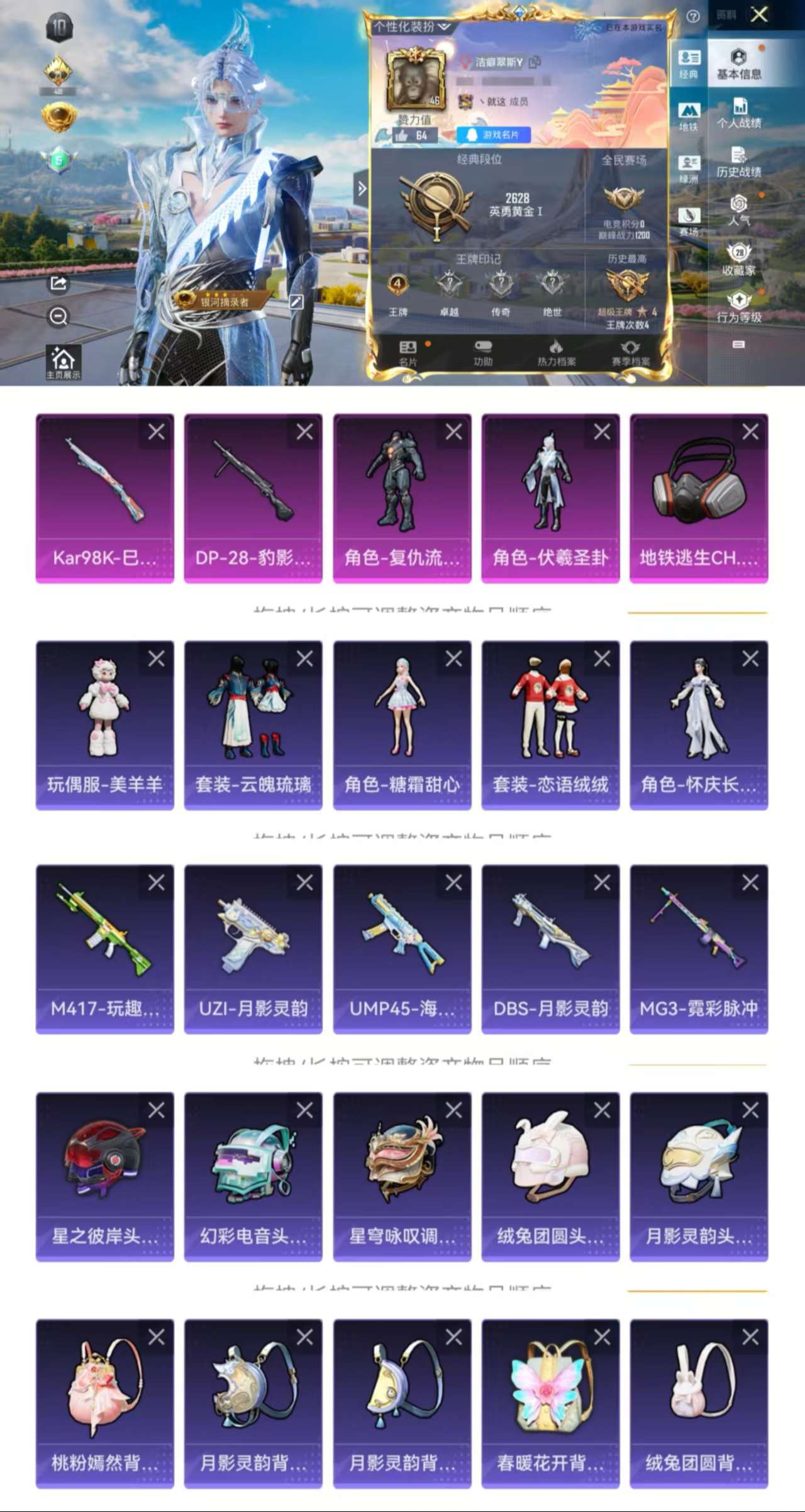 hm6081安卓q区【2粉装 复仇流浪者 伏羲圣卦 2特效呛 dp-28-豹影疾电4级 kar98k-巳巳如意5级糖霜甜心玩偶服-美羊羊云魄琉璃怀庆公主-送王者58皮2传说】 17506热力值-4王牌印记-69套装-61呛皮-黄金i-游戏46级 【优质套装】: 伏羲圣卦 复仇流浪者 【特效呛等级】:kar98k-巳巳如意五级kar98k-巳巳如意 【优质武器皮肤】: kar98k-