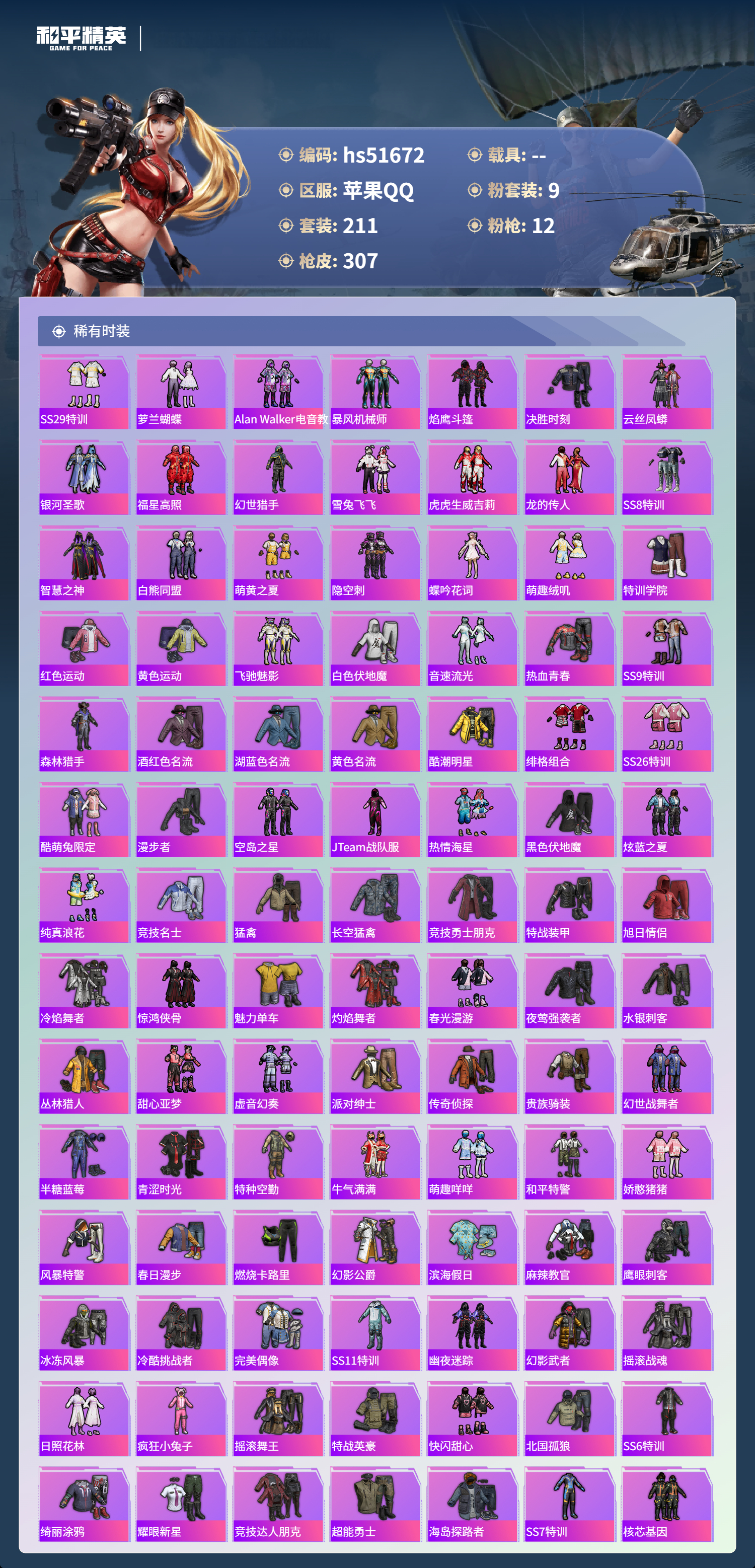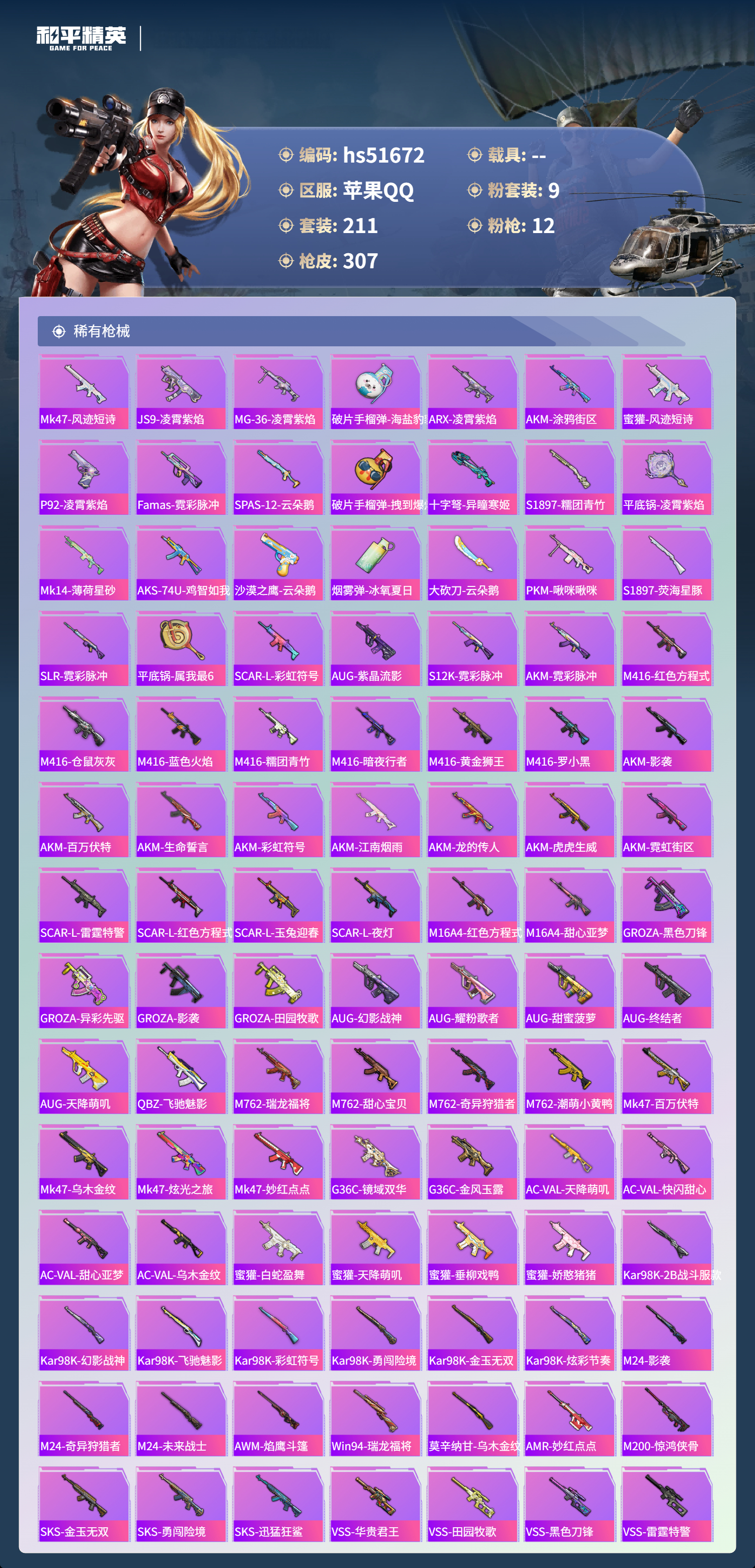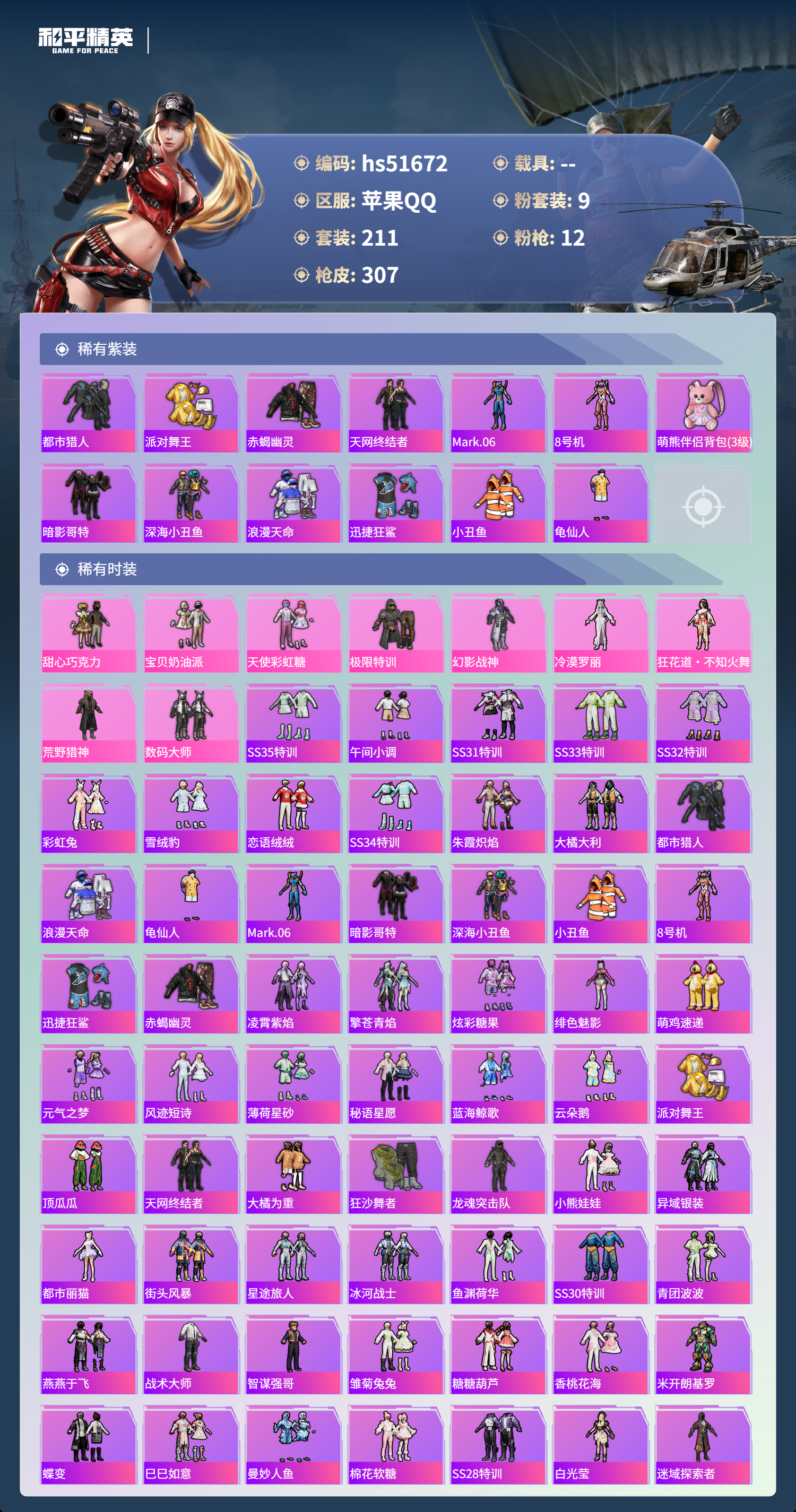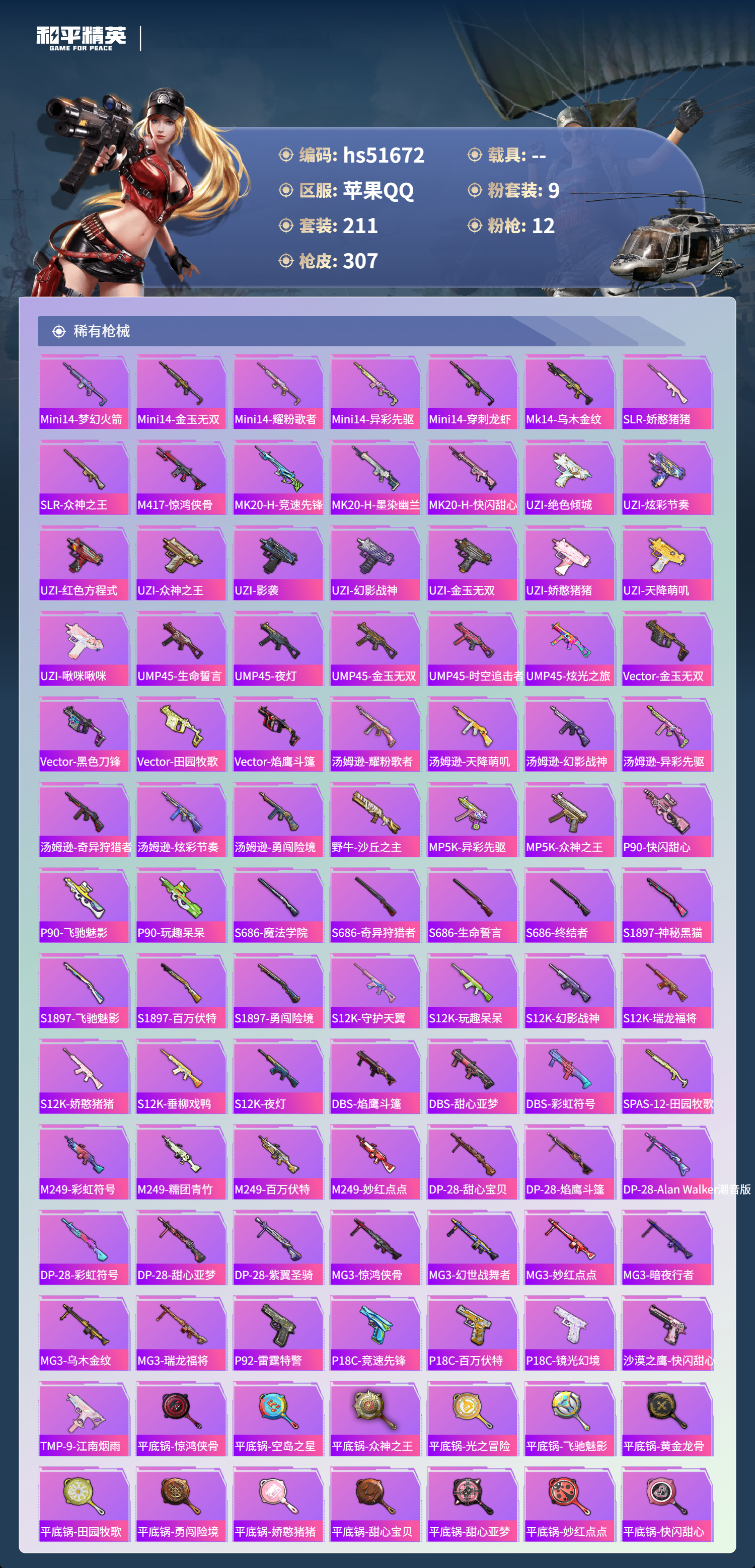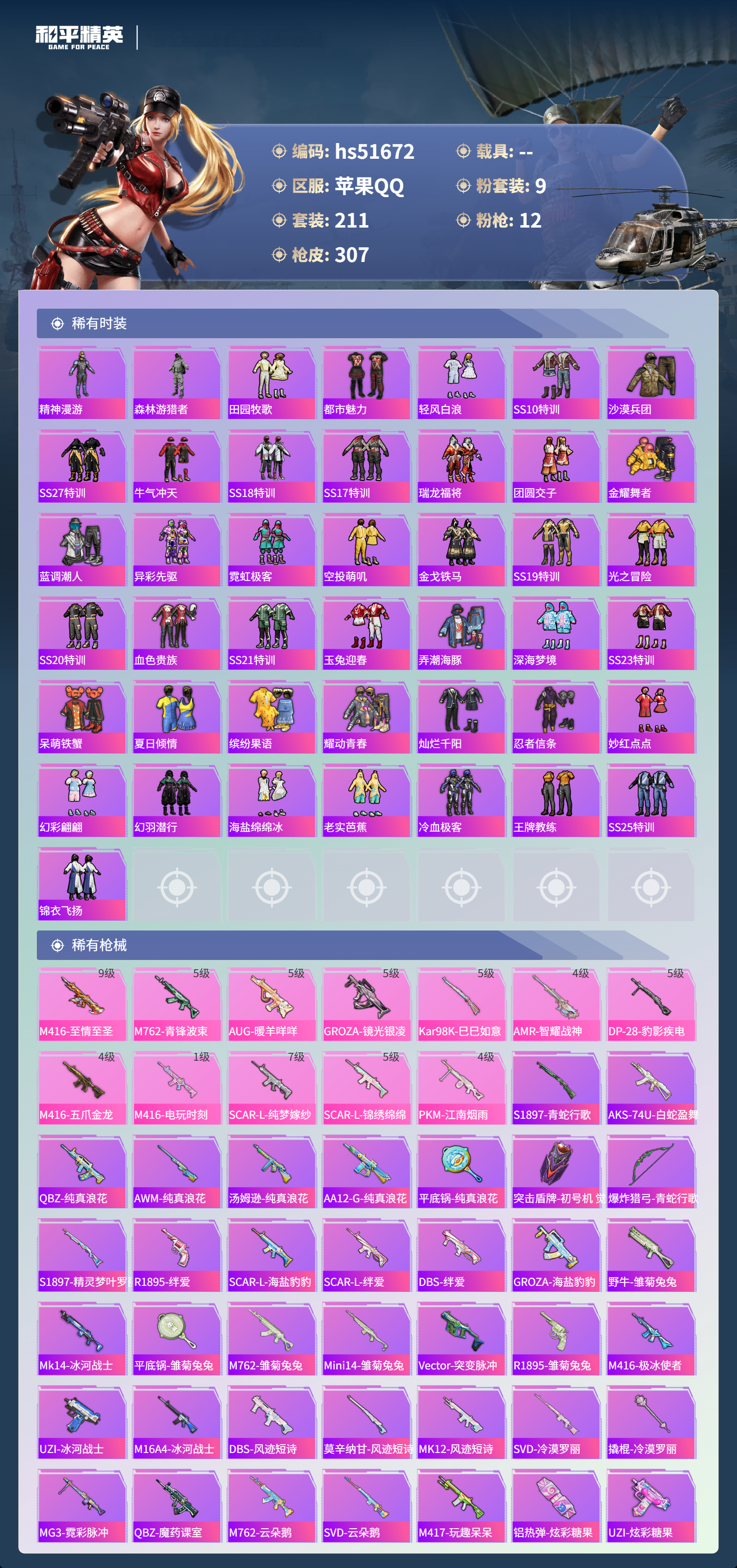 hs51672 苹果手q-17王牌印记-9粉装-12特效呛-92965热力值-211套装-307呛皮-5卓越印记-2传奇印记【9粉装】套装-甜心巧克力套装-宝贝奶油派套装-数码大师角色-冷漠罗丽套装-天使彩虹糖套装-极限特训角色-狂花道·不知火舞套装-幻影战神套装-荒野猎神【12特效呛】m416-电玩时刻/1级pkm-江南烟雨/4级m762-青锋波束/5级dp-28-豹影