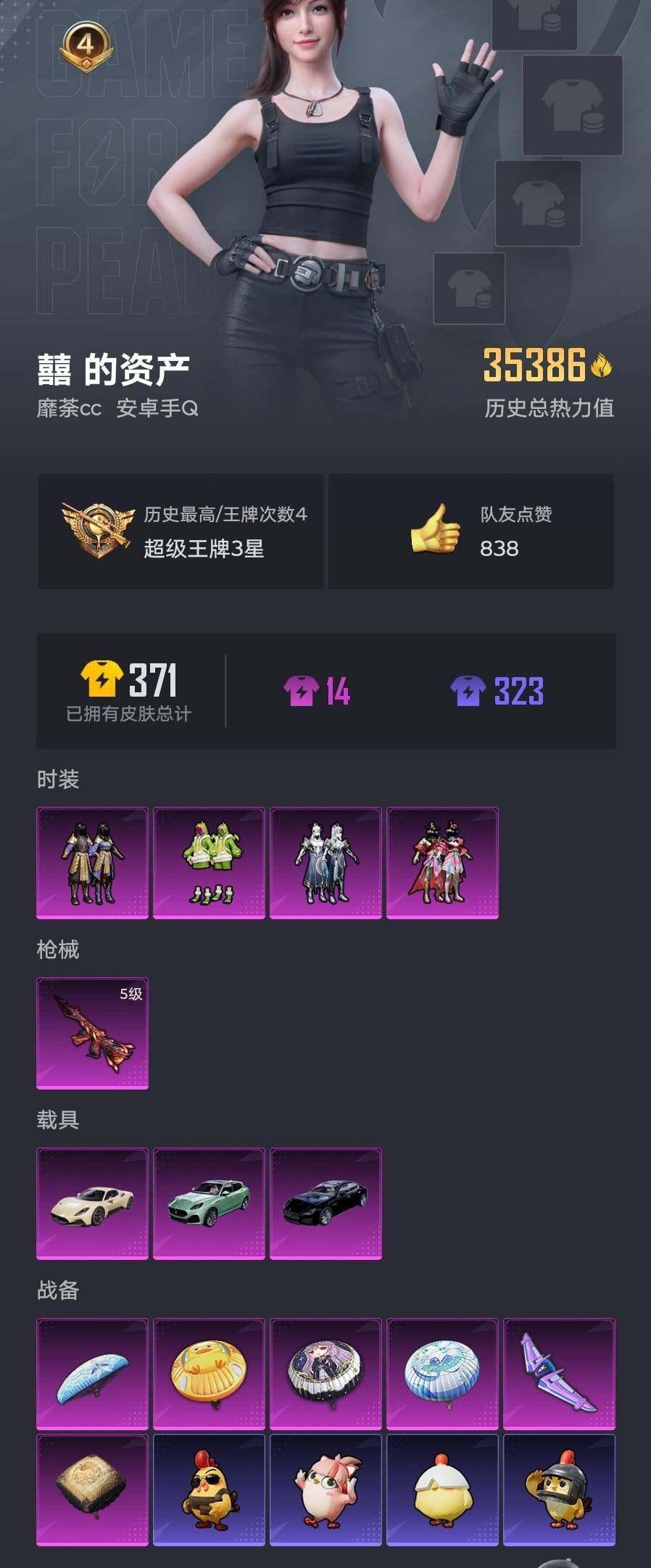 6026-4粉装-1特效呛-3载具-1粉色飞行器-35386热力值-4王牌印记-92套装-91呛皮 【粉色载具】:玛莎拉蒂mc20(星石白),玛莎拉蒂quattropte(夜幕蓝),玛莎拉蒂grecale(薄荷绿) 【粉色套装】:粉装-花影阑珊,粉装-吟月归客,粉装-恐龙拽拽,粉装-朗月武圣 【粉色呛皮等级】:m416-风花雪月五级 【粉色呛皮】:m416-风花雪月 【粉色飞行器】