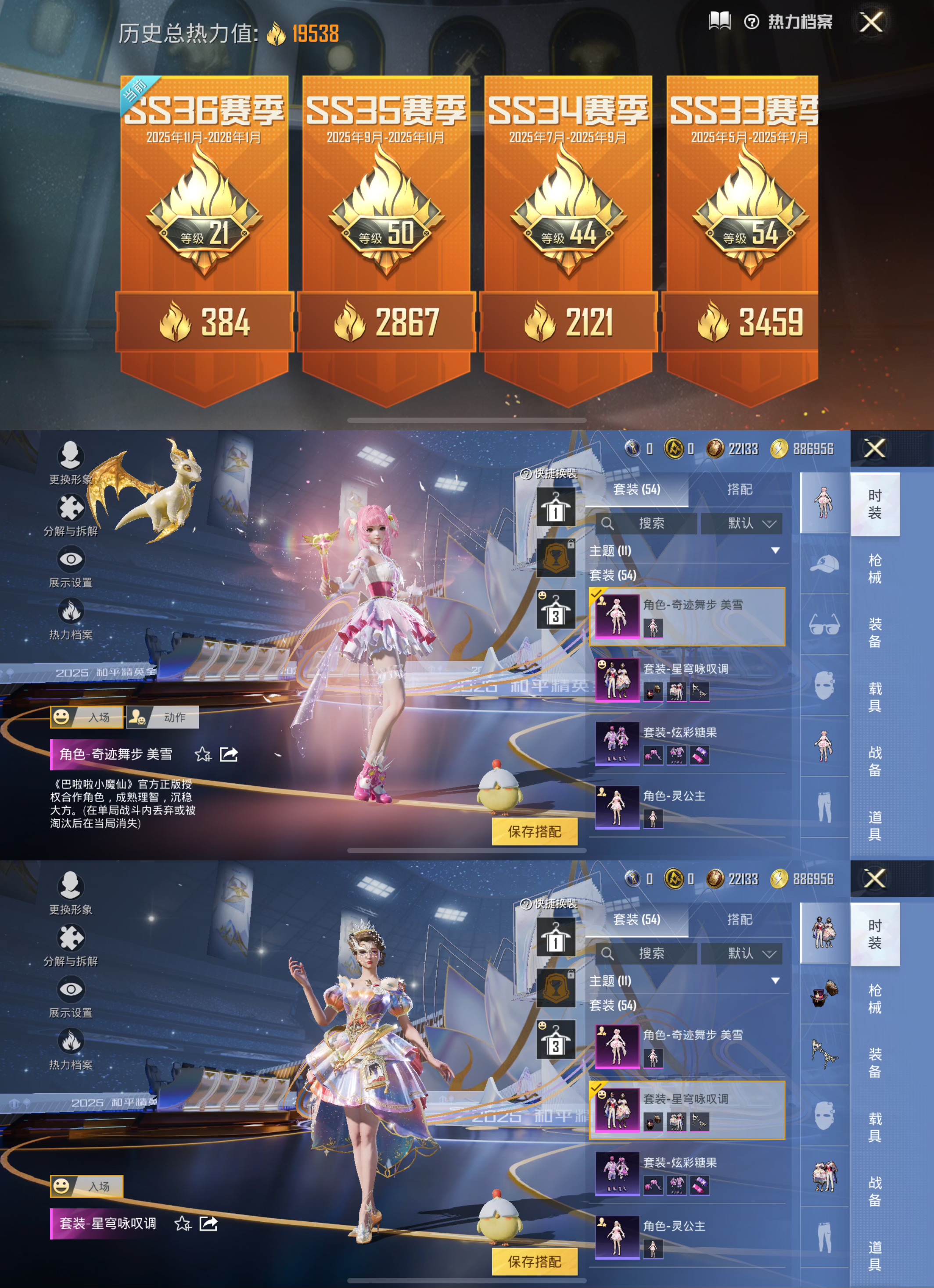 【1僚机2粉装2特效呛红眼罩俗称】苹果q-1稀有2粉装2特效呛2热门54套装74呛皮 19538热力值 4印记 历史卓越王牌12星 【1稀有】 浪漫天命 【2粉装】 奇迹舞步美雪 星穹咏叹调 【2特效呛】 kar98k-巳巳如意 5级 dp-28-豹影疾电 5级 【2热门】 暗影哥特 破蛋小黄鸡 圣域龙宝僚机 炫彩糖果飞行器 僚机-圣域龙宝 星穹咏叹调 角色-奇迹舞
