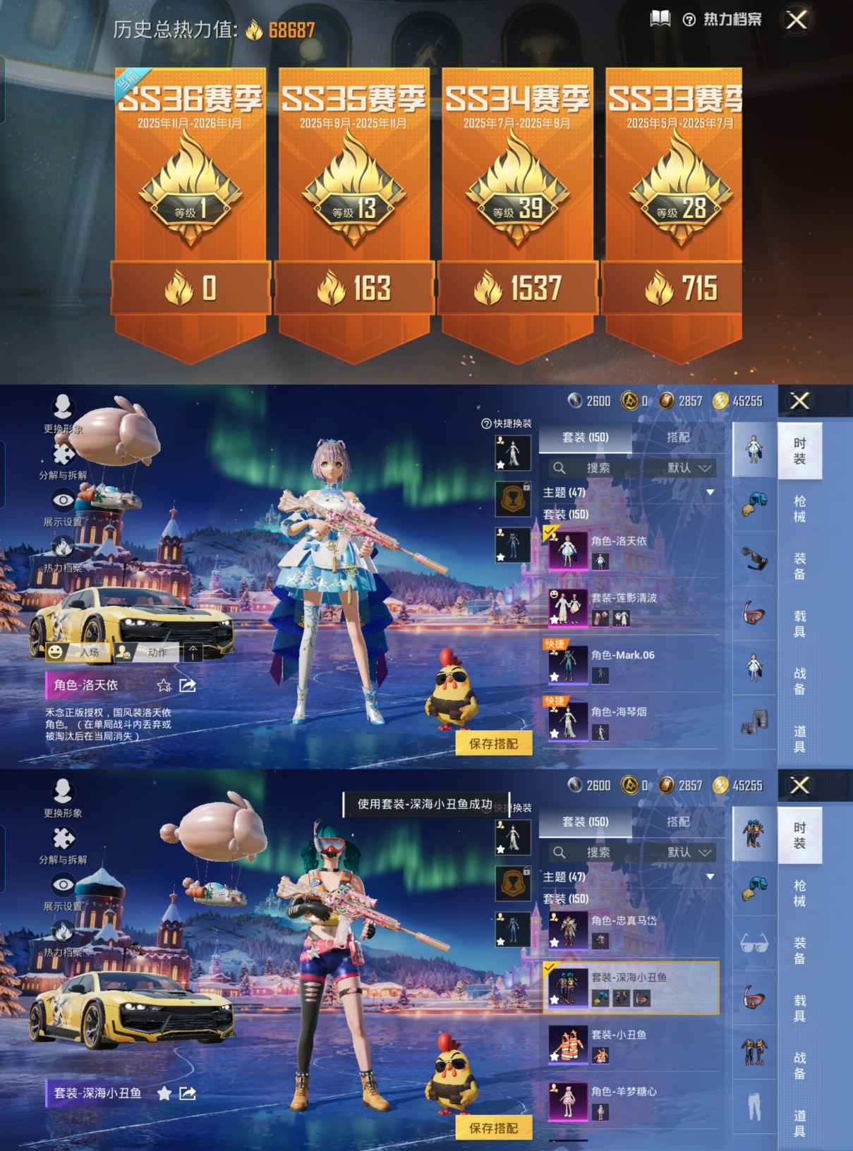 【3载具3粉装3特效】安卓q-1稀有4载具3粉装3特效呛20热门150套装204呛皮 68687热力值 6印记 历史超级王牌8星 【1稀有】 奇异狩猎者 【 3载具】 兰博suv黄色 永恒黄蜂 海龙奔腾 萌兔起飞僚机 【3粉装】 洛天依 羊梦糖心 莲影清波 【3特效呛】 m416-心之恋语 7级 kar98k-巳巳如意 3级 scar-l-青春物语 7级 【20热门
