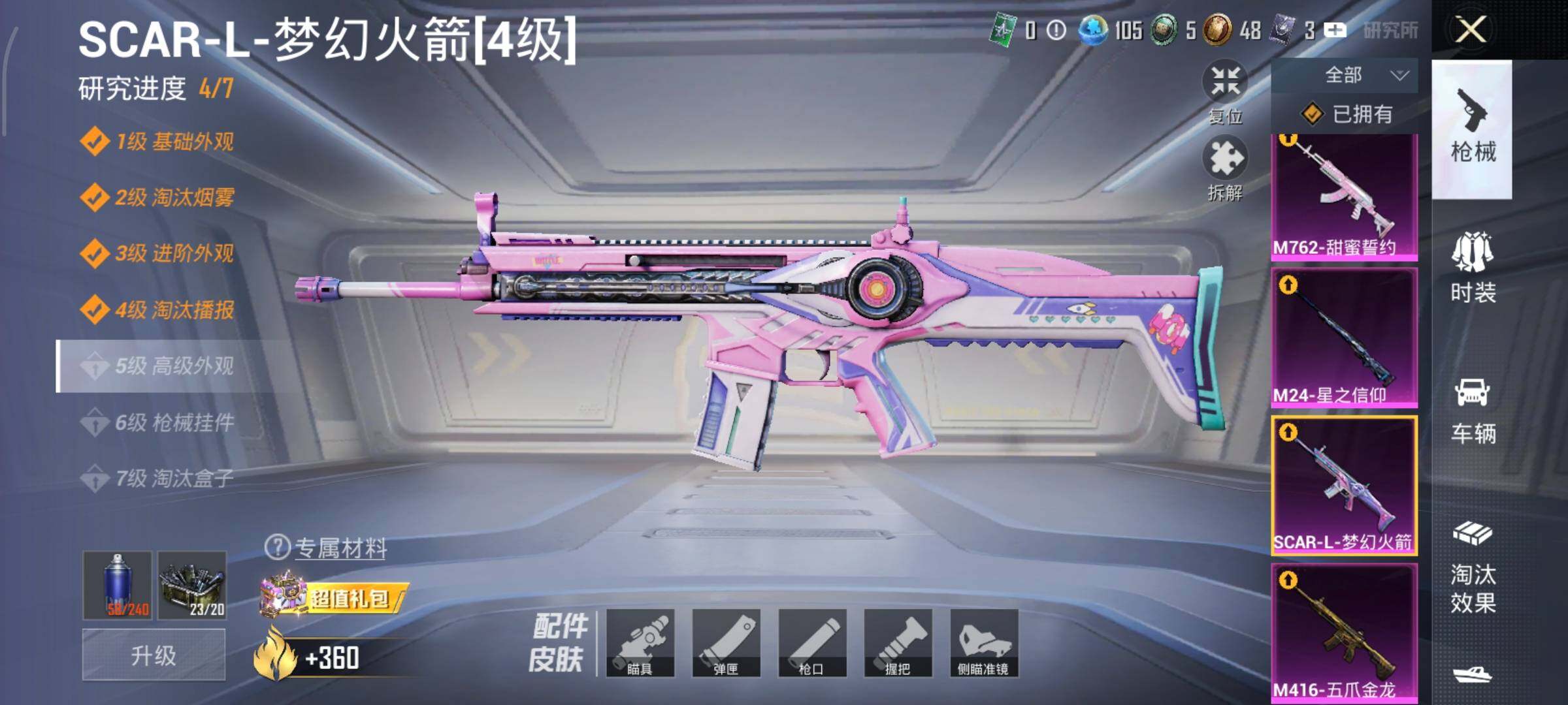 [14258535]安卓 手q-23粉装-15特效呛-5载具-7粉色飞行器-90353热力值-8王牌印记-181套装-215呛皮 【热门品类】:粉装-梦幻火箭,粉装-童趣迷兔,角色-军刀雅典娜,套装-动感兔斯基人偶服,套装-ag战队服,套装-暗影哥特,角色-8号机,角色-mark.06 【粉色载具】:特斯拉roadster(水滴蓝),兰博基尼aventad svj(翡翠绿),路特斯eletre(花绽灰),玛莎拉蒂quattropte(夜幕蓝),双人摩托-梦幻火箭 【粉色套装】:粉装-天使彩虹糖,粉装-精灵迷巫,粉装-梦幻火箭,粉装-星之信仰,粉装-童趣迷兔,粉装-炙焰红王,粉装-蜜桃特工,粉装-蝶舞蔷薇,粉装-葫芦兄弟,粉装-沙场疾风,粉装-花影阑珊,粉装-海盐物语,粉装-荒漠赏金,角色-复仇流浪者,粉装-绒雪飘舞,粉装-傲雪凌霜,粉装-霁雪冰心,粉装-霓裳武神,粉装-暗夜鎏金,粉装-第五大道,角色-白勺歌姬,角色-呆萌星弥,角色-小可学妹 【粉色呛皮等级】:akm-白勺歌姬四级,m16a4-垂柳戏鸭二级,scar-l-梦幻火箭四级,scar-l-青春物语一级,m416-五爪金龙五级,m416-风花雪月三级,m762-甜蜜誓约五级,m762-激战未来一级,蜜獾-异瞳寒姬二级,ump45-相思残雪四级,kar98k-巳巳如意一级,m24-星之信仰五级,awm-花间之火三级,dp-28-圣堂之誓一级,dp-28-豹影疾电五级 【粉色呛皮】:akm-白勺歌姬,m16a4-垂柳戏鸭,scar-l-梦幻火箭,scar-l-青春物语,m416-五爪金龙,m416-风花雪月,m762-甜蜜誓约,m762-激战未来,蜜獾-异瞳寒姬,ump45-相思残雪,kar98k-巳巳如意,m24-星之信仰,awm-花间之火,dp-28-圣堂之誓,dp-28-豹影疾电 【粉色飞行器】:精灵迷巫飞行器,梦幻火箭飞行器,pel轰鸣竞梦者飞行器,绿意幻情飞行器,绒雪飘舞飞行器 【粉色降落伞】:甜心宝贝降落伞,至尊龙雀降落伞,精灵迷巫降落伞,梦幻火箭降落伞,星之信仰降落伞,pel轰鸣竞梦者降落伞,甜蜜誓约降落伞,童趣迷兔降落伞,王牌四分卫降落伞,星之彼岸降落伞,呛炮玫瑰降落伞,葫芦兄弟降落伞,齐天大圣降落伞,流星咚咚降落伞,暗星紫秘降落伞,闪光银龙降落伞