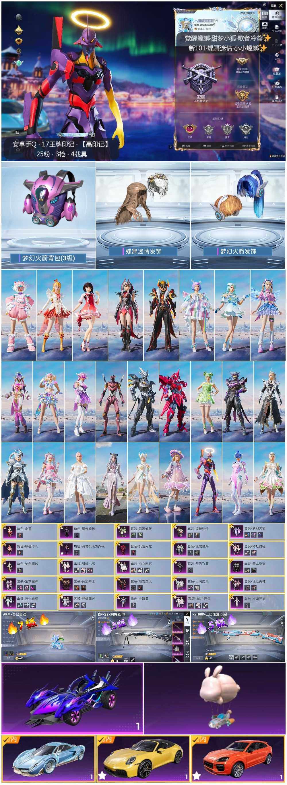 【店主推荐捡漏号!可直接换绑】/素材身法号 安卓 手q-25粉装-3特效呛-5载具-8粉色飞行器-8.5w热力值-17王牌印记-195套装-251呛皮【热门品类】:粉装-梦幻火箭,套装-龟仙人,套装-粉红小猪,角色-8号机【粉色载具】:霜龙神御(云雾蓝),保时捷911 敞篷版(极速黄),保时捷cayenne(激情红),海龙奔腾,僚机-萌兔起飞【粉色套装】:粉装-蝶舞迷情,粉装-梦幻火箭,粉装-炙焰赤龙,粉装-飓风飞鹰,粉装-焰龙焚天,粉装-银龙傲海,粉装-骨龙祭渊,粉装-彩虹鹿灵,粉装-山涧鹿灵,粉装-青葱仙萝,粉装-百合蜜语,粉装-甜梦小狐,粉装-炙焰牛王,粉装-彩虹甜喵,粉装-银红美神,角色-歌者泠鸢,粉装-心之回忆,粉装-室女星神,角色-星云暗核,角色-绝色倾城,角色-小蓝,角色-电磁星,角色-初号机 觉醒ver.,粉装-星月云朵,角色-冷漠罗丽【粉色呛皮等级】:akm-百合蜜语七级,kar98k-巳巳如意五级,dp-28-豹影疾电五级【粉色飞行器】:绮梦青鸾飞行器,歌者泠鸢飞行器,萌物绒绒飞行器,花傲天飞行器,圣域金龙飞行器,终晖之翼飞行器,极意拳锋飞行器