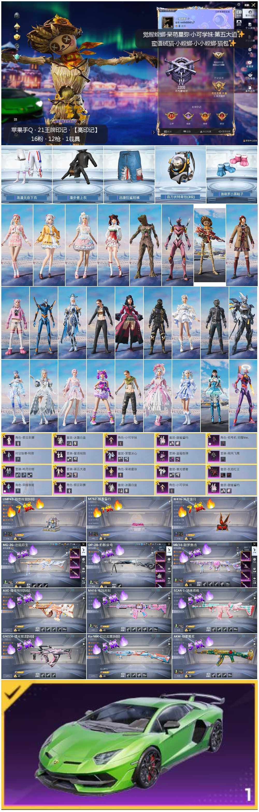 [14258567]可二次【店主推荐捡漏号!可直接换绑】/素材身法号/绝世印记2 苹果 手q-16粉装-12特效呛-1载具-4粉色飞行器-11.4w热力值-21王牌印记-253套装-334呛皮【热门品类】:套装-浪漫天命,套装-金羽特工,套装-六号树人,套装-龟仙人,套装-粉红小猪,角色-8号机,角色-mark.06,角色-六号稻草人【粉色载具】:兰博基尼aventad svj(翡翠绿)【粉色套装】:粉装-甜蜜誓约,粉装-冰霜白皇,粉装-炙焰红王,粉装-飓风飞鹰,粉装-吟月归客,粉装-蓝莓炮弹,粉装-霁雪冰心,粉装-寒光使者,粉装-第五大道,角色-呆萌星弥,角色-小可学妹,粉装-蜜语绒猫,角色-烟云彩露,角色-初号机 觉醒ver.,角色-异瞳寒姬【粉色呛皮等级】:akm-绿萝繁花五级,scar-l-锦绣绵绵五级,m416-风花雪月七级,m416-电玩时刻五级,groza-镜光银凌五级,aug-暖羊咩咩五级,m762-甜蜜誓约七级,ump45-相思残雪七级,kar98k-巳巳如意五级,mk14-甜梦熊击五级,dp-28-豹影疾电五级,mg-36-沧焰双生五级【粉色呛皮】:akm-绿萝繁花,scar-l-锦绣绵绵,m416-风花雪月,m416-电玩时刻,groza-镜光银凌,aug-暖羊咩咩,m762-甜蜜誓约,ump45-相思残雪,kar98k-巳巳如意,mk14-甜梦熊击,dp-28-豹影疾电,mg-36-沧焰双生【粉色飞行器】:心之恋语飞行翼,风花雪月飞行器,英伦信使飞行器