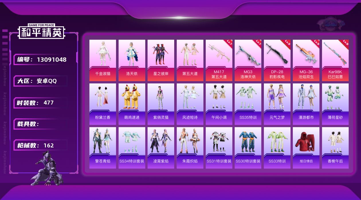 2287707-可二次-安卓q-4粉装5特效呛6热门122套装162呛皮 49332热力值 15印记3卓越1传奇 历史卓越王牌29星 小公主号 千金淑猫 洛天依 第五大道 破蛋小黄鸡 小丑鱼 海盐绵绵冰 黑丝魅猫 【4粉装】 千金淑猫 洛天依 第五大道 星之彼岸 【5特效呛】 kar98k-巳巳如意 5级 mg-36-沧焰双生 5级 dp-28-豹影疾电 5级 m417-第五大道