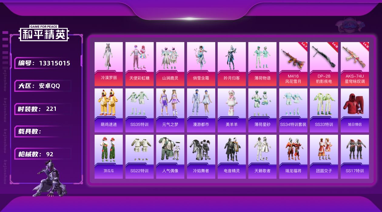 _2287718-可二次-安卓q-6粉装3特效呛4热门55套装92呛皮27829热力值精氪小女号天使彩虹糖薄荷物语山涧鹿灵美羊羊萌鸡速递满级m416风花雪月5级aks74u星穹咏叹调2印记历史超级王牌2星【6粉装】天使彩虹糖冷漠罗丽薄荷物语山涧鹿灵俏雪含霜吟月归客【3特效呛】aks-74u-星穹咏叹调5级dp-28-豹影疾电5级m416-风花雪月7级【4热门】团圆交子瑞龙福将m762-瑞龙福将mk47-林间仙鹿【1飞行器】齐天大圣飞行器【1头盔】甜蜜誓约头盔【1背包】甜心宝贝背包营地id:726219803