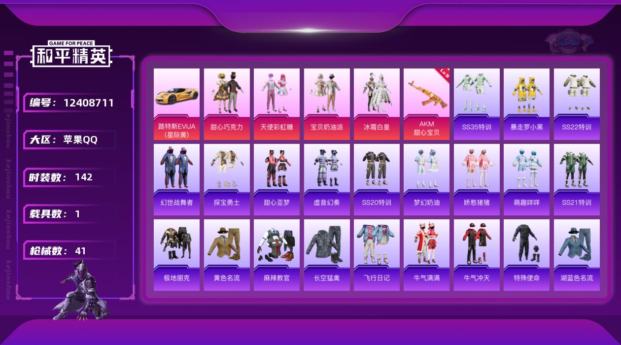 2287783-可二次 苹果q-1载具4粉装1特效呛3热门30套装41呛皮 13174热力值 精氪小号 甜心三姐妹 5级ak甜心宝贝 黄色路特斯 甜心宝贝头盔背包一套 3印记 历史超级王牌9星 【1载具】 路特斯ev黄色 【4粉装】 宝贝奶油派 天使彩虹糖 甜心巧克力 冰霜白皇 【1特效呛】 akm-甜心宝贝 5级 【3热门】 暴走罗小黑 粉红小猪 m762-奇异狩猎者 【1头盔】 甜心