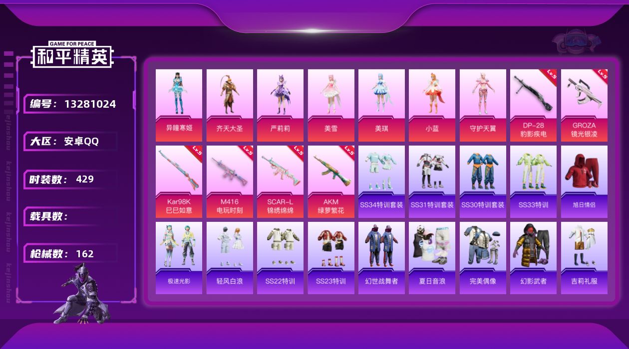 _2287738-可二次安卓q-7粉装6特效呛7热门精品小女号小魔仙四姐妹m4电玩满级scar锦绣绵绵120套装162呛皮46548热力值13印记历史卓越王牌13星【7粉装】严莉莉小蓝美琪美雪异瞳寒姬守护天翼齐天大圣【6特效呛】scar-l-锦绣绵绵5级m416-电玩时刻5级akm-绿萝繁花5级kar98k-巳巳如意5级dp-28-豹影疾电5级groza-镜光银凌5级【7热门】龟仙人团圆交子瑞龙福将粉红小猪破蛋小黄鸡极速红龙m762-瑞龙福将【1飞行器】齐天大圣飞行器营地id:963921830
