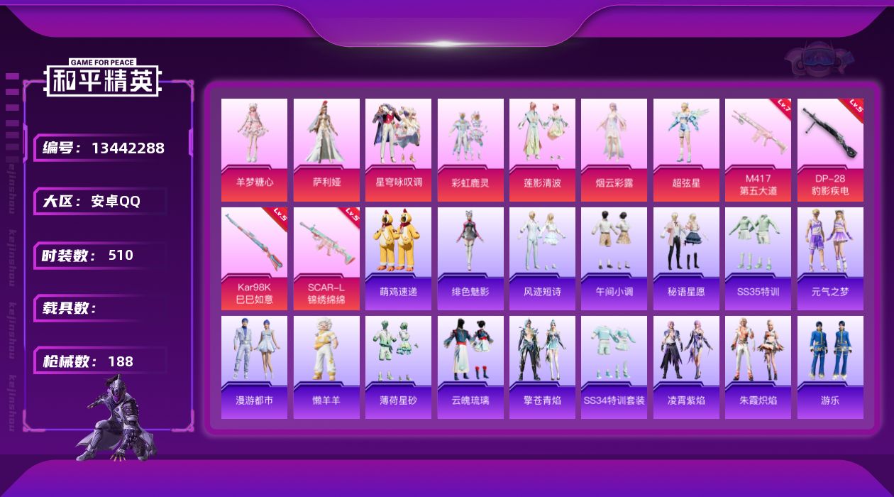 _2287756-可二次安卓q-1稀有7粉装4特效呛6热门140套装188呛皮57363热力值精氪小女号300多天精英特权卡414荣耀勋章1138物资币12877服饰币羊梦糖心烟云彩露莲影清波彩虹鹿灵小黄鸭糯粉咩咩萌萌史莱姆兔兔白日梦懒羊羊彩虹兔云朵鹅雪绒豹满级m417第五大道11印记历史传奇王牌11星【1稀有】浪漫天命【7粉装】萨利娅超弦星烟云彩露星穹咏叹调羊梦糖心莲影清波彩虹鹿灵【4特效呛】scar-l-锦绣绵绵5级kar98k-巳巳如意5级dp-28-豹影疾电5级m417-第五大道7级【6热门】龟仙人浪漫假日潮萌小黄鸭兔兔白日梦粉红小猪破蛋小黄鸡【1飞行器】镜光幻境飞行翼【1背包】夏日绵绵冰背包营地id:907983073