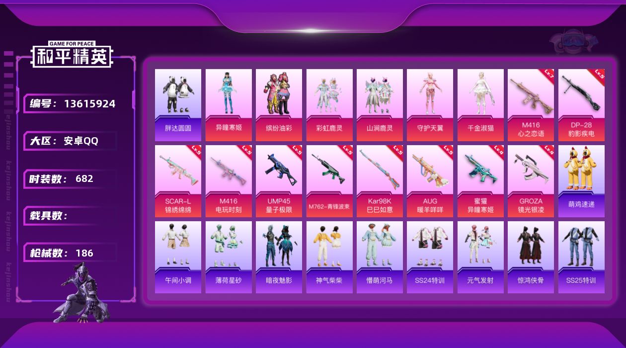 2287821-可二次-安卓q-1稀有6粉装10特效呛10热门177套装186呛皮 62143热力值 精品女号 125扭蛋碎片 68荣耀勋章 猪妹 千金淑猫 彩虹鹿灵 胖达 青涩年华 山涧鹿灵 守护天翼 满级m416心之恋语 满级416电玩时刻 1印记 历史超级王牌1星 【1稀有】 浪漫天命 【6粉装】 千金淑猫 异瞳寒姬 守护天翼 缤纷油彩 山涧鹿灵 彩虹鹿灵 【10特效呛】 scar-l