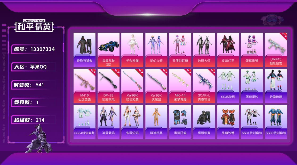 2287837-可二次-苹果q-2稀有1载具6粉装7特效呛20热门146套装214呛皮 68253热力值 16印记4卓越3传奇1绝世 历史绝世王牌15星 极品女号 梦幻火箭 天使彩虹糖 千金淑猫 蕾丝眼罩 蓝莓炮弹 海盐绵绵冰 满级心之恋语 满级相思残雪 鲨鱼裤 破蛋小黄鸡 蓝蹦蹦 蜘蛛侠 天命 【2稀有】 奇异狩猎者 浪漫天命 【1载具】 合金龙骨蓝色 【6粉装】 梦幻火箭 天使彩虹糖