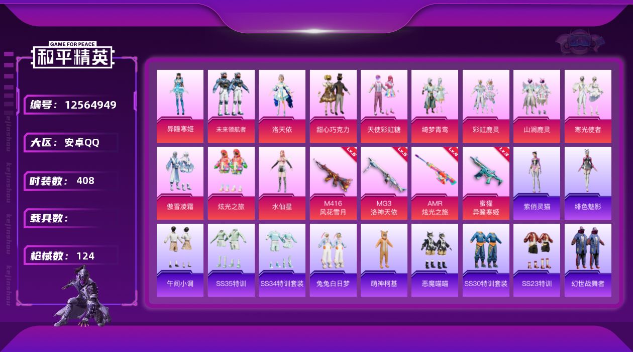_2287872-可二次-安卓q-1稀有12粉装4特效呛13热门107套装124呛皮41738热力值6印记女号巧克力三姐妹洛天依水仙星兔兔白日梦2p战斗服红眼罩天命蓝螳螂历史超级王牌13星【1稀有】浪漫天命【12粉装】水仙星天使彩虹糖甜心巧克力洛天依异瞳寒姬炫光之旅未来领航者傲雪凌霜绮梦青鸾山涧鹿灵彩虹鹿灵寒光使者【4特效呛】蜜獾-异瞳寒姬3级amr-炫光之旅4级m416-风花雪月6级mg3-洛神天依5级【13热门】mark.06龟仙人萌神柯基2p战斗服款兔兔白日梦恶魔喵喵梦起落英暗影哥特纯白誓言mk47-林间仙鹿mini14-林间仙鹿汤姆逊-林间仙鹿groza-林间仙鹿【1飞行器】拂晓神骑飞行器【2头盔】梦幻火箭头盔甜心宝贝头盔【1背包】甜心宝贝背包营地id:712179360