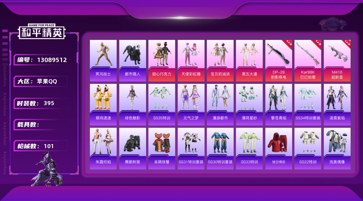 _2287933-可二次苹果q-4稀有4粉装3特效呛4热门94套装101呛皮34311热力值极品精氪号781物资币18644服饰币木乃伊(冥河战士)甜心三姐妹3级m4超新星都市冷酷挑战者天命第五大道国宝头7印记历史绝世王牌19星【4稀有】木乃伊akm-百万伏特都市猎人浪漫天命【4粉装】宝贝奶油派天使彩虹糖甜心巧克力第五大道【3特效呛】m416-超新星3级kar98k-巳巳如意5级dp-28-豹影疾电5级【4热门】龟仙人呆萌铁蟹鹰眼刺客漫步者【1头盔】甜心宝贝头盔【1背包】甜心宝贝背包营地id:753093901