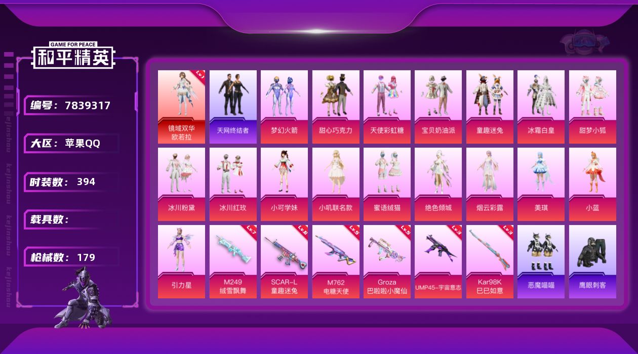 _2287980-二次-苹果q-57943热力值17粉6呛不可转区纯女号手慢无欧若拉1级火箭少女巧克力三姐妹小狐童趣迷兔2冰川天网风铃蓝粉小螳螂银尘白光莹棉花软糖摩登魅猫航行太空星际旅行粉熊包5王牌印记历史传奇王牌11星111套装177呛皮【1神装】镜域双华-欧若拉【1稀有】天网终结者【17粉装】梦幻火箭小蓝美琪绝色倾城引力星蜜语绒猫宝贝奶油派天使彩虹糖甜心巧克力烟云彩露小叽联名款小可学妹童趣迷兔冰霜白皇甜梦小狐冰川粉黛冰川红玫【6特效呛】ump45-宇宙意志3级kar98k-巳巳如意2级m762-电糖天使5级groza-巴啦啦小魔仙4级scar-l-童趣迷兔6级m249-绒雪飘舞7级【3飞行器】镜域双华-灵境之阶龙翔九天飞行器梦幻火箭飞行器【7热门】8号机mark.06鹰眼刺客恶魔喵喵暗影哥特团圆交子破蛋小黄鸡【2头盔】梦幻火箭头盔甜心宝贝头盔【3背包】梦幻火箭背包甜心宝贝背包萌熊伴侣背包营地id:951370038