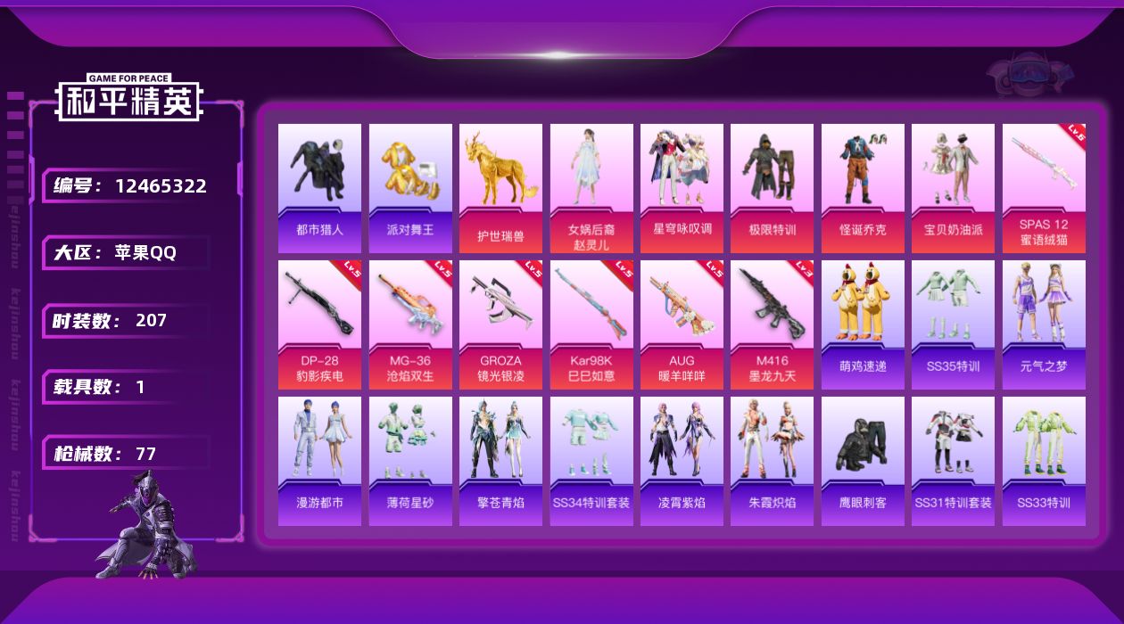 _2288018-可二次-苹果q-3稀有1载具5粉装7特效呛5热门49套装77呛皮26756热力值极品身法精氪号164荣耀勋章508物资币怪诞(小丑)女娲后裔-赵灵儿奶油派都市金鞋权威小番茄3级m4墨龙九天国宝头麒麟马甜心宝贝头盔背包一套3印记历史卓越王牌17星【3稀有】都市猎人派对舞王派对舞王(金靴子)【1载具】护世瑞兽【5粉装】赵灵儿宝贝奶油派星穹咏叹调怪诞乔克极限特训【7特效呛】m416-墨龙九天3级kar98k-巳巳如意5级spas-12-蜜语绒猫6级mg-36-沧焰双生5级dp-28-豹影疾电5级aug-暖羊咩咩5级groza-镜光银凌5级【5热门】红熊茄茄青涩年华鹰眼刺客水银刺客破蛋小黄鸡【1头盔】甜心宝贝头盔【1背包】甜心宝贝背包营地id:986370480