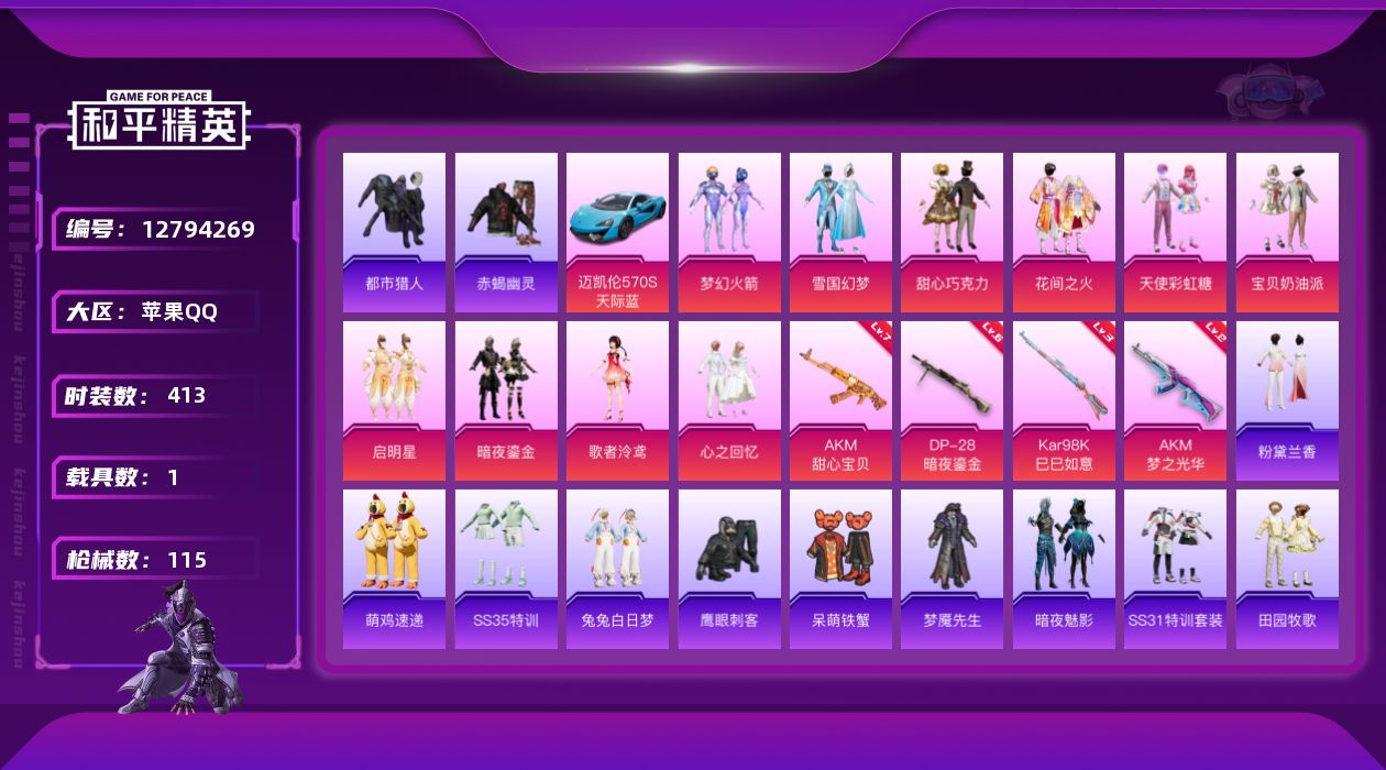 _2288023-可二次-苹果q-3稀有1载具10粉装4特效呛12热门100套装115呛皮40400热力值极品精氪身法号雪国幻梦梦幻火箭甜心三姐妹和服都市赤蝎天命红眼罩st战队服小丑鱼兔兔白日梦粉熊包猫包满级ak甜心宝贝百万伏特头盔背包一套5印记历史超级王牌11星【3稀有】赤蝎幽灵都市猎人浪漫天命【1载具】迈凯伦570s天际蓝【10粉装】梦幻火箭雪国幻梦宝贝奶油派天使彩虹糖甜心巧克力歌者泠鸢启明星心之回忆花间之火暗夜鎏金【4特效呛】akm-甜心宝贝7级kar98k-巳巳如意3级akm-梦之光华2级dp-28-暗夜鎏金6级【12热门】小丑鱼梦魇先生呆萌铁蟹鹰眼刺客兔兔白日梦st战队服暗影哥特团圆交子瑞龙福将狂沙舞者m762-瑞龙福将kar98k-深海曼妙【2飞行器】童趣迷兔飞行器歌者泠鸢飞行器【3头盔】雪国精灵头盔甜心宝贝头盔百万伏特头盔【7背包】梦幻火箭背包雪国精灵背包甜心宝贝背包百万伏特背包萌熊伴侣背包深海曼妙背包花间之火背包营地id:774192306