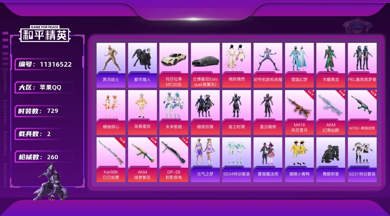 _2288031-可二次苹果q-84594热力值12王牌印记历史超级王牌13星雪国初号机老木乃伊都市小黄鸭雪国头粉熊包满级m4风花雪月195套装260呛皮【2载具】玛莎拉蒂m白色兰博轿车灰色【2稀有】木乃伊都市猎人【11粉装】紫螳螂雪国幻梦桃粉嫣然未来歌姬木曜青龙呆萌星弥宙之时溯星云暗核pel轰鸣竞梦者橘柚倾心暗夜玫瑰【6特效呛】akm-绿萝繁花5级kar98k-巳巳如意5级akm-幻海仙踪6级m762-青锋波束5级dp-28-豹影疾电3级m416-风花雪月7级【1飞行器】春暖花开飞行器【21热门】龟仙人雪山精英潮萌小黄鸭鹰眼刺客蔷薇魔法师暗夜契约团圆交子瑞龙福将漫步者冰爽海盐玄武圣者破蛋小黄鸡风华少年志黑色刀锋极速红龙赛博空间弄潮海豚m416-魔法学院m762-瑞龙福将s686-奇异狩猎者kar98k-古堡领主【4头盔】梦幻火箭头盔雪国精灵头盔木曜青龙头盔甜心宝贝头盔【8背包】九霄背包梦幻火箭背包雪国精灵背包百万伏特背包幻影战神背包萌熊伴侣背包深海曼妙背包古堡领主背包营地id:793156429