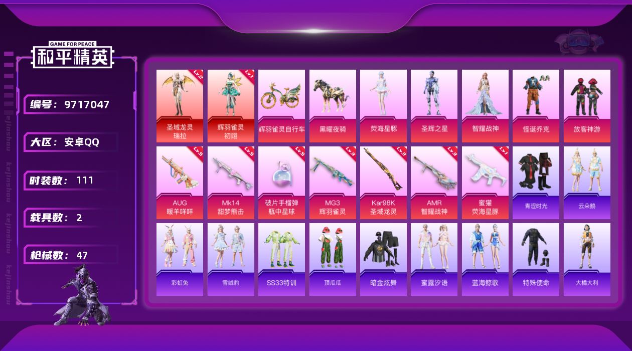 _2288079-二次安卓q-19427热力值极品七位数靓号到27年【最新款载具马黑耀夜骑龙宝僚机瑞拉2级初翊小丑[怪诞]发光眼罩六号稻草人2红装2载1僚机5粉7呛】1王牌印记历史绝世王牌11星29套装47呛皮【3载具】黑耀夜骑辉羽雀灵自行车圣域龙宝僚机【2神装】辉羽雀灵-初翊1级圣域龙灵-瑞拉2级【5粉装】荧海星豚怪诞乔克圣辉之星智耀战神放客神游【7特效呛】kar98k-圣域龙灵3级mg3-辉羽雀灵3级aug-暖羊咩咩5级蜜獾-荧海星豚1级mk14-甜梦熊击5级amr-智耀战神3级破片手留单-瓶中星球5级【1热门】六号稻草人营地id:983169724
