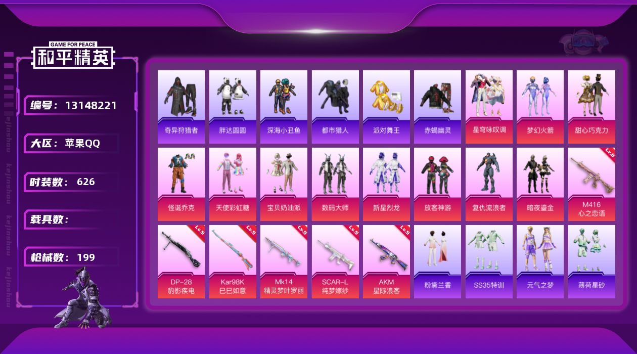_2288135-可二次-苹果q-8稀有11粉装6特效呛21热门158套装199呛皮67791热力值极品身法素材号双字id:当倦怪诞(小丑)梦幻火箭甜心三姐妹小白龙都市赤蝎金鞋黑色rock长袖t恤浅蓝色牛仔衬衣led发光眼罩红眼罩天命狂沙蜘蛛侠鲨鱼服小丑鱼东方飞龙胖达小黄鸭国宝头粉熊包猫包6级m4心之恋语5级ak星际浪客百万伏特头盔背包一套8印记历史超级王牌8星【8稀有】奇异狩猎者赤蝎幽灵akm-缤纷海域akm-百万伏特都市猎人浪漫天命派对舞王派对舞王(金靴子)【11粉装】梦幻火箭宝贝奶油派天使彩虹糖甜心巧克力星穹咏叹调怪诞乔克放客神游数码大师新星烈龙暗夜鎏金复仇流浪者【6特效呛】scar-l-纯梦嫁纱5级m416-心之恋语6级kar98k-巳巳如意5级dp-28-豹影疾电5级mk14-精灵梦叶罗丽5级akm-星际浪客5级【21热门】小丑鱼雪山精英东方飞龙潮萌小黄鸭呆萌铁蟹鹰眼刺客迅捷狂鲨深海小丑鱼胖达圆圆滑板小狐暗影哥特团圆交子瑞龙福将粉红小猪狂沙舞者漫步者极速红龙弄潮海豚m416-仓鼠灰灰m762-奇异狩猎者m762-瑞龙福将【2飞行器】龙翔九天飞行器齐天大圣飞行器【3头盔】甜心宝贝头盔百万伏特头盔深海小丑鱼头盔【3背包】甜心宝贝背包百万伏特背包萌熊伴侣背包营地id:729227309