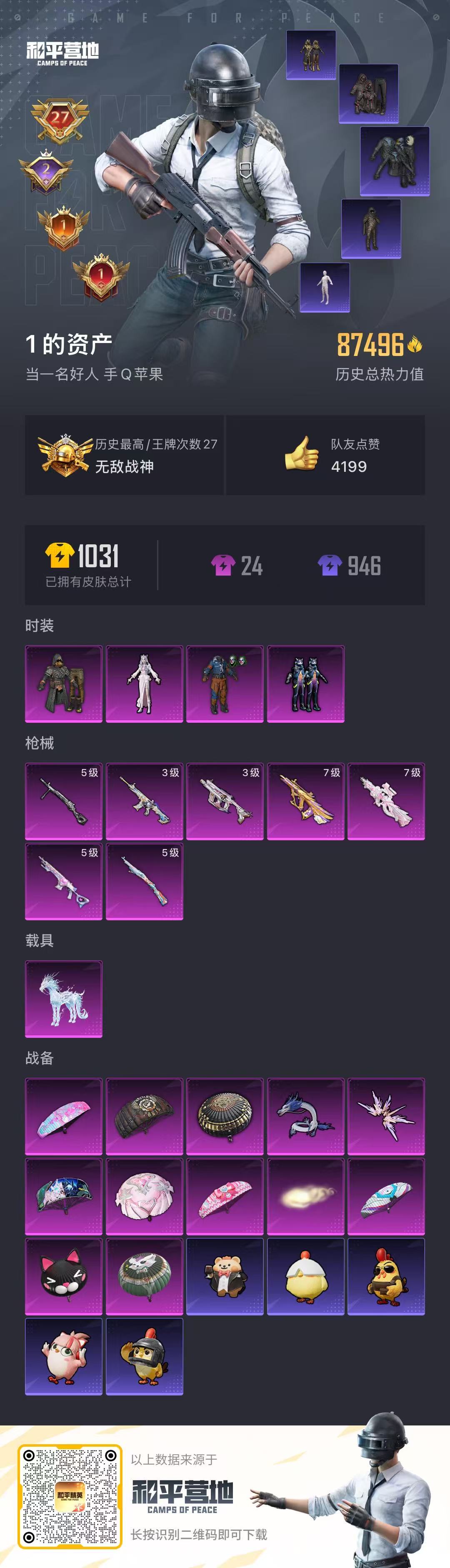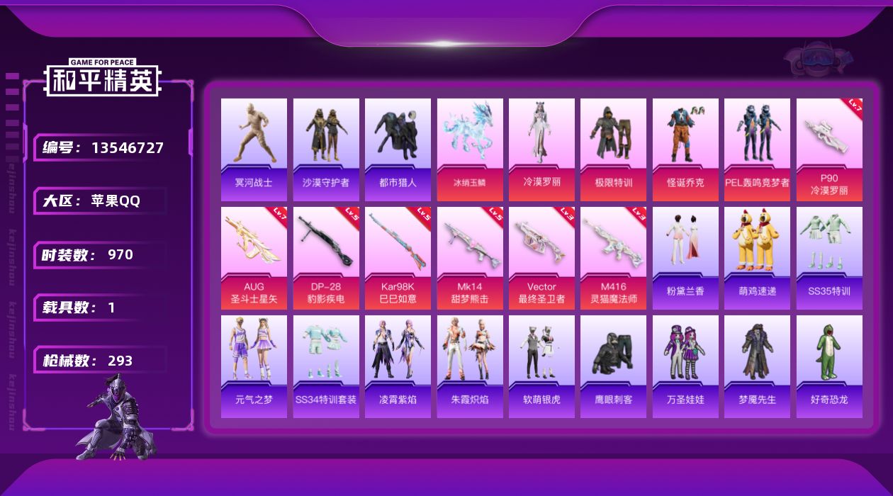 _2288147-可二次苹果q-【极品精氪身法号地铁歼灭对掏两开花双无敌战神框[ss5ss9]高印记27m4星际满级aug圣斗士冰龙马小丑[怪诞]木乃伊都市暗夜之虎黑丝[沙漠守护者]冷酷挑战者极限特训tt战队服老六服菠萝头灰熊包2款计数呛m4灵猫维克托最终圣卫者有改名卡】3稀有1载具4粉装7特效呛28热门236套装293呛皮87496热力值27印记历史无敌战神【3稀有】木乃伊m416-星际漫游都市猎人【1载具】冰绡玉鳞【4粉装】怪诞乔克冷漠罗丽pel轰鸣竞梦者极限特训【7特效呛】m416-灵猫魔法师3级p90-冷漠罗丽7级kar98k-巳巳如意5级vect-最终圣卫者3级dp-28-豹影疾电5级aug-圣斗士星矢7级mk14-甜梦熊击5级【28热门】暗夜之虎雪山精英梦魇先生万圣娃娃鹰眼刺客好奇恐龙软萌银虎沙漠守护者暗夜之虎tt战队服团圆交子瑞龙福将粉红小猪水银刺客狂沙舞者漫步者蓝甜马卡龙机械英豪破蛋小黄鸡风华少年志白月香洋装黑色刀锋极速红龙m416-仓鼠灰灰akm-奇异狩猎者m762-瑞龙福将m24-奇异狩猎者m249-古堡领主【1飞行器】齐天大圣飞行器【1头盔】金曜白虎头盔【3背包】幻影战神背包深海小丑鱼背包神秘黑猫背包营地id:702940014