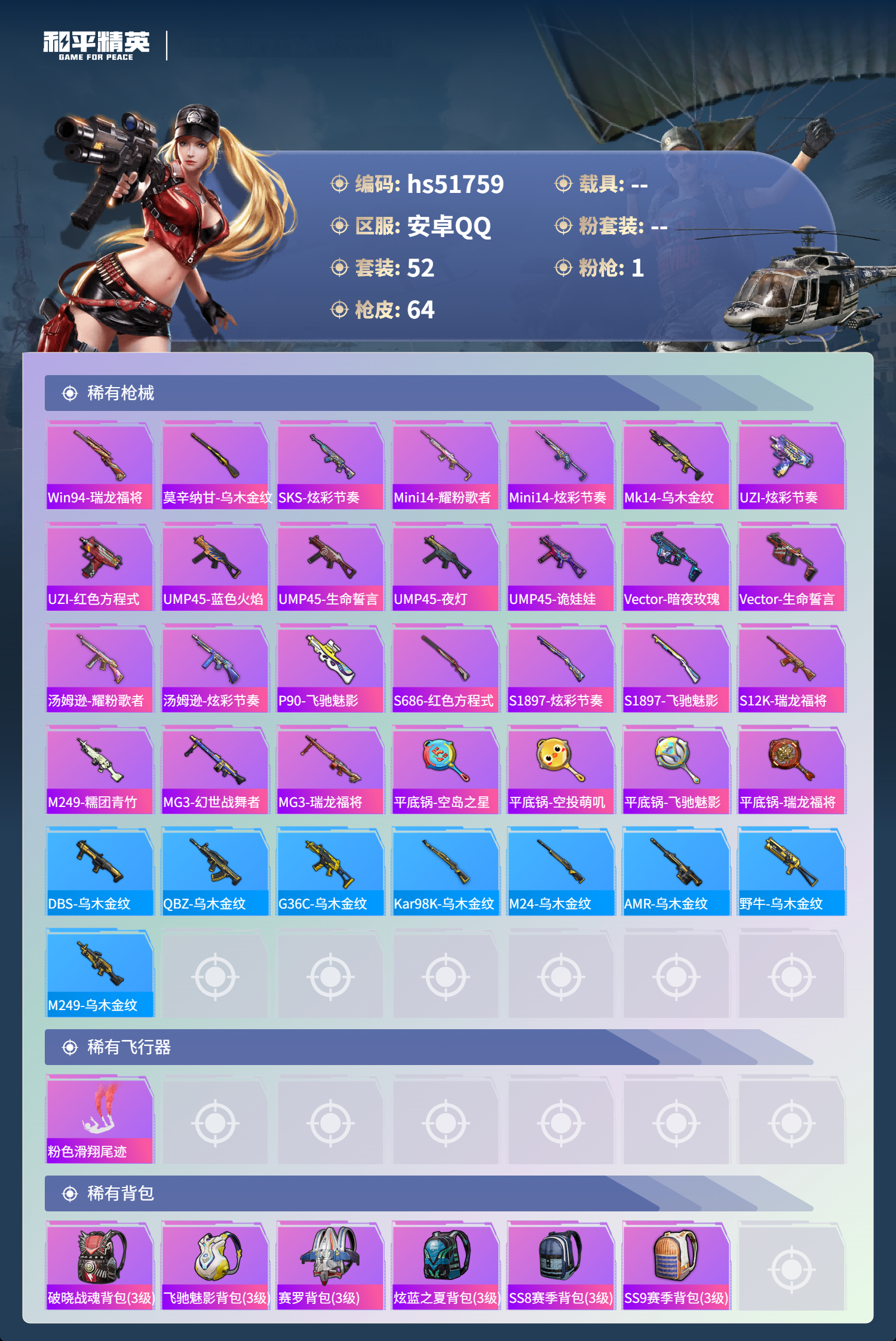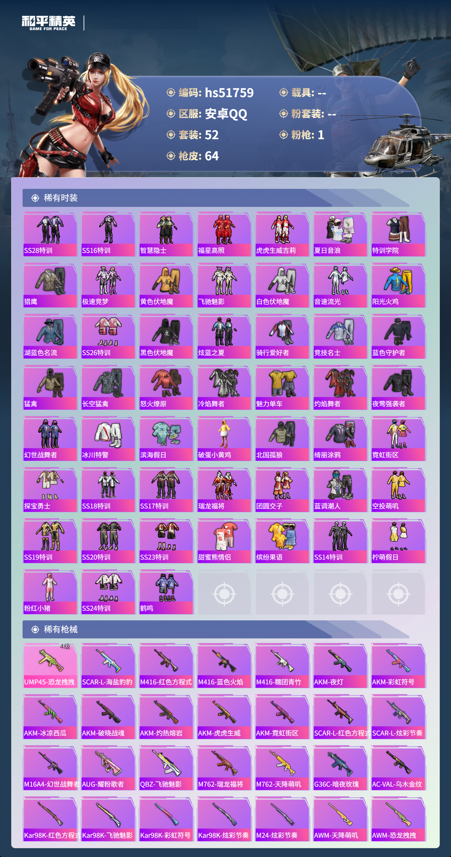 hs51759 安卓手q-3王牌印记-1特效呛-18416热力值-52套装-64呛皮【1特效呛】ump45-恐龙拽拽/4级【52稀有时装】ss28特训ss16特训智慧隐士福星高照虎虎生威吉莉夏日音浪特训学院猎鹰极速竞梦黄色伏地魔飞驰魅影白色伏地魔音速流光阳光火鸡湖蓝色名流ss26特训黑色伏地魔炫蓝之夏骑行爱好者竞技名士蓝色守护者猛禽长空猛禽怒火燎
