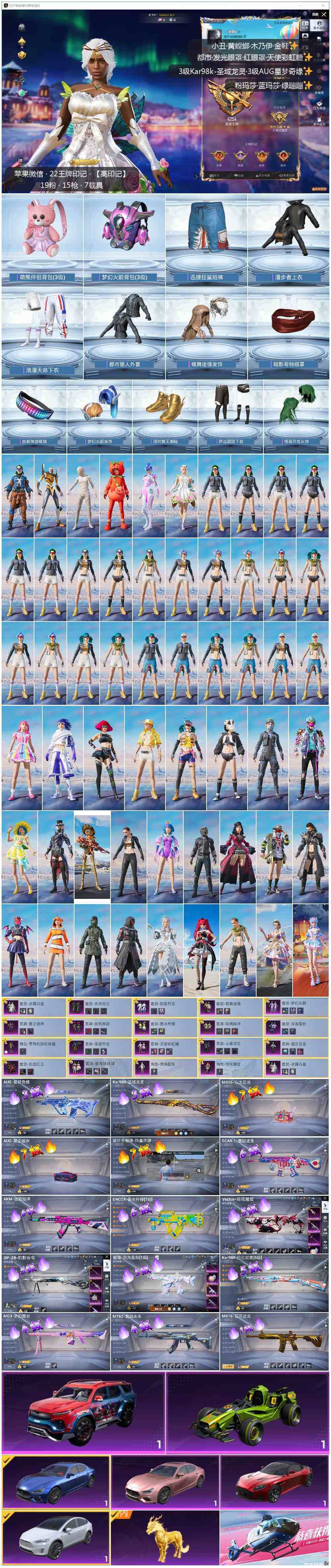 可二次【店主推荐捡漏号!可直接换绑】地铁满天赋/苹果 微信-19粉装-15特效呛-8载具-8粉色飞行器-127205热力值-22王牌印记-266套装-338呛皮【热门品类】:粉装-怪诞乔克,粉装-梦幻火箭,套装-浪漫天命,套装-都市猎人,套装-冥河战士,套装-派对舞王,套装-深海小丑鱼,套装-小丑鱼,套装-奇异狩猎者,套装-胖达团团,旭日初心兜帽大衣,套装-龟仙人,套装-暗影哥特,角色-六号稻草人,套装-红熊茄茄【粉色载具】:特斯拉model x(珍珠白),阿斯顿马丁dbs(红),玛莎拉蒂ghibli(粉),玛莎拉蒂ghibli(蓝),擎天重拳,合金龙骨(绿),空客h135-蔚蓝之翼,护世瑞兽【粉色套装】:粉装-深海曼妙,粉装-未来战士,粉装-怪诞乔克,粉装-天使彩虹糖,粉装-蝶舞迷情,粉装-梦幻火箭,粉装-放客神游,粉装-古堡领主,粉装-彗云及圣,粉装-琉璃脉冲,粉装-新星烈龙,粉装-冰霜白皇,粉装-炙焰红王,粉装-香水柠檬,粉装-星之彼岸,角色-零号机款机体服,粉装-星穹咏叹调,角色-荧海星豚,角色-绯穹魔姬【粉色呛皮等级】:akm-炫紫旋律六级,scar-l-童趣迷兔六级,m416-五爪金龙一级,m416-心之恋语七级,groza-香水柠檬六级,aug-星之彼岸七级,aug-星梦奇缘三级,m762-激战未来四级,蜜獾-荧海星豚五级,vect-绯穹魔姬五级,kar98k-巳巳如意五级,kar98k-圣域龙灵三级,dp-28-豹影疾电五级,mg3-梦幻舞会四级,破片手留单-热量炸弹七级【粉色呛皮】:akm-炫紫旋律,scar-l-童趣迷兔,m416-五爪金龙,m416-心之恋语,groza-香水柠檬,aug-星之彼岸,aug-星梦奇缘,m762-激战未来,蜜獾-荧海星豚,vect-绯穹魔姬,kar98k-巳巳如意,kar98k-圣域龙灵,dp-28-豹影疾电,mg3-梦幻舞会,破片手留单-热量炸弹【粉色飞行器】:春暖花开飞行器,梦幻火箭飞行器,炫紫旋律飞行器,古堡领主飞行器,绮梦青鸾飞行器,星之彼岸飞行器,万象金身飞行器