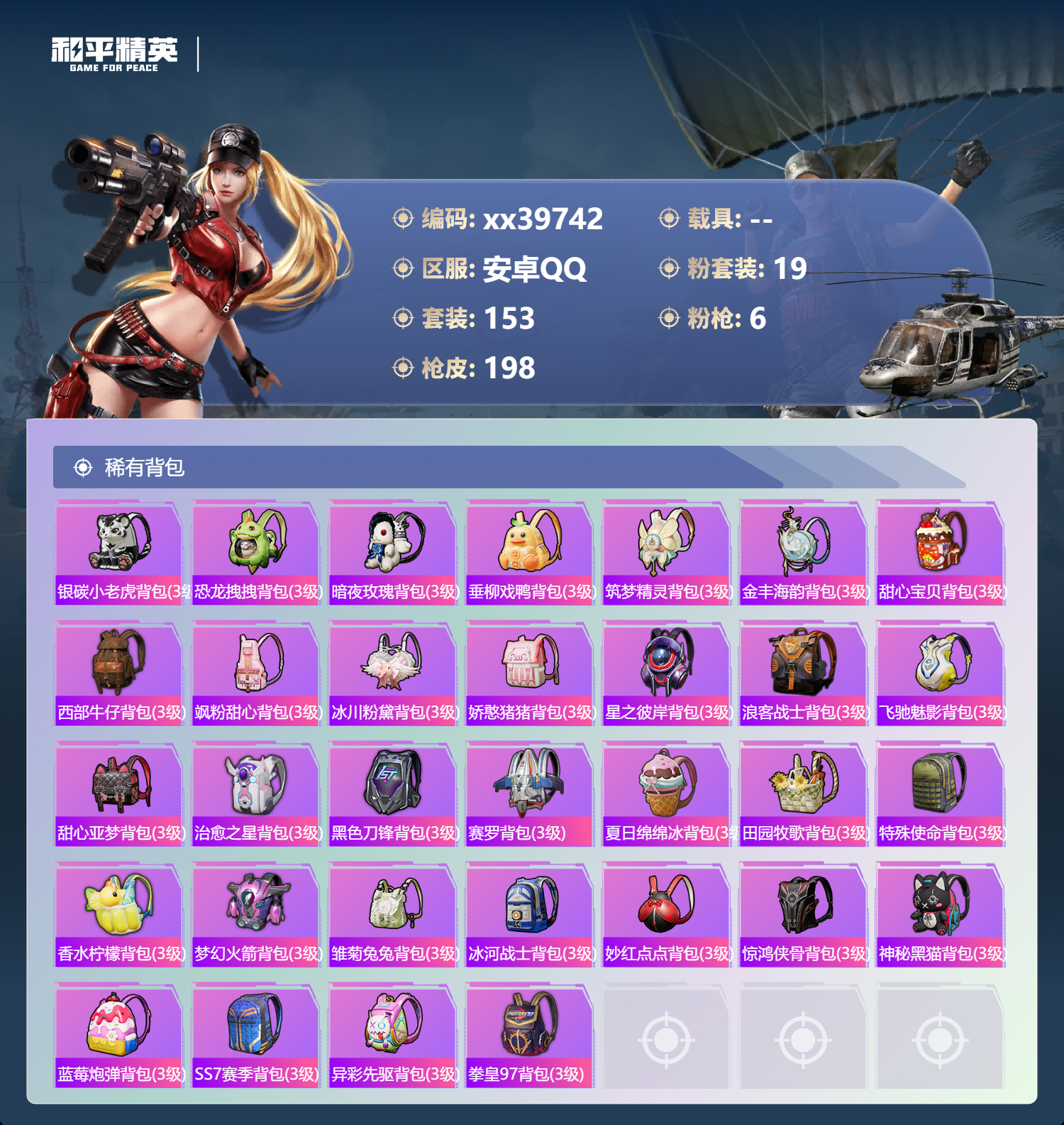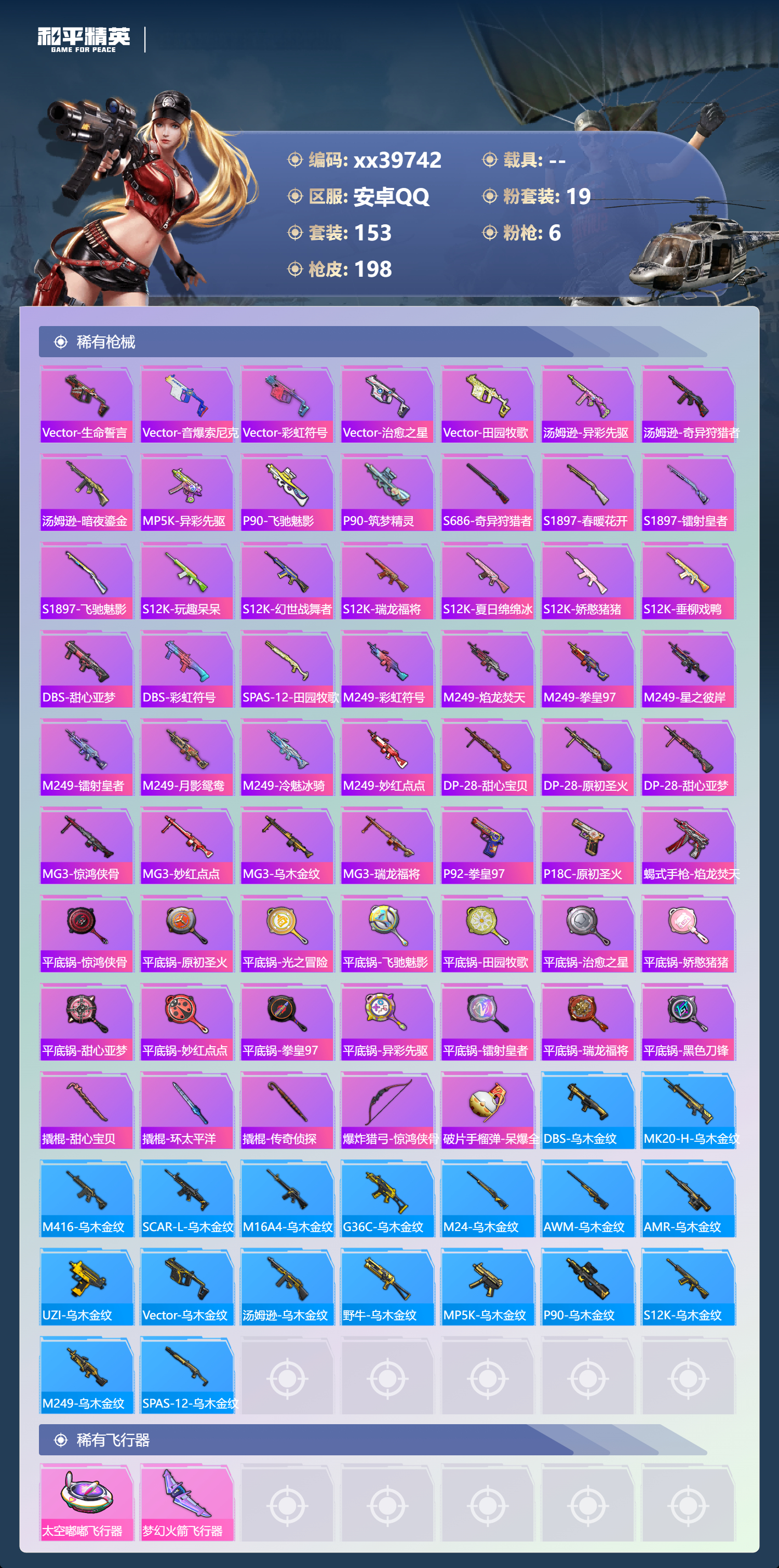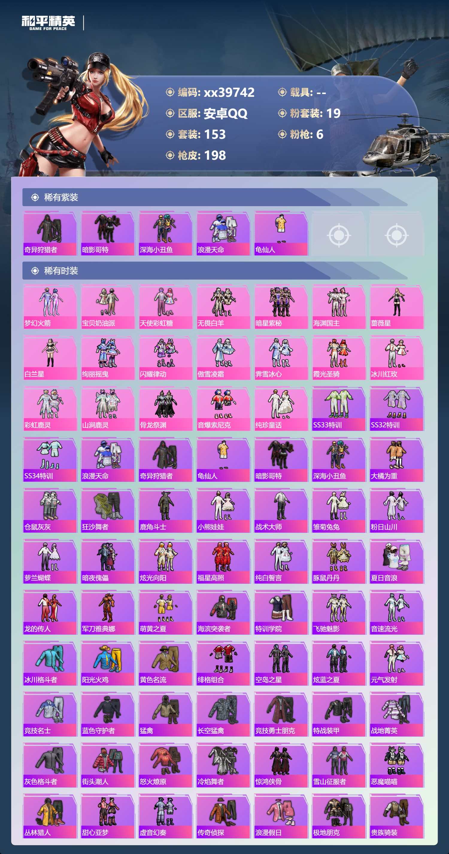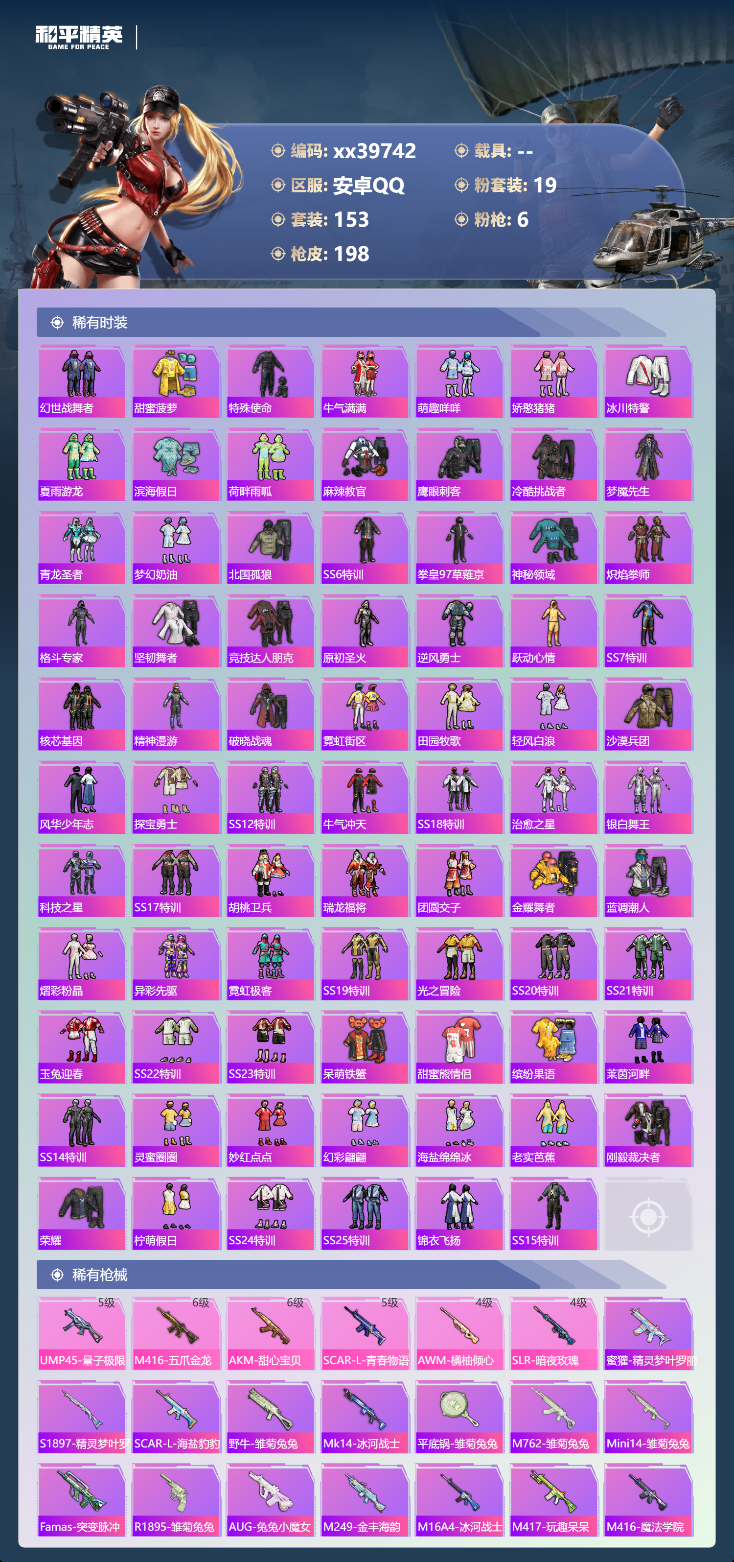 _2277392-可二次安卓手q-2王牌印记-19粉装-6特效呛-68170热力值-153套装-198呛皮 【19粉装】套装-霁雪冰心套装-暗星紫秘角色-蔷薇星套装-骨龙祭渊套装-天使彩虹糖套装-绚丽摇曳套装-宝贝奶油派套装-梦幻火箭角色-白兰星套装-山涧鹿灵套装-音爆索尼克套装-彩虹鹿灵套装-海渊国主套装-傲雪凌霜套装-纯珍童话套装-闪耀律动套装-无畏白羊套装-霞光圣骑套装-冰川红玫 【6特效呛】akm-甜心宝贝/6级ump45-量子极限/5级m416-五爪金龙/6级awm-橘柚倾心/4级slr-暗夜玫瑰/4级scar-l-青春物语/5级 【5稀有紫装】奇异狩猎者暗影哥特深海小丑鱼浪漫天命龟仙人 【153稀有时装】梦幻火箭宝贝奶油派天使彩虹糖ss33特训ss32特训ss34特训浪漫天命奇异狩猎者龟仙人暗影哥特深海小丑鱼无畏白羊暗星紫秘海渊国主蔷薇星白兰星绚丽摇曳闪耀律动傲雪凌霜霁雪冰心霞光圣骑冰川红玫彩虹鹿灵山涧鹿灵骨龙祭渊音爆索尼克纯珍童话大橘为重仓鼠灰灰狂沙舞者鹿角斗士小熊娃娃战术大师雏菊兔兔粉日山川萝兰蝴蝶暗夜傀儡炫光向阳福星高照纯白誓言豚鼠丹丹夏日音浪龙的传人军刀雅典娜萌黄之夏海滨突袭者特训学院飞驰魅影音速流光冰川格斗者阳光火鸡黄色名流绯格组合空岛之星炫蓝之夏元气发射竞技名士蓝色守护者猛禽长空猛禽竞技勇士朋克特战装甲战地菁英灰色格斗者街头潮人怒火燎原冷焰舞者惊鸿侠骨雪山征服者恶魔喵喵丛林猎人甜心亚梦虚音幻奏传奇侦探浪漫假日极地朋克贵族骑装幻世战舞者甜蜜菠萝特殊使命牛气满满萌趣咩咩娇憨猪猪冰川特警夏雨游龙滨海假日荷畔雨呱麻辣教官鹰眼刺客冷酷挑战者梦魇先生青龙圣者梦幻奶油北国孤狼ss6特训拳皇97草薙京神秘领域炽焰拳师格斗专家坚韧舞者竞技达人朋克原初圣火逆风勇士跃动心情ss7特训核芯基因精神漫游破晓战魂霓虹街区田园牧歌轻风白浪沙漠兵团风华少年志探宝勇士ss12特训牛气冲天ss18特训治愈之星银白舞王科技之星ss17特训胡桃卫兵瑞龙福将团圆交子金耀舞者蓝调潮人熠彩粉晶异彩先驱霓虹极客ss19特训光之冒险ss20特训ss21特训玉兔迎春ss22特训ss23特训呆萌铁蟹甜蜜熊情侣缤纷果语莱茵河畔ss14特训灵蜜圈圈妙红点点幻彩翩翩海盐绵绵冰老实芭蕉刚毅裁决者荣耀柠萌假日ss24特训ss25特训锦衣飞扬ss15特训 【198稀有呛械】ump45-量子极限/5级dbs-乌木金纹蜜獾-精灵梦叶罗丽s1897-精灵梦叶罗丽scar-l-海盐豹豹野牛-雏菊兔兔mk14-冰河战士平底锅-雏菊兔兔m762-雏菊兔兔mini14-雏菊兔兔famas-突变脉冲r1895-雏菊兔兔aug-兔兔小魔女m249-金丰海韵m16a4-冰河战士mk20-h-乌木金纹m416-五爪金龙/6级akm-甜心宝贝/6级scar-l-青春物语/5级awm-橘柚倾心/4级slr-暗夜玫瑰/4级m417-玩趣呆呆m416-魔法学院m416-红色方程式m416-乌木金纹m416-蓝色火焰m416-糯团青竹m416-绿野极光akm-胡桃卫兵akm-影袭akm-星兔领航员akm-夜灯akm-奇异狩猎者akm-缤纷海域akm-冰凉西瓜akm-破晓战魂akm-龙的传人akm-恐龙拽拽akm-霓虹街区scar-l-玉兔迎春scar-l-乌木金纹scar-l-暗夜玫瑰scar-l-甜蜜誓约scar-l-银碳小老虎scar-l-夏日绵绵冰m16a4-幻世战舞者m16a4-凝视深渊m16a4-甜心亚梦m16a4-乌木金纹m16a4-生命誓言groza-黑色刀锋groza-异彩先驱groza-恐龙拽拽groza-田园牧歌groza-治愈之星aug-耀粉歌者aug-幻梦音符aug-2p战斗服款q-飞驰魅影q-原初圣火q-银碳小老虎m762-瑞龙福将m762-镭射皇者m762-拳皇97m762-诡娃娃m762-牛气冲天m762-甜心宝贝m762-奇异狩猎者m762-天降萌叽mk47-乌木金纹mk47-妙红点点g36c-乌木金纹g36c-暗夜玫瑰g36c-冷魅冰骑ac-val-天降萌叽ac-val-甜心亚梦ac-val-乌木金纹蜜獾-天降萌叽蜜獾-垂柳戏鸭蜜獾-娇憨猪猪kar98k-梦幻火箭kar98k-红色方程式kar98k-电玩视界kar98k-幻影战神kar98k-飞驰魅影kar98k-彩虹符号kar98k-影袭kar98k-终极赛罗kar98k-炫彩节奏m24-乌木金纹m24-影袭m24-奇异狩猎者m24-治愈之星awm-乌木金纹awm-垂柳戏鸭win94-瑞龙福将win94-星兔领航员莫辛纳甘-乌木金纹amr-乌木金纹amr-妙红点点amr-妙趣可丽m200-仲夏莫吉托m200-惊鸿侠骨sks-夜灯vss-碧影闪光vss-田园牧歌vss-镭射皇者vss-黑色刀锋mini14-生命誓言mini14-梦幻火箭mini14-原初圣火mini14-马卡龙mini14-炫彩节奏mini14-异彩先驱mk14-治愈之星mk14-乌木金纹slr-娇憨猪猪slr-月影鸳鸯slr-四圣焕新m417-惊鸿侠骨uzi-炫彩节奏uzi-乌木金纹uzi-影袭uzi-娇憨猪猪ump45-生命誓言ump45-春暖花开ump45-海渊国主ump45-猪猪侠vect-乌木金纹vect-暗夜玫瑰vect-生命誓言vect-音爆索尼克vect-彩虹符号vect-治愈之星vect-田园牧歌汤姆逊-乌木金纹汤姆逊-异彩先驱汤姆逊-奇异狩猎者汤姆逊-暗夜鎏金野牛-乌木金纹mp5k-异彩先驱mp5k-乌木金纹p90-乌木金纹p90-飞驰魅影p90-筑梦精灵s686-奇异狩猎者s1897-春暖花开s1897-镭射皇者s1897-飞驰魅影s12k-玩趣呆呆s12k-幻世战舞者s12k-乌木金纹s12k-瑞龙福将s12k-夏日绵绵冰s12k-娇憨猪猪s12k-垂柳戏鸭dbs-甜心亚梦dbs-彩虹符号spas-12-田园牧歌m249-彩虹符号m249-焰龙焚天m249-拳皇97m249-乌木金纹m249-星之彼岸m249-镭射皇者m249-月影鸳鸯m249-冷魅冰骑m249-妙红点点dp-28-甜心宝贝dp-28-原初圣火dp-28-甜心亚梦mg3-惊鸿侠骨mg3-妙红点点mg3-乌木金纹mg3-瑞龙福将p92-拳皇97p18c-原初圣火蝎式手呛-焰龙焚天平底锅-惊鸿侠骨平底锅-原初圣火平底锅-光之冒险平底锅-飞驰魅影平底锅-田园牧歌平底锅-治愈之星平底锅-娇憨猪猪平底锅-甜心亚梦平底锅-妙红点点平底锅-拳皇97平底锅-异彩先驱平底锅-镭射