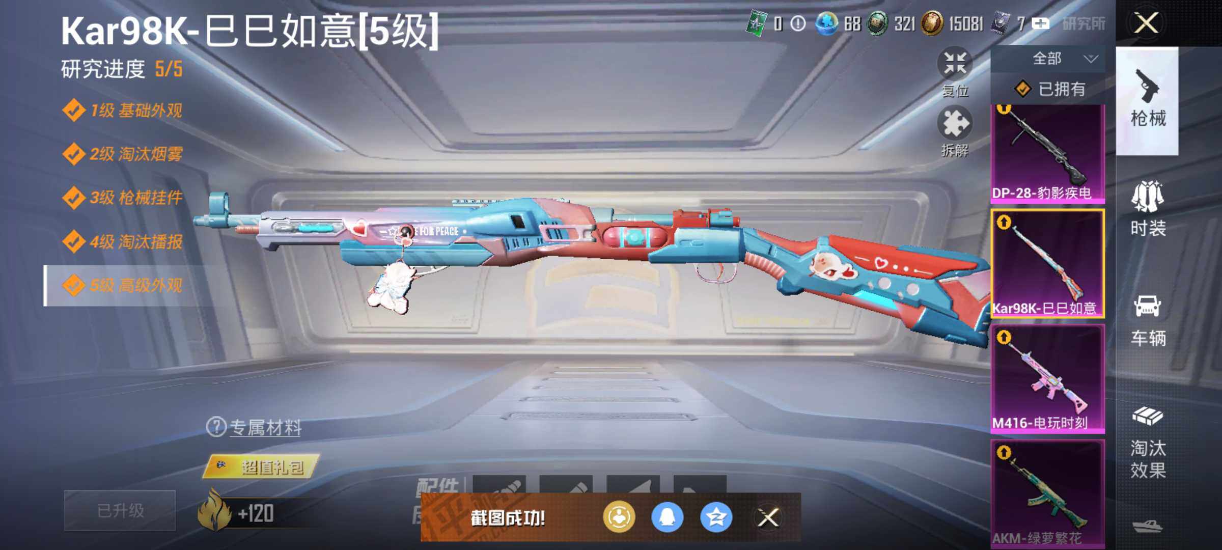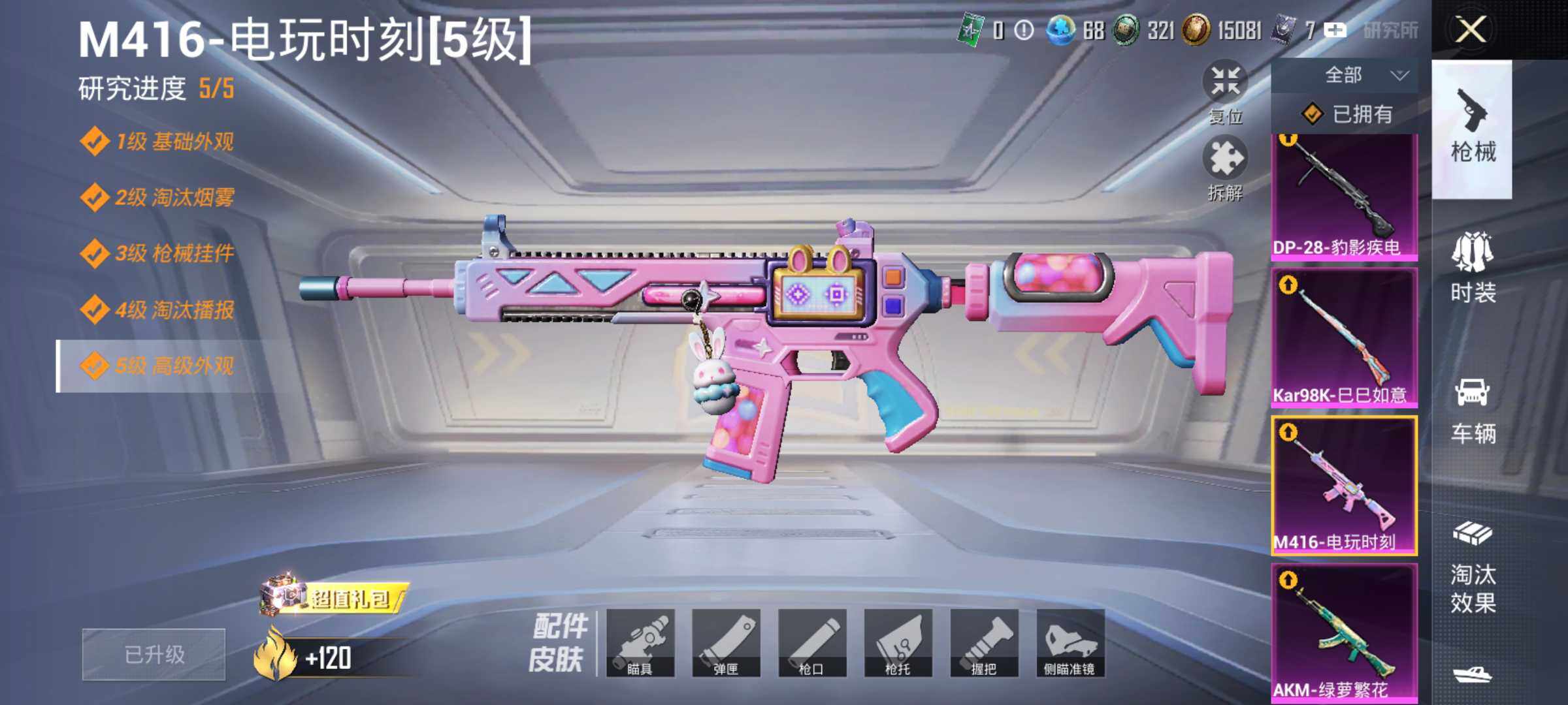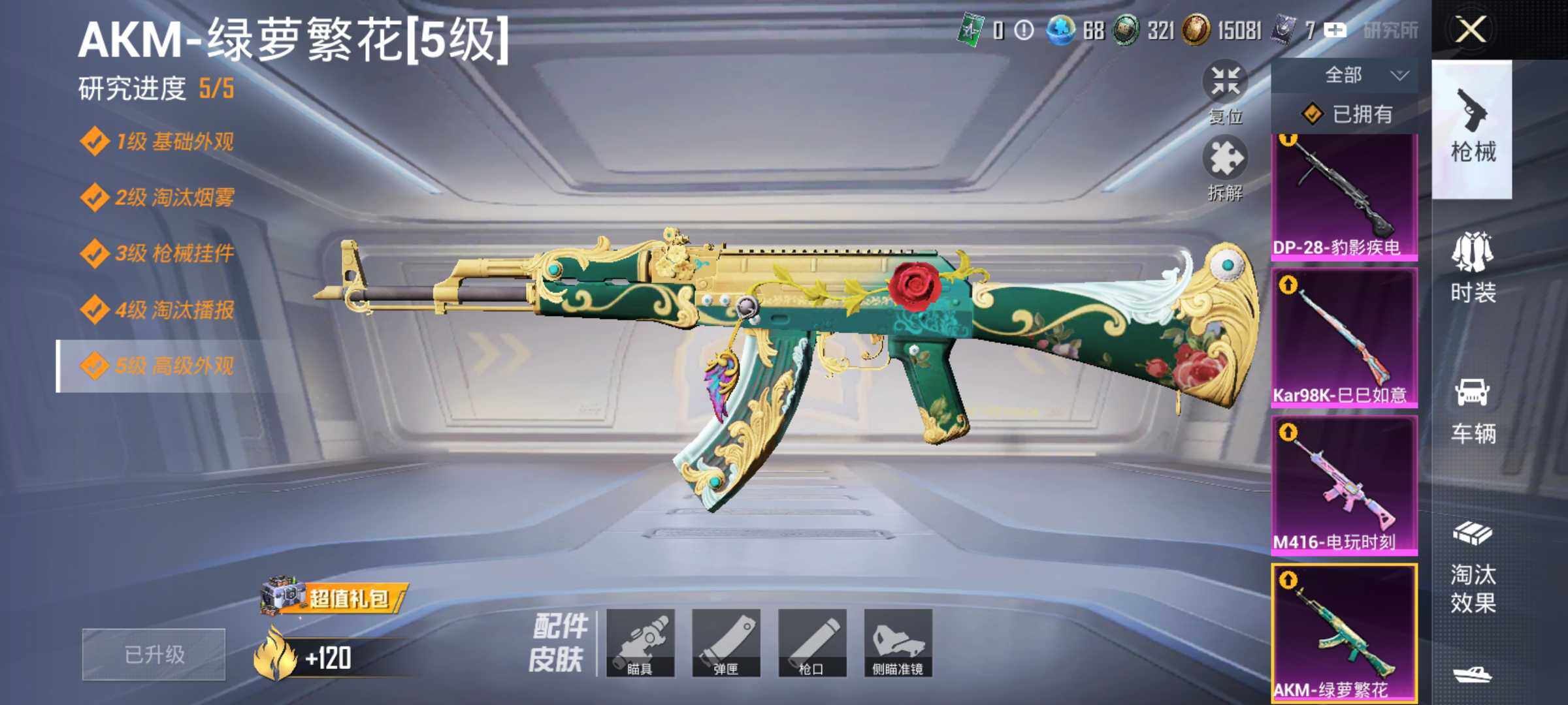 6038-1粉装-4特效呛-0载具-1粉色飞行器-38018热力值-11王牌印记-105套装-135呛皮 【热门品类】:套装-金羽特工,套装-龟仙人 【粉色套装】:角色-圣堂之誓 【粉色呛皮等级】:akm-绿萝繁花五级,m416-电玩时刻五级,kar98k-巳巳如意五级,dp-28-豹影疾电四级 【粉色呛皮】:akm-绿萝繁花,m416-电玩时刻,kar98k-巳巳如意,d