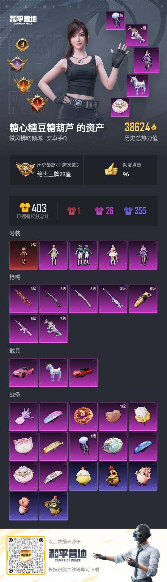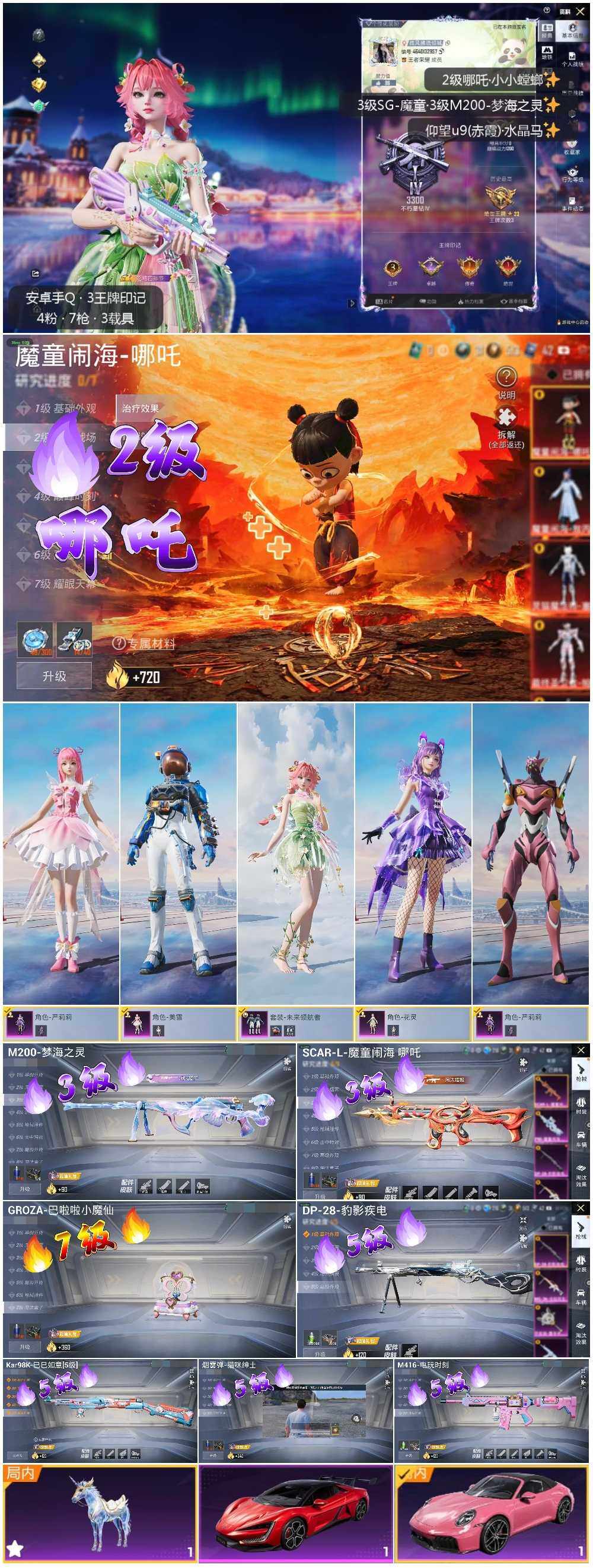 [14284608]可二次【店主推荐捡漏号!可直接换绑】/素材身法号/绝世印记1/扭蛋碎片670 安卓 手q-1神装-4粉装-7特效呛-3载具-3粉色飞行器-3.8w热力值-3王牌印记-62套装-110呛皮【红色神装等级】:魔童闹海-哪吒二级【热门品类】:套装-粉红小猪,角色-8号机【粉色载具】:仰望u9(赤霞丹朱),保时捷911 敞篷版(星珀红),星梦玉骢【粉色套装】:角色-严莉莉,角色-美雪,粉装-未来领航者,角色-花灵【粉色呛皮等级】:scar-l-魔童闹海 哪吒三级,m416-电玩时刻五级,groza-巴啦啦小魔仙七级,kar98k-巳巳如意五级,m200-梦海之灵三级,dp-28-豹影疾电五级【粉色飞行器】:幻海精灵飞行器,飞天猪飞行器