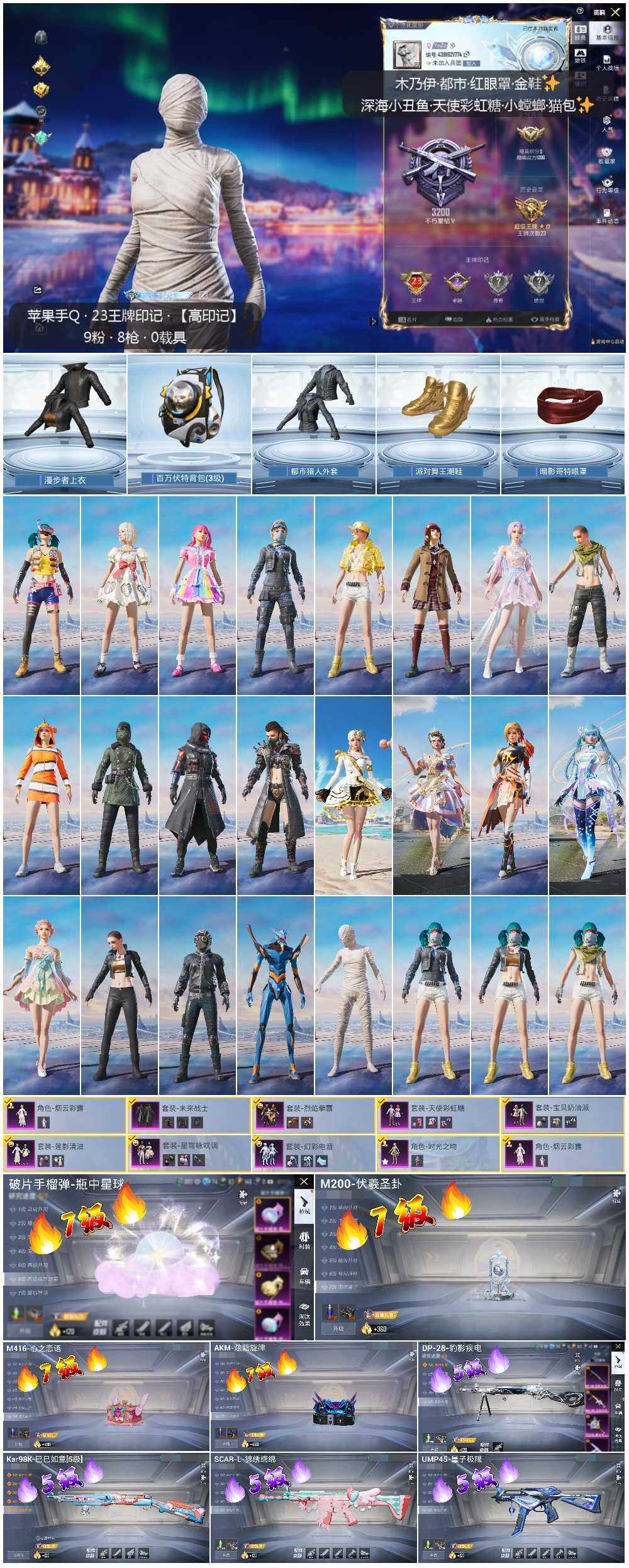 [14284883]【店主推荐捡漏号!可直接换绑】/素材身法号/老木乃伊 苹果 手q-9粉装-8特效呛-3粉色飞行器-9.3w热力值-23王牌印记-204套装-286呛皮【热门品类】:套装-都市猎人,套装-冥河战士,套装-派对舞王,套装-深海小丑鱼,套装-小丑鱼,套装-奇异狩猎者,套装-龟仙人,套装-暗影哥特,角色-mark.06【粉色套装】:粉装-未来战士,粉装-宝贝奶油派,粉装-天使彩虹糖,粉装-烈焰拳霸,粉装-莲影清波,角色-烟云彩露,粉装-星穹咏叹调,粉装-幻彩电音,角色-时光之吻【粉色呛皮等级】:akm-炫紫旋律七级,scar-l-锦绣绵绵五级,m416-心之恋语七级,ump45-量子极限五级,kar98k-巳巳如意五级,m200-伏羲圣卦七级,dp-28-豹影疾电五级,破片手留单-瓶中星球七级【粉色呛皮】:akm-炫紫旋律,scar-l-锦绣绵绵,m416-心之恋语,ump45-量子极限,kar98k-巳巳如意,m200-伏羲圣卦,dp-28-豹影疾电,破片手留单-瓶中星球【粉色飞行器】:暗翼战神飞行器,祥瑞锦鲤飞行器,雀灵庇佑飞行器